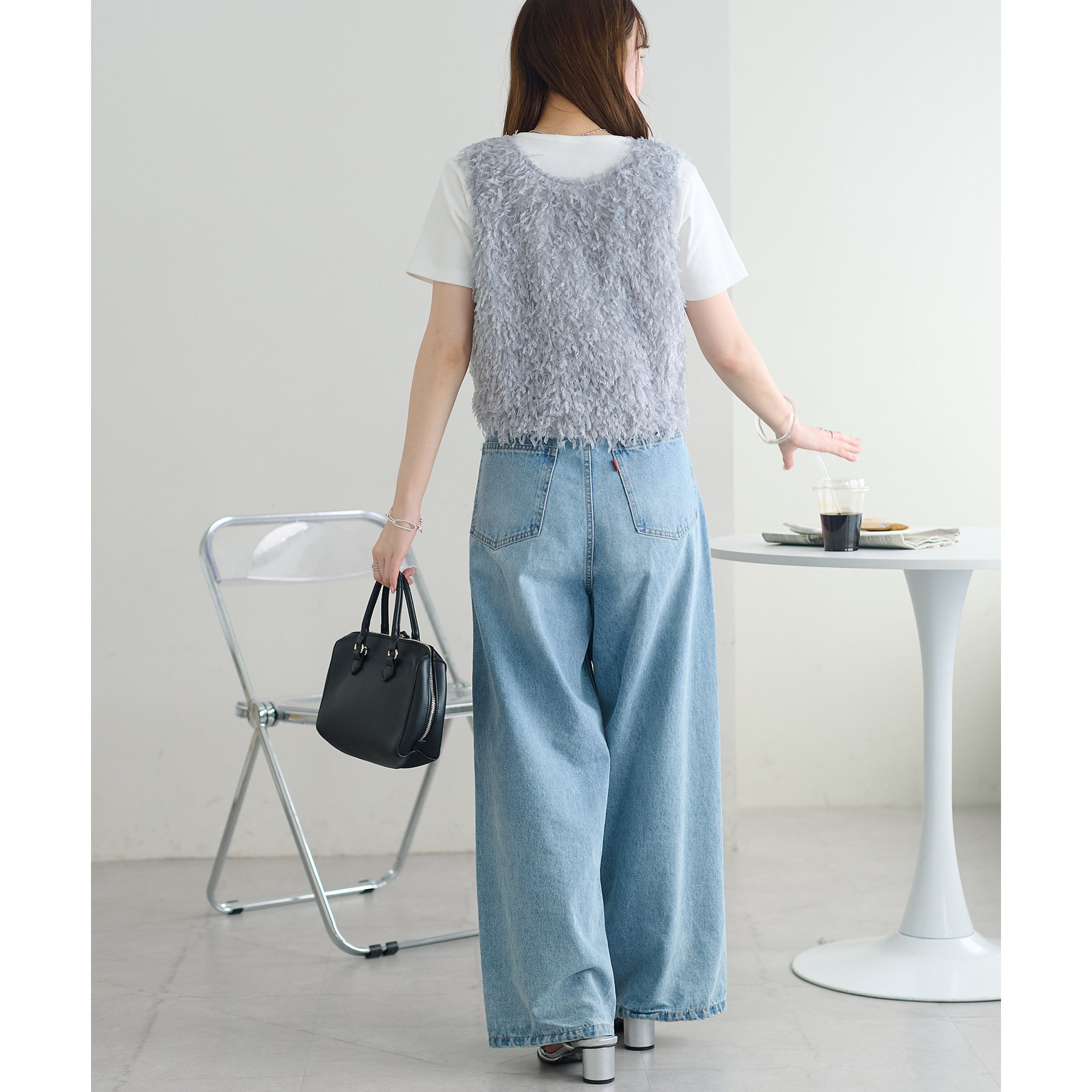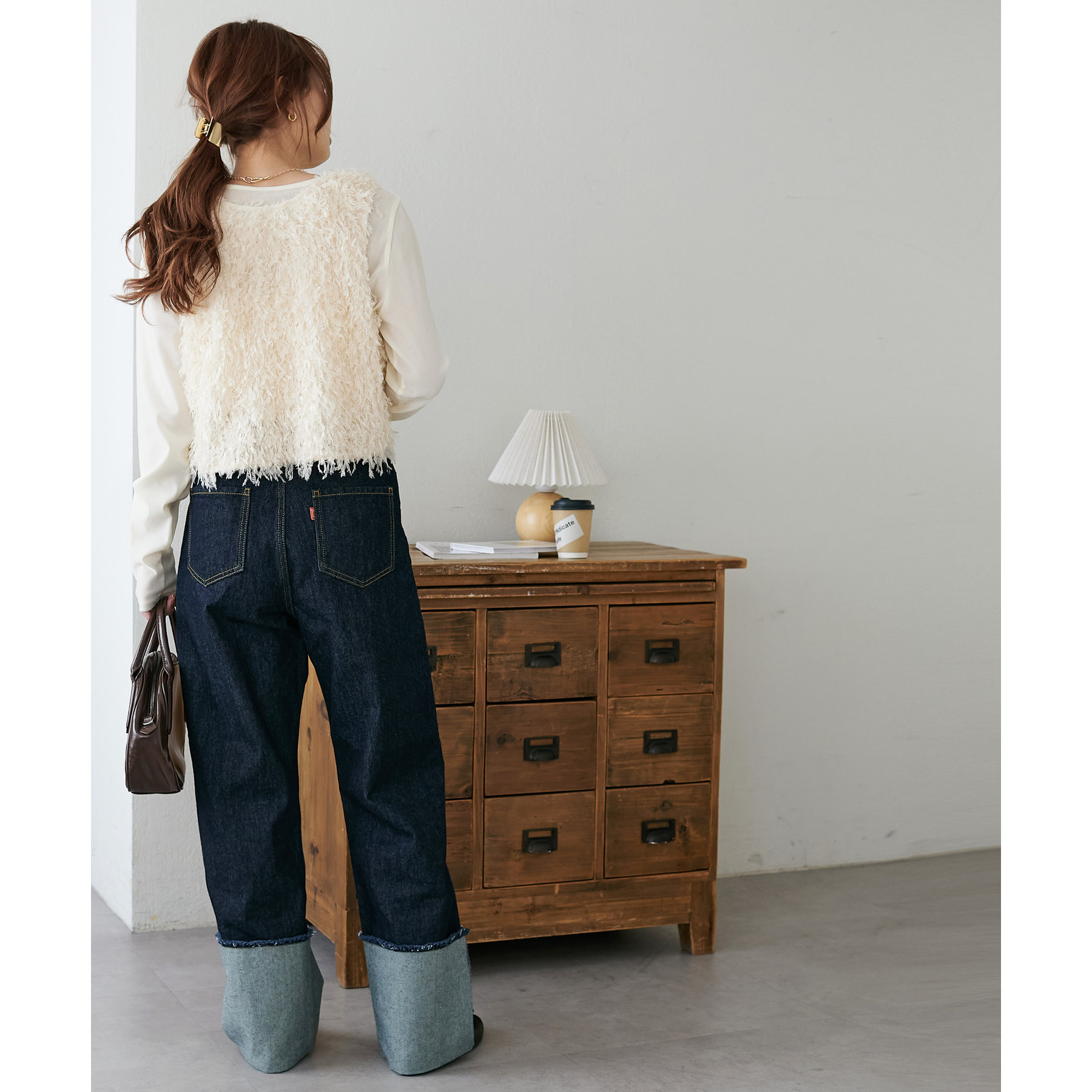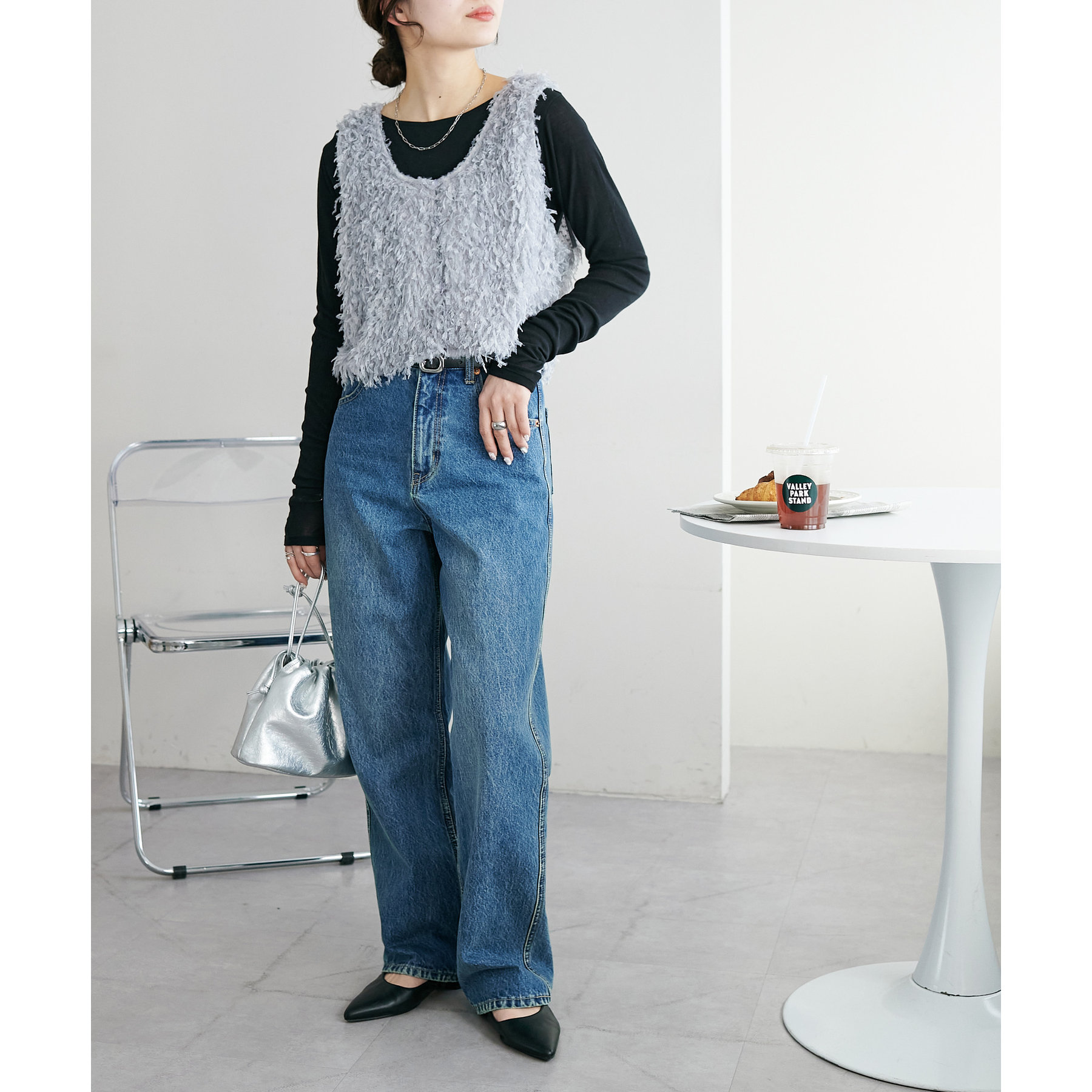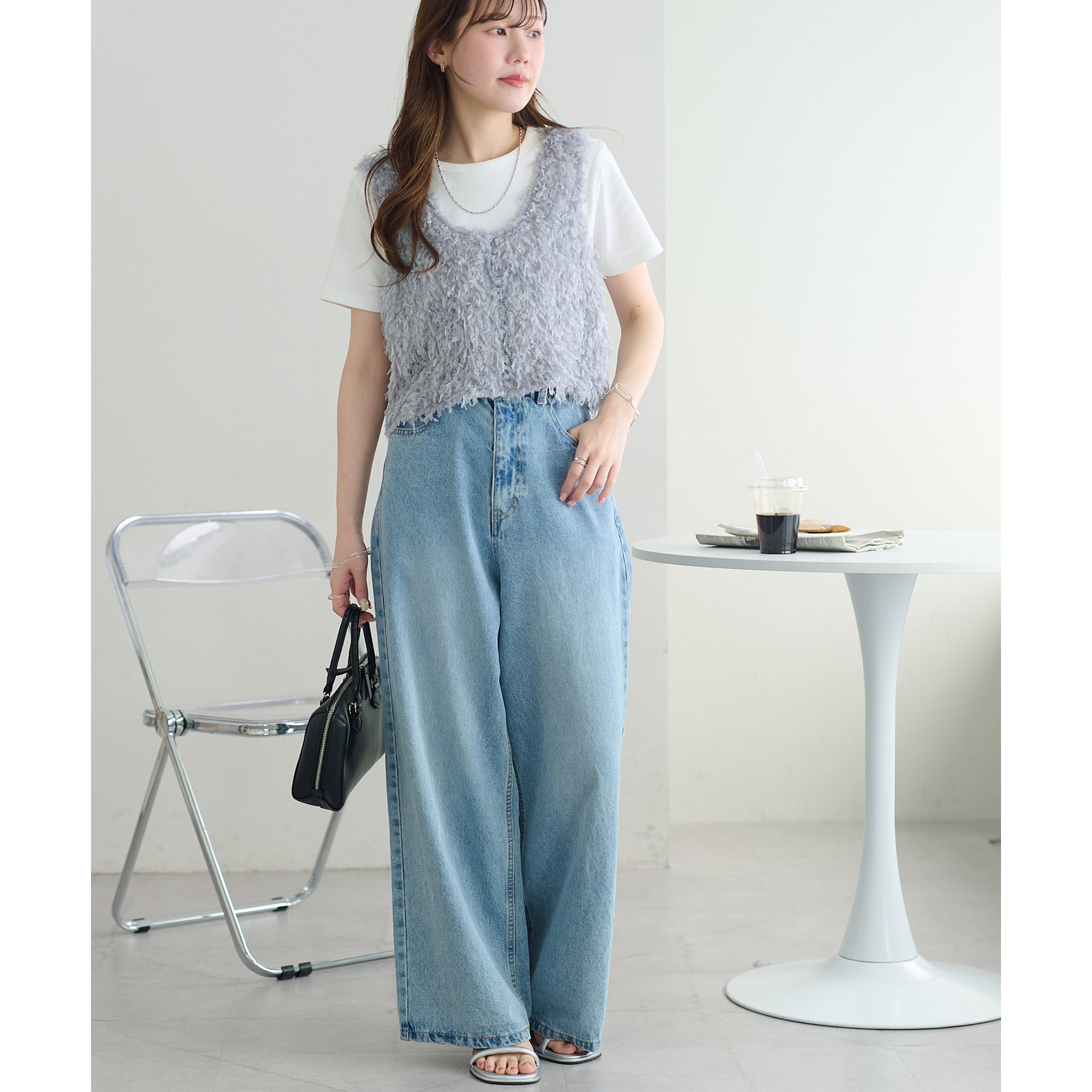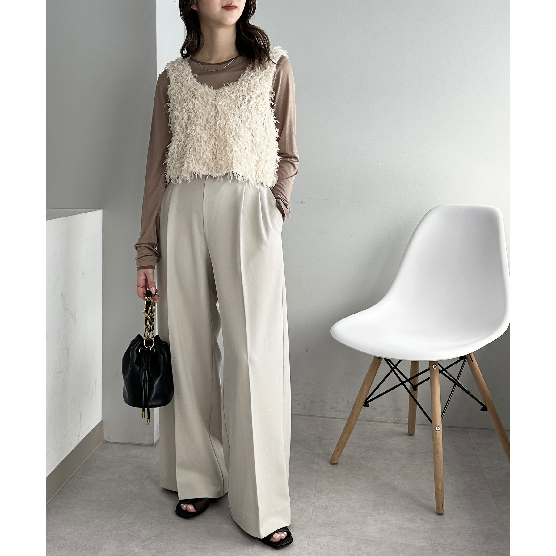 華やかで表面感のあるトレンド感の高いフリンジ素材のベストは、1枚は持っていたいアイテム。