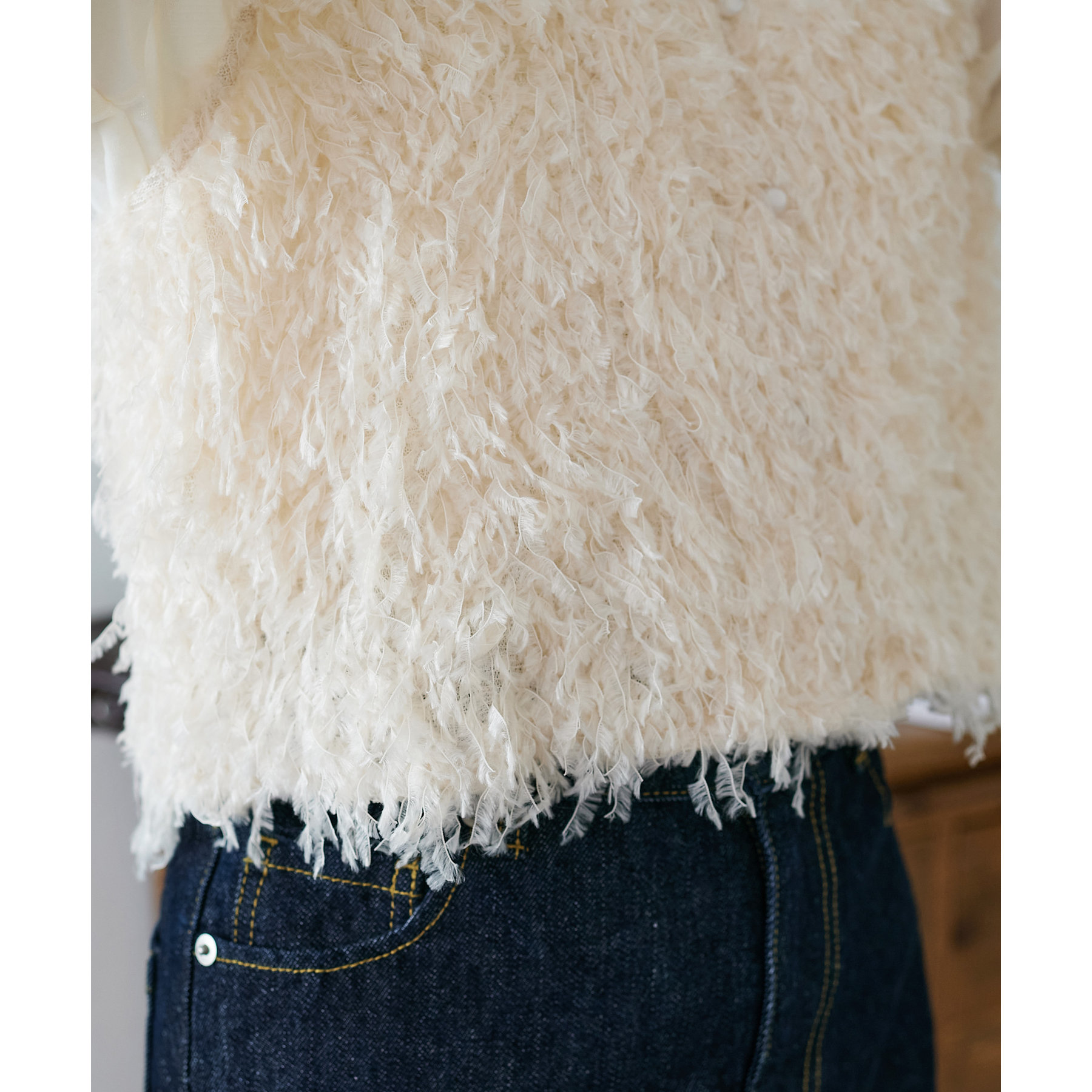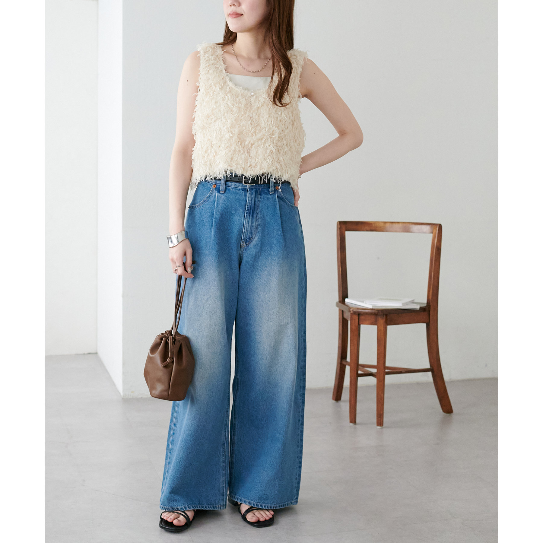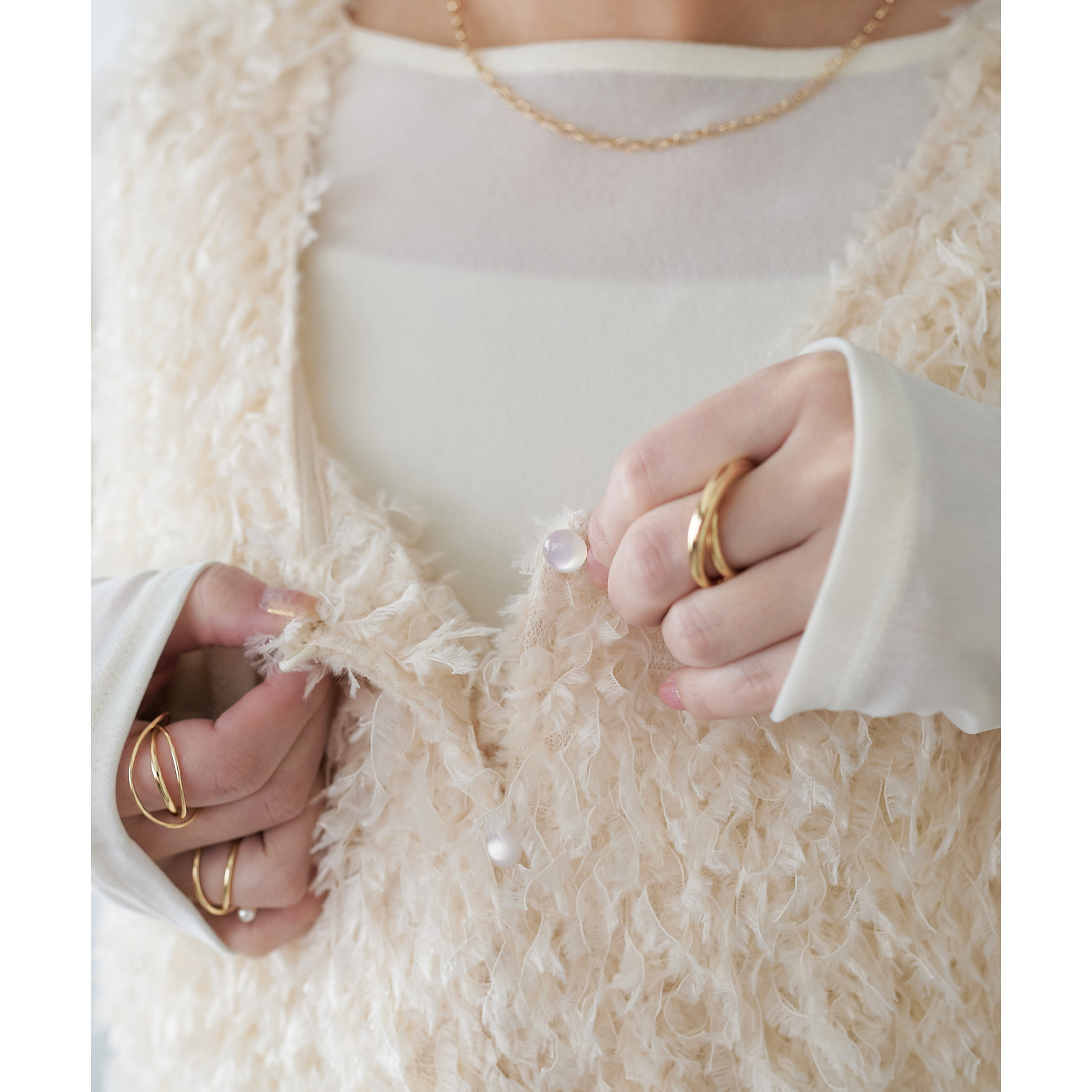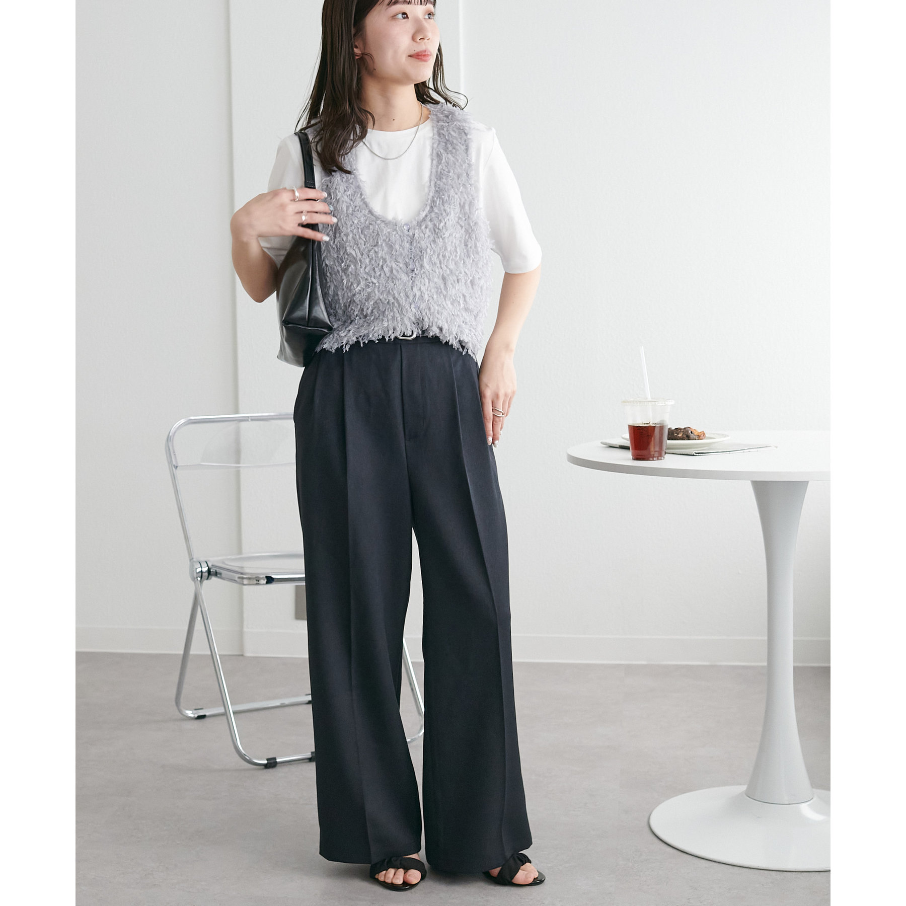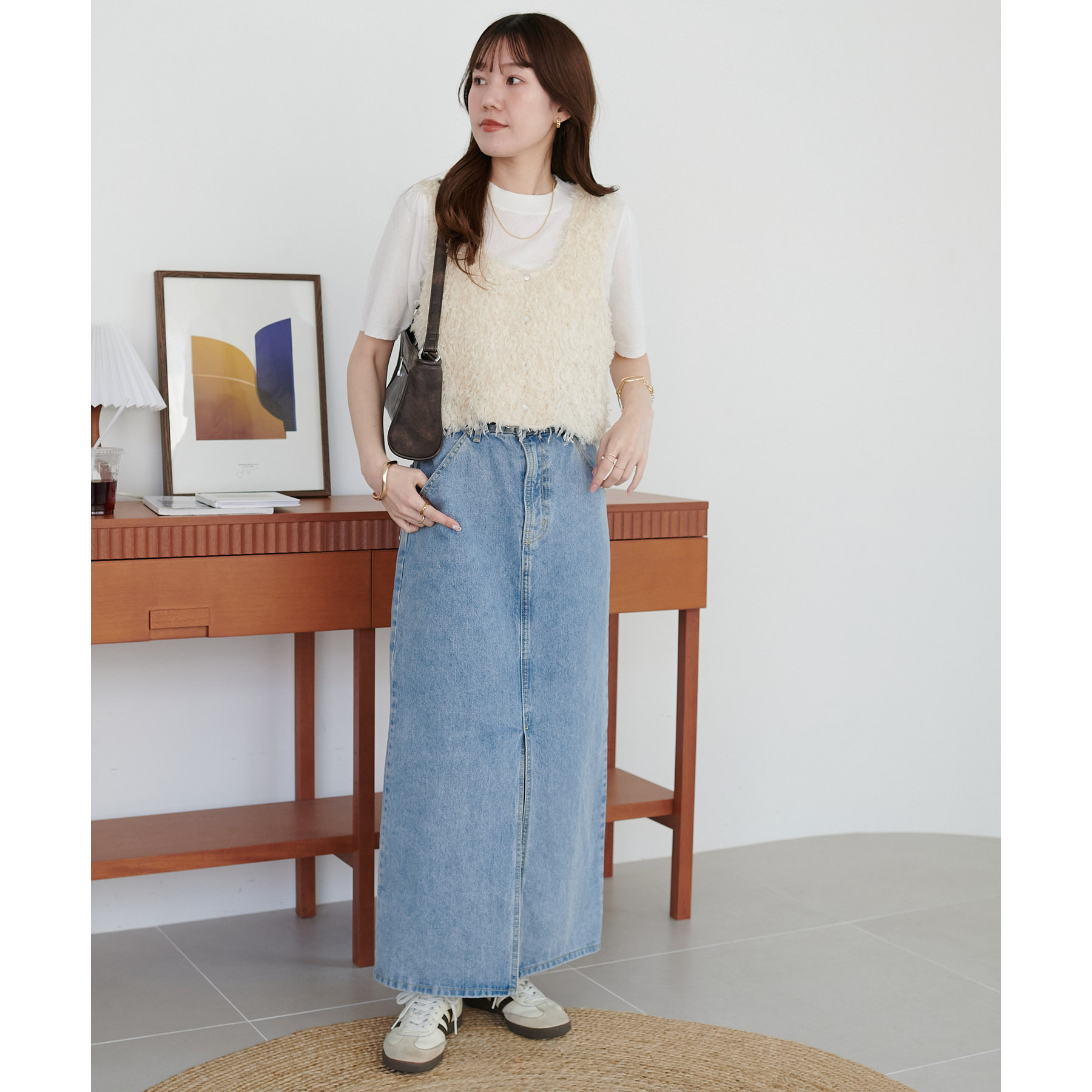 華やかで表面感のあるトレンド感の高いフリンジ素材のベストは、1枚は持っていたいアイテム。