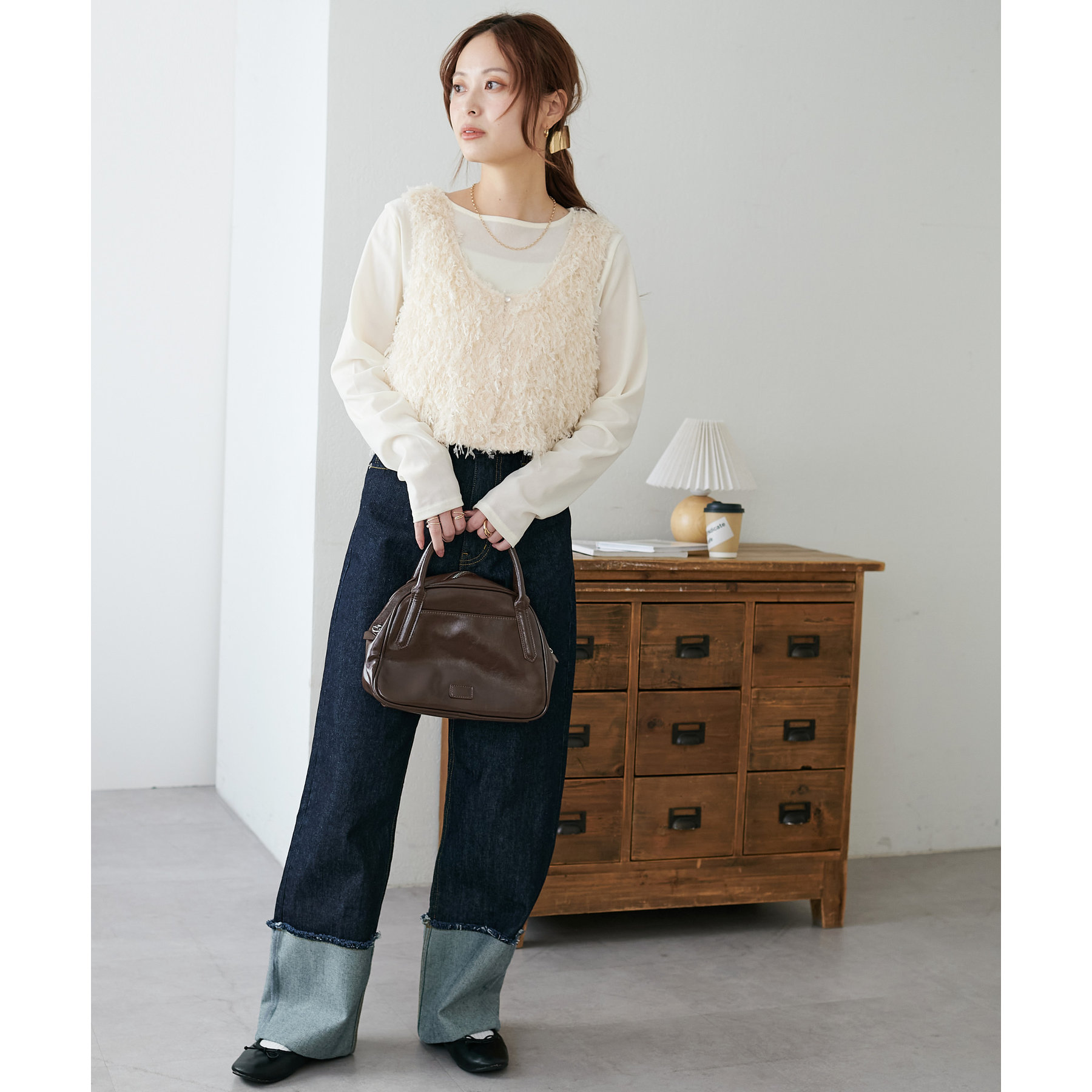 155cmスタッフ:コンパクトな着丈なので、身長問わず合わせやすいです◎
