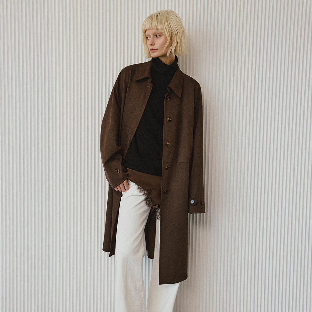 Synthetic Suede Single Mac Coat [Dark Brown]