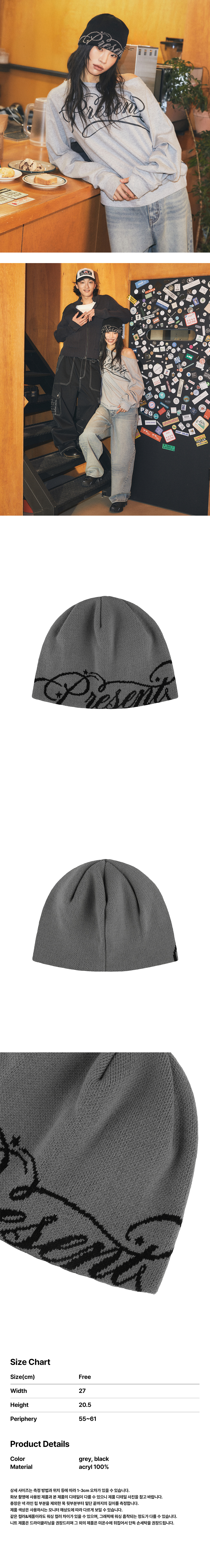 PRESENT LETTERING KNIT BEANIE[GREY]