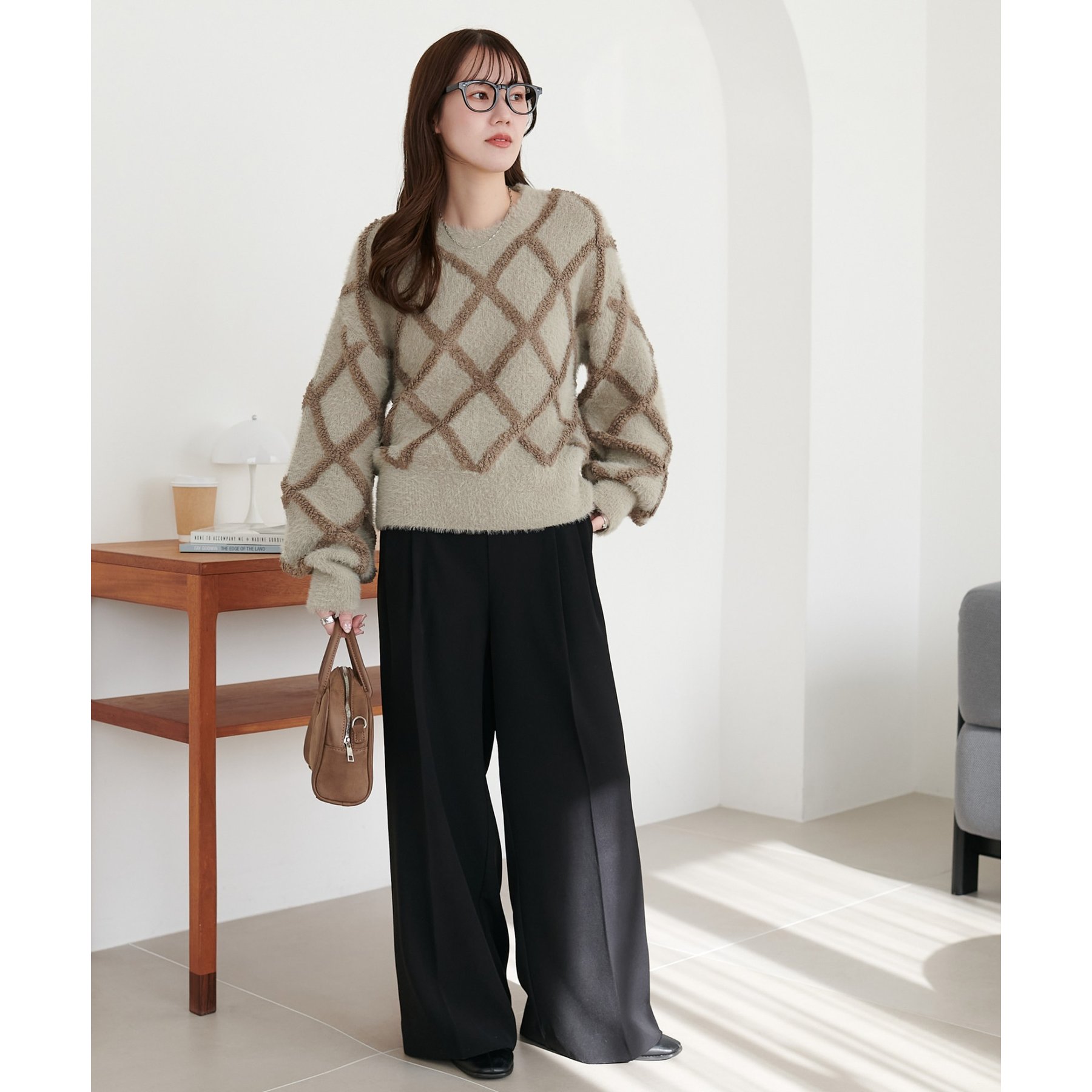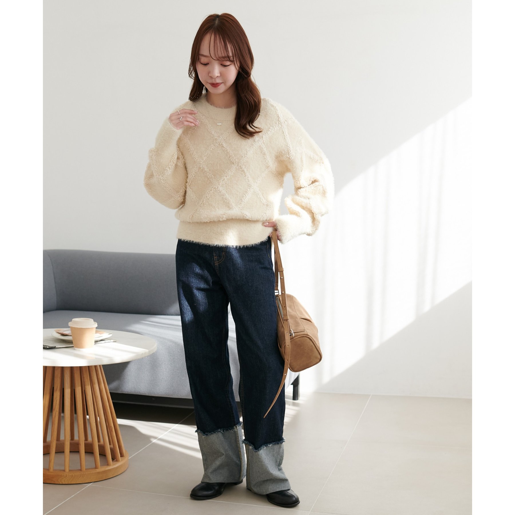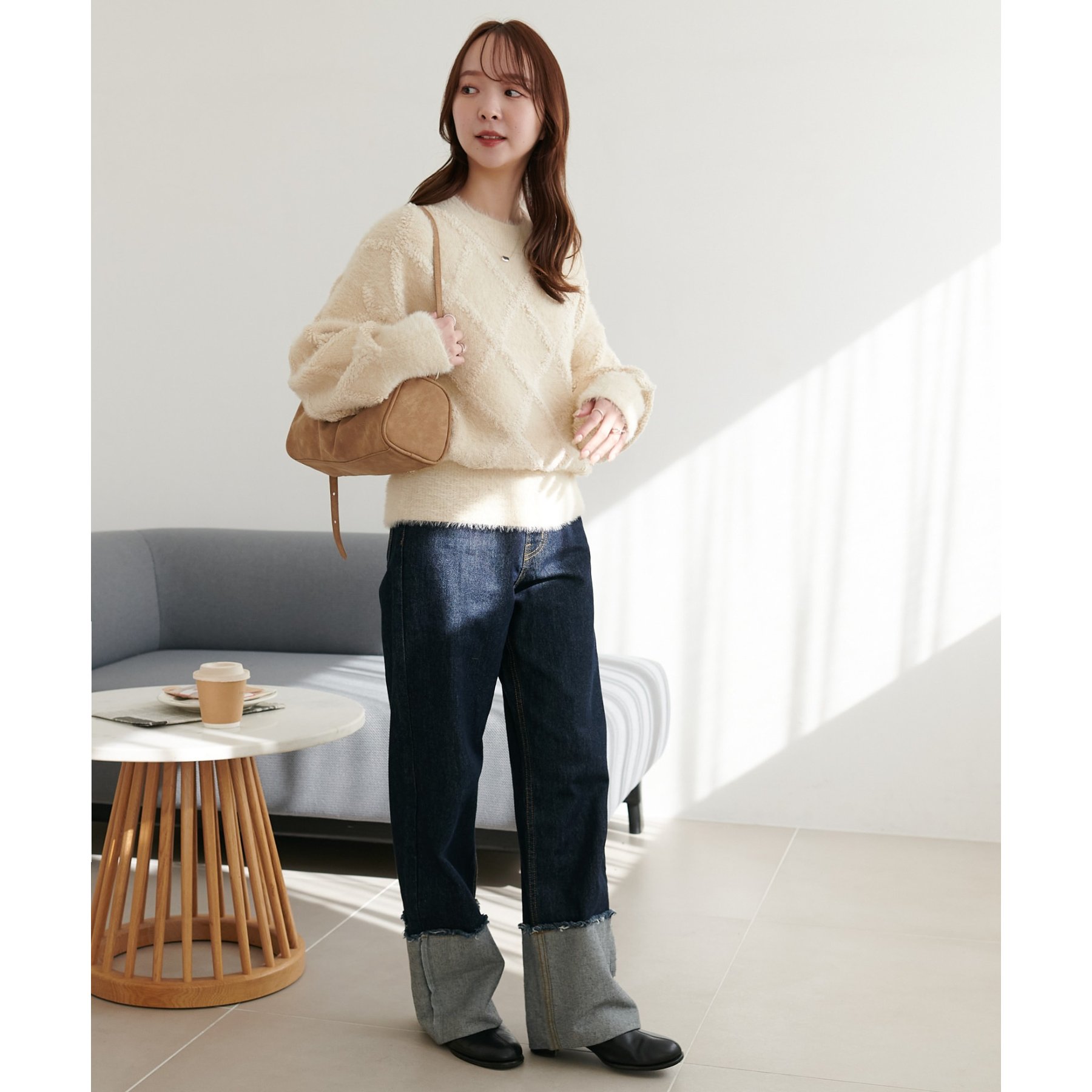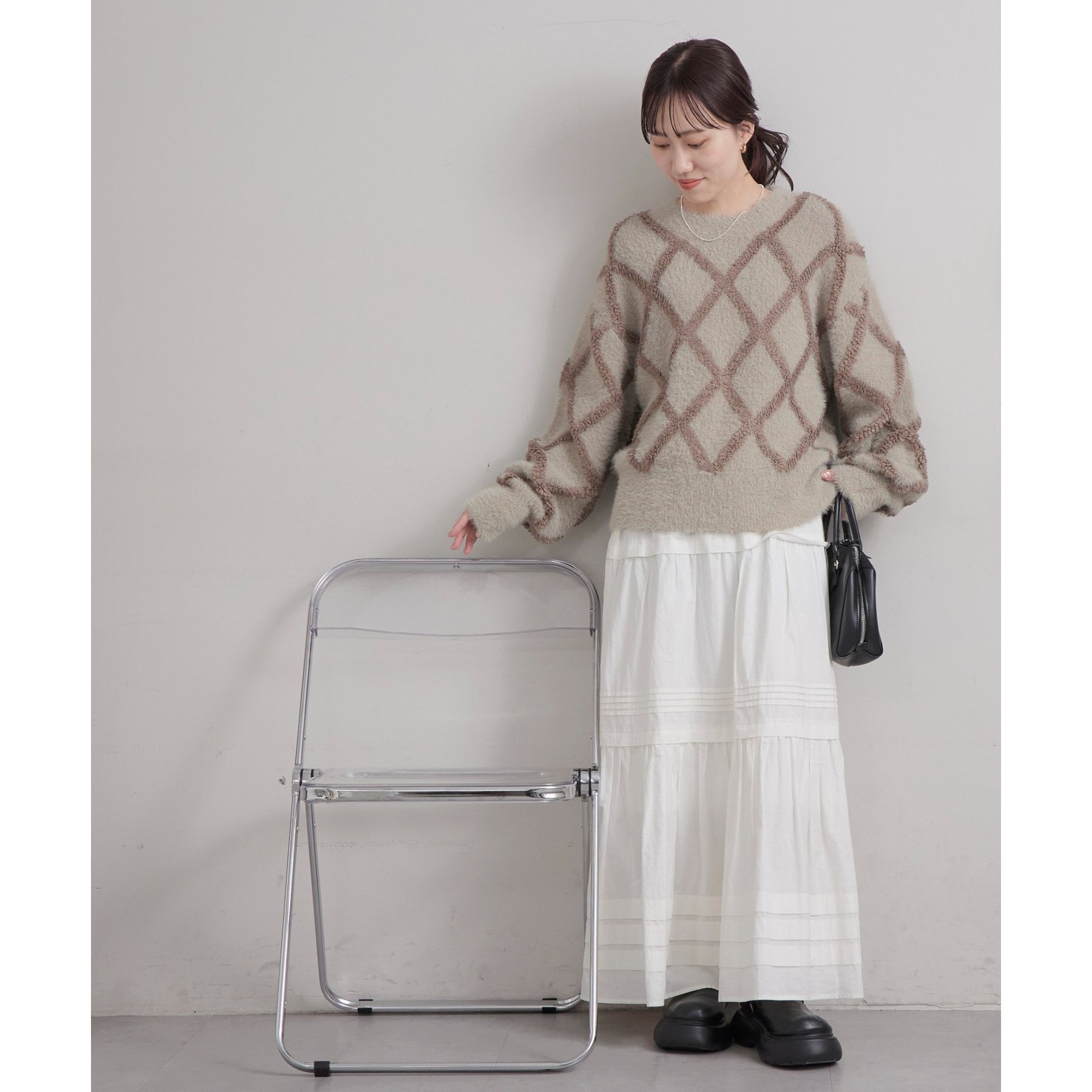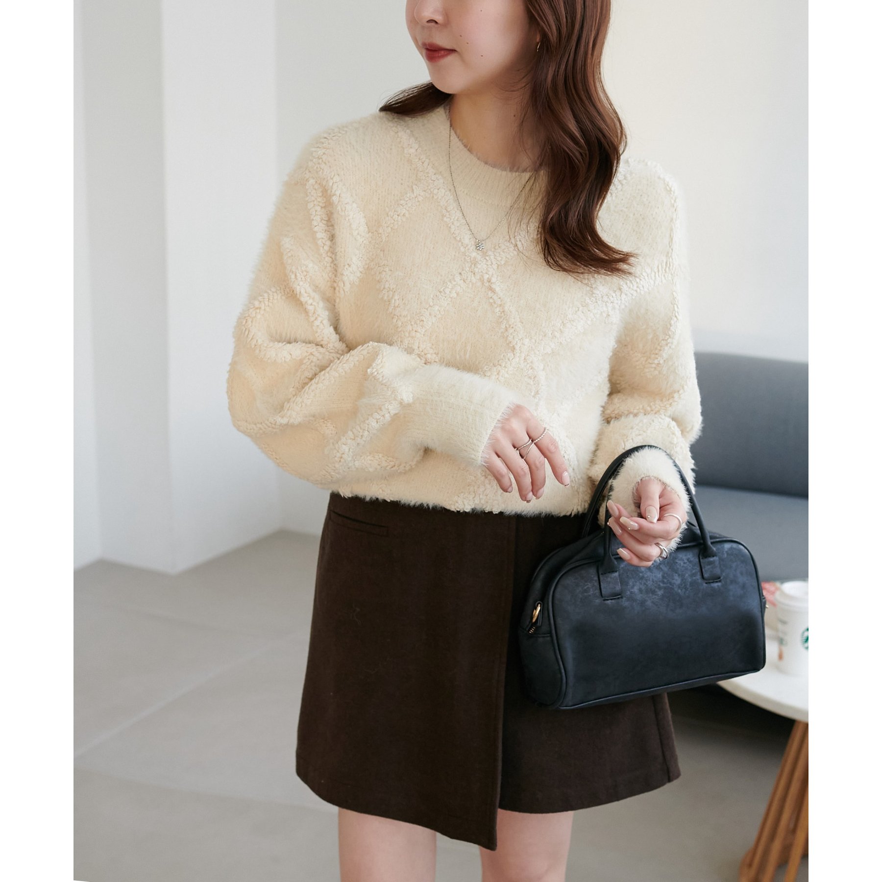 表面に立体感のあるダイヤ柄がコーデの主役に!