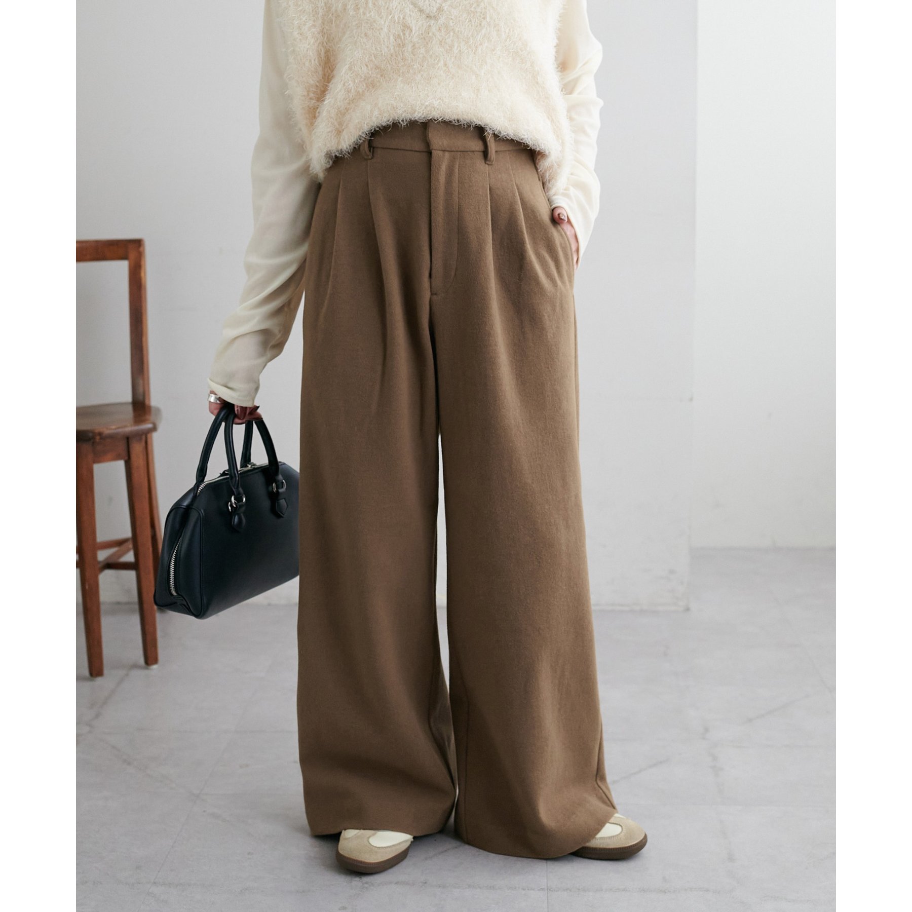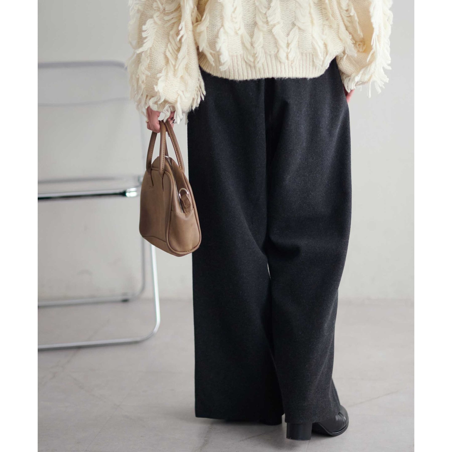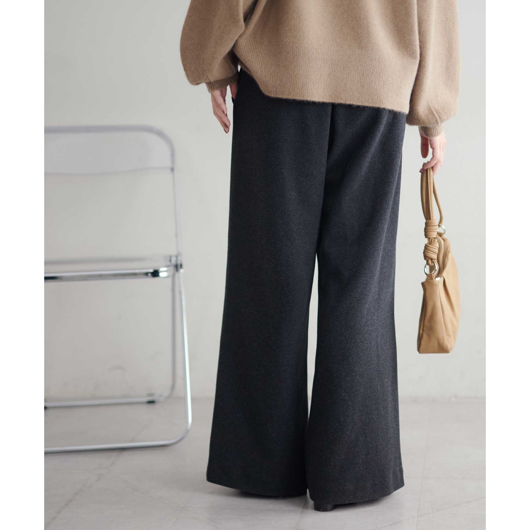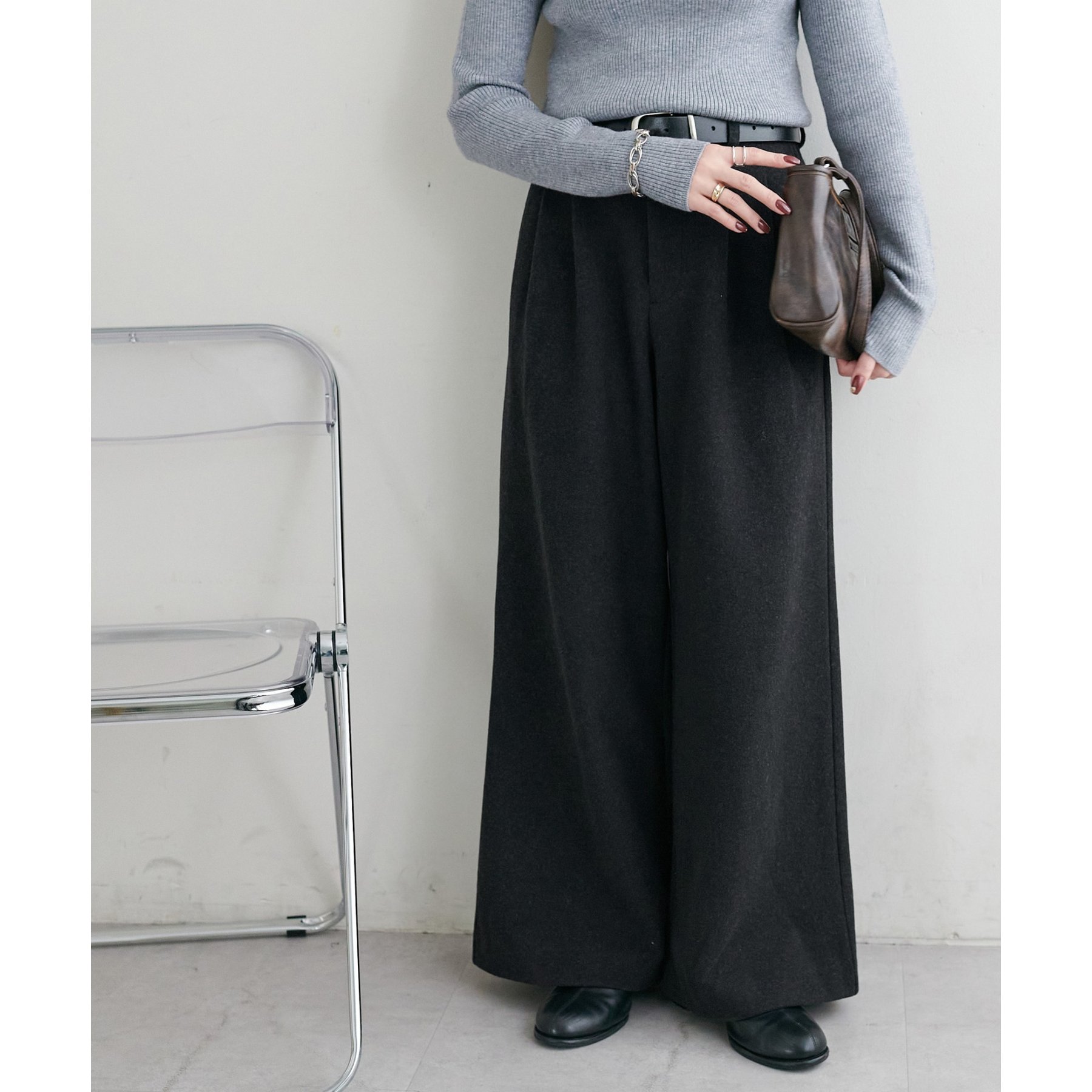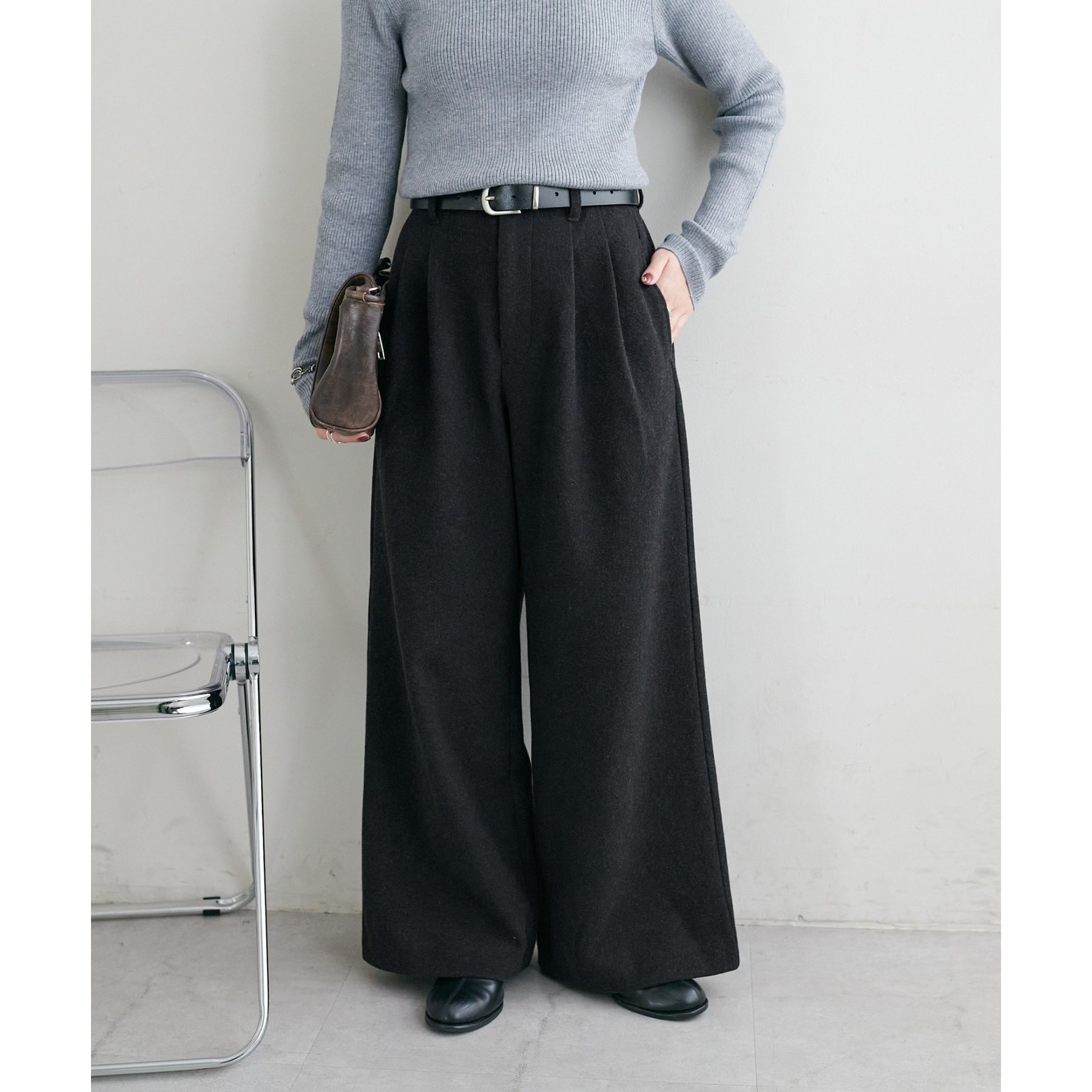 暖かみのあるウールライク素材を使用した秋冬向けのワイドパンツ。