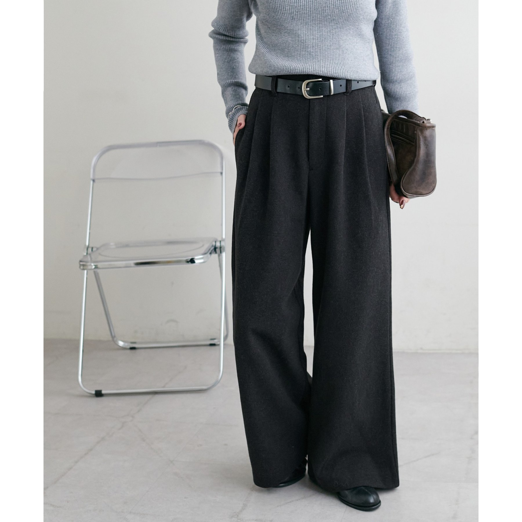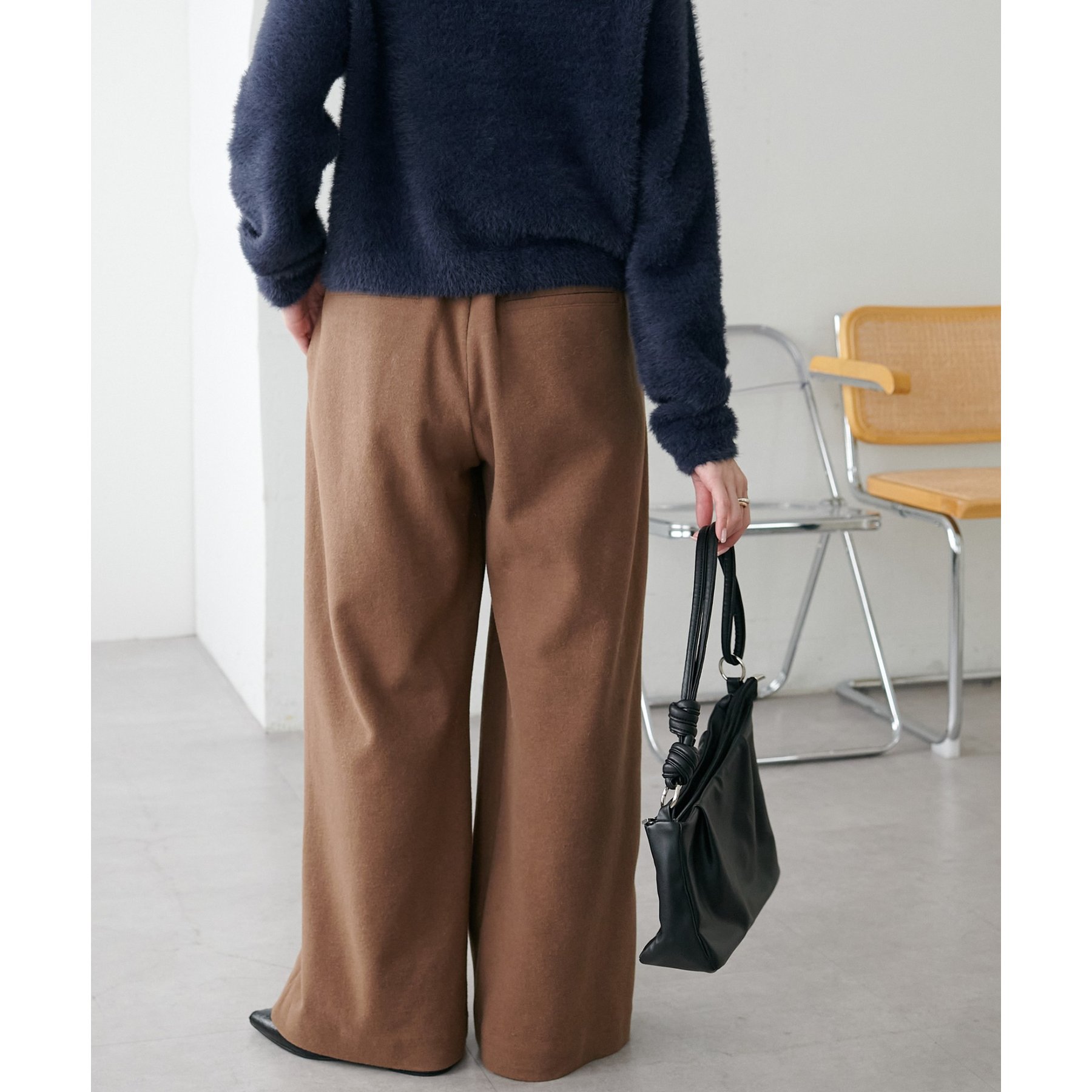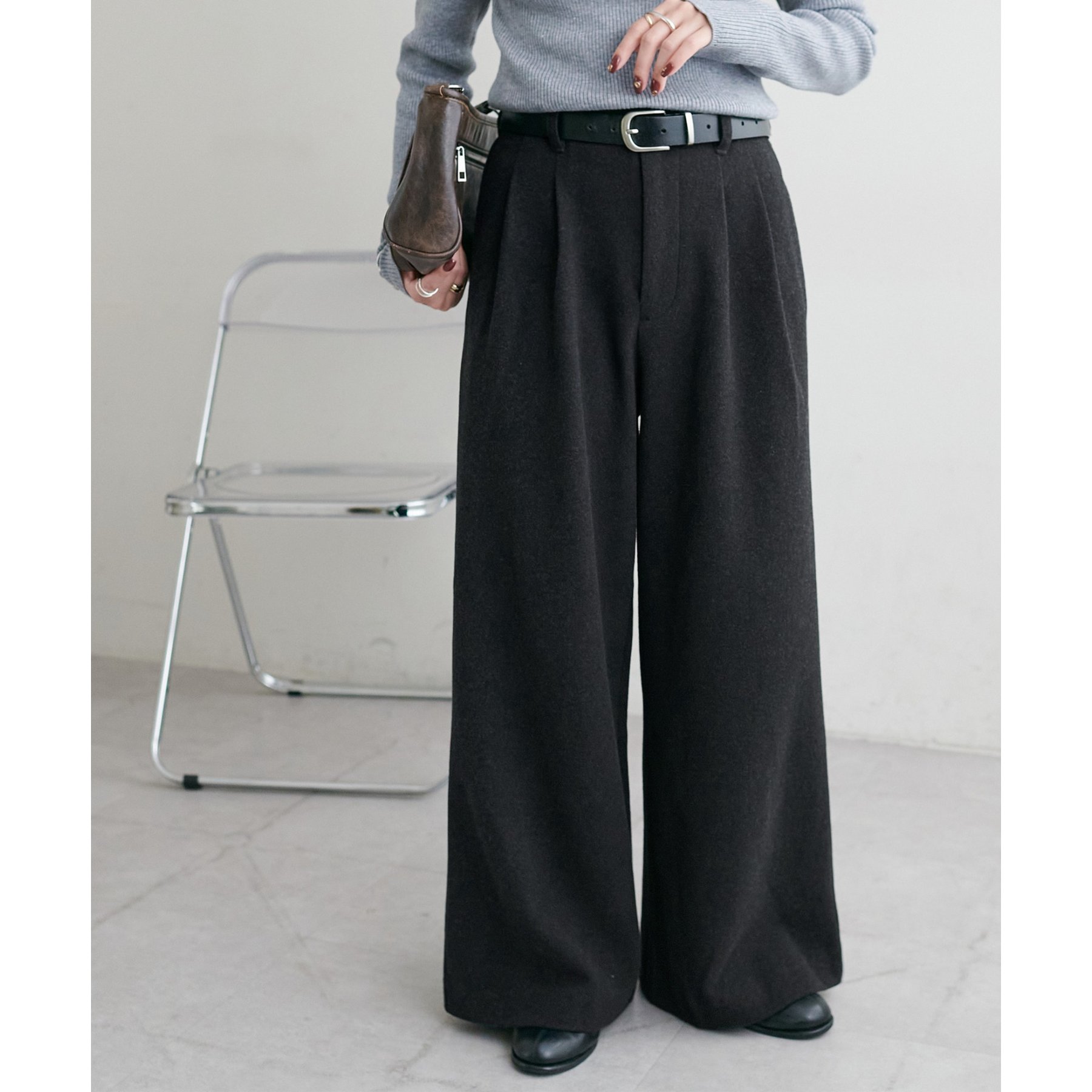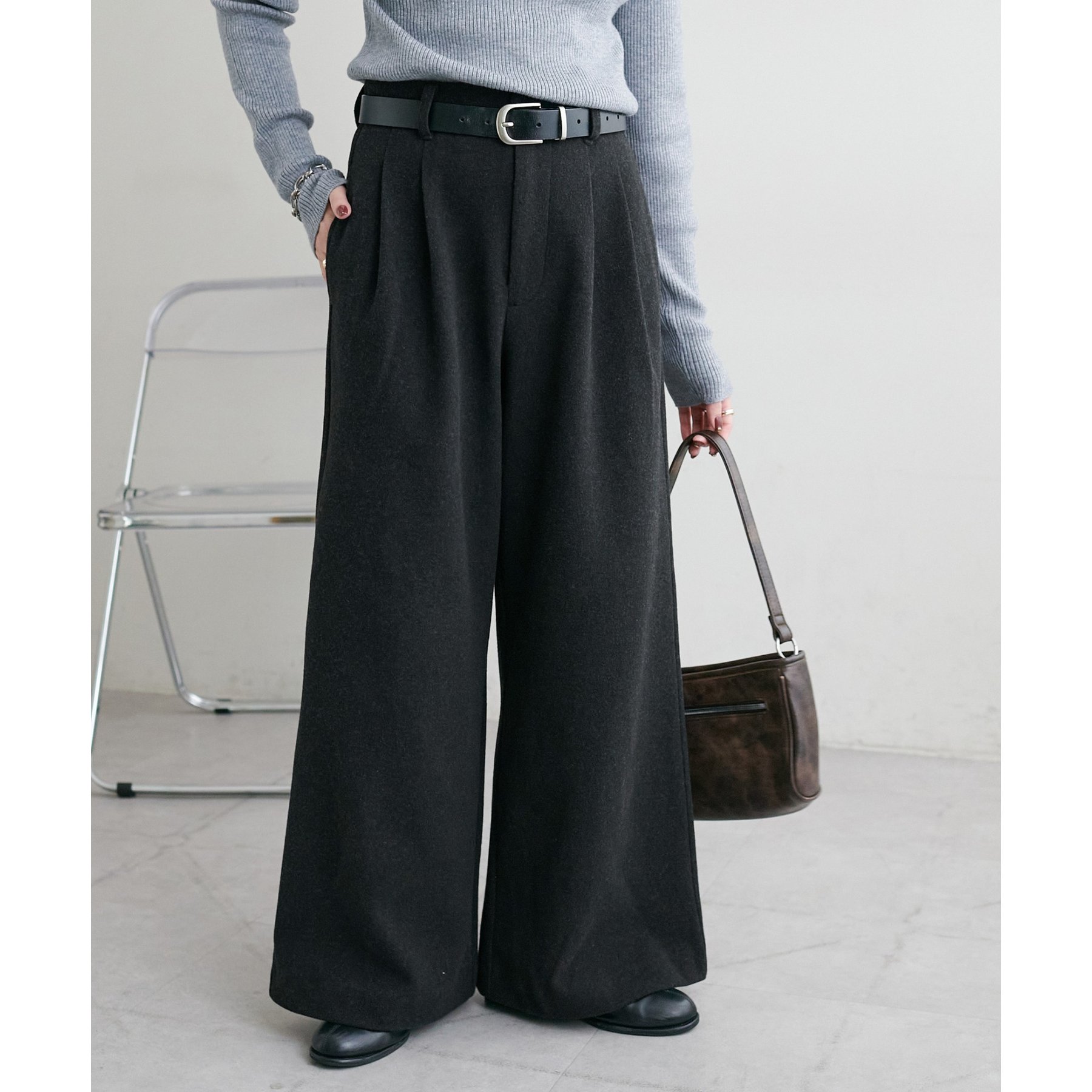 暖かみのあるウールライク素材を使用した秋冬向けのワイドパンツ。