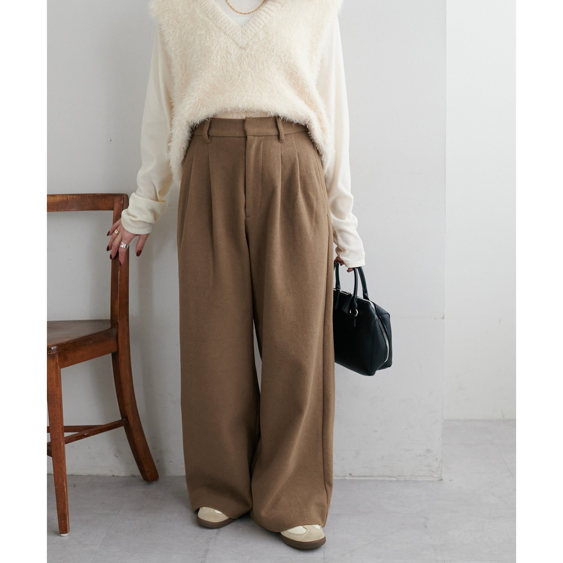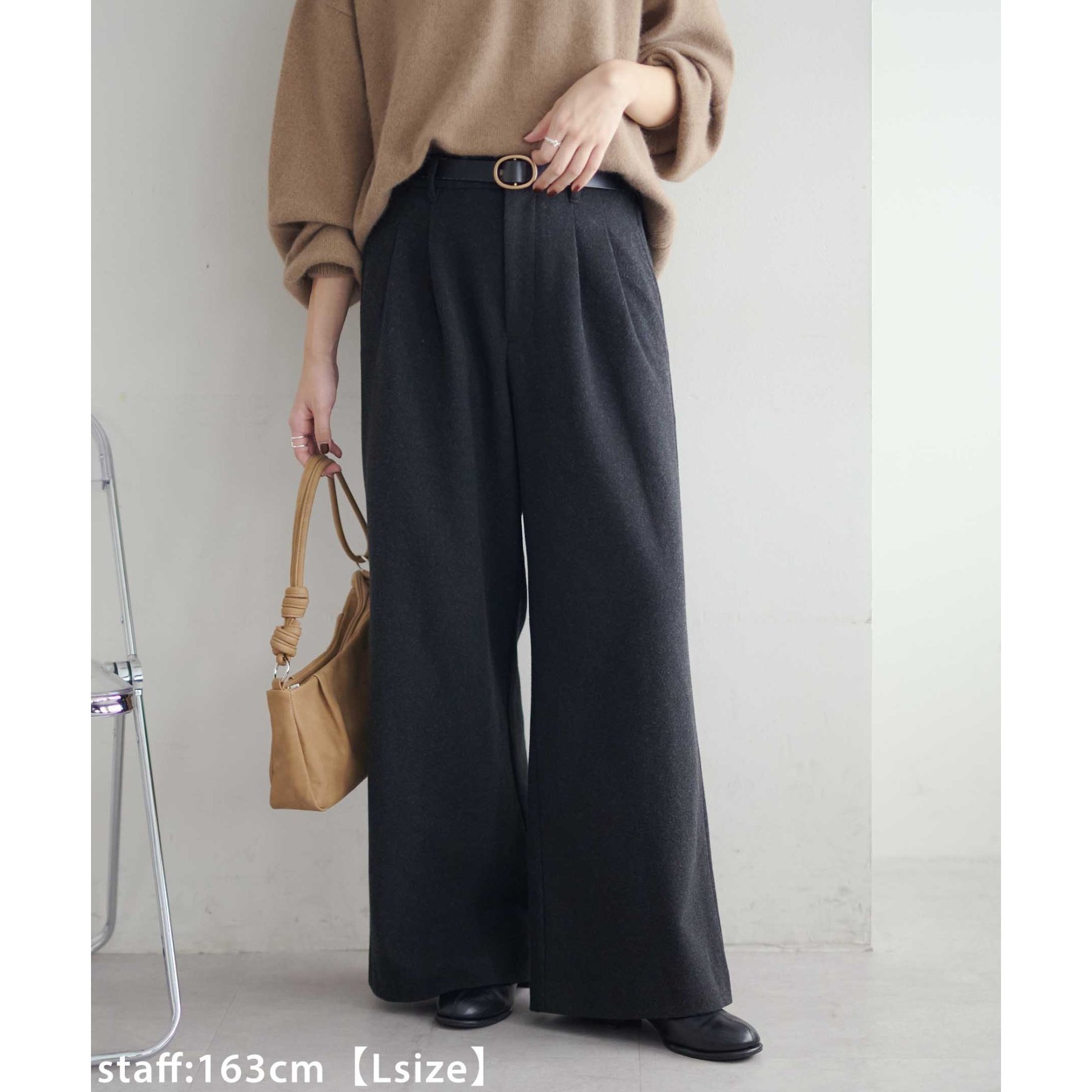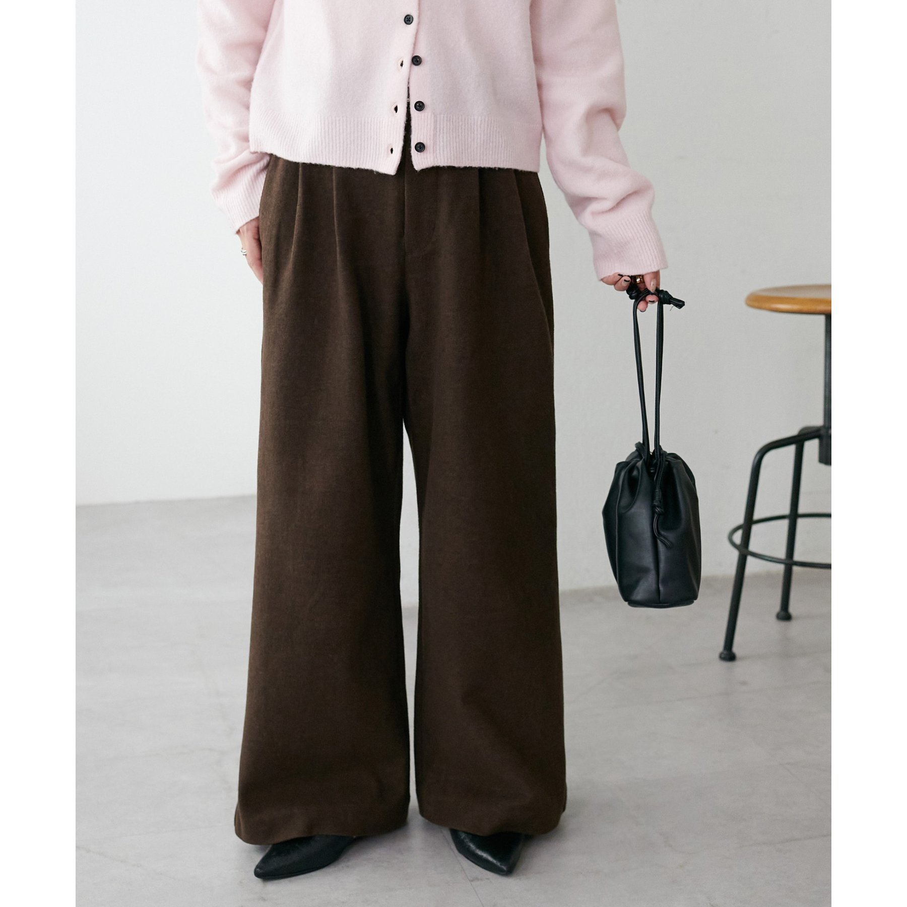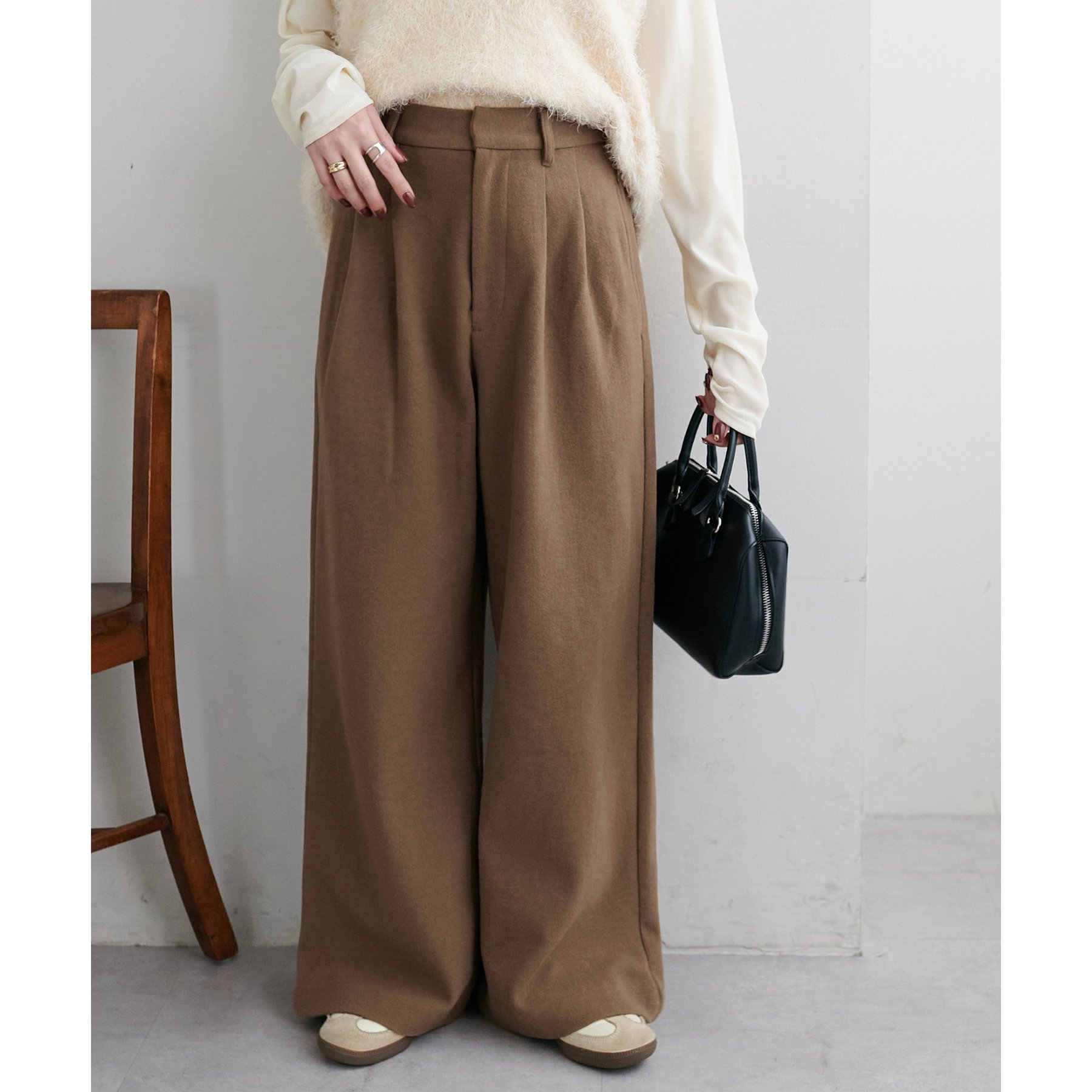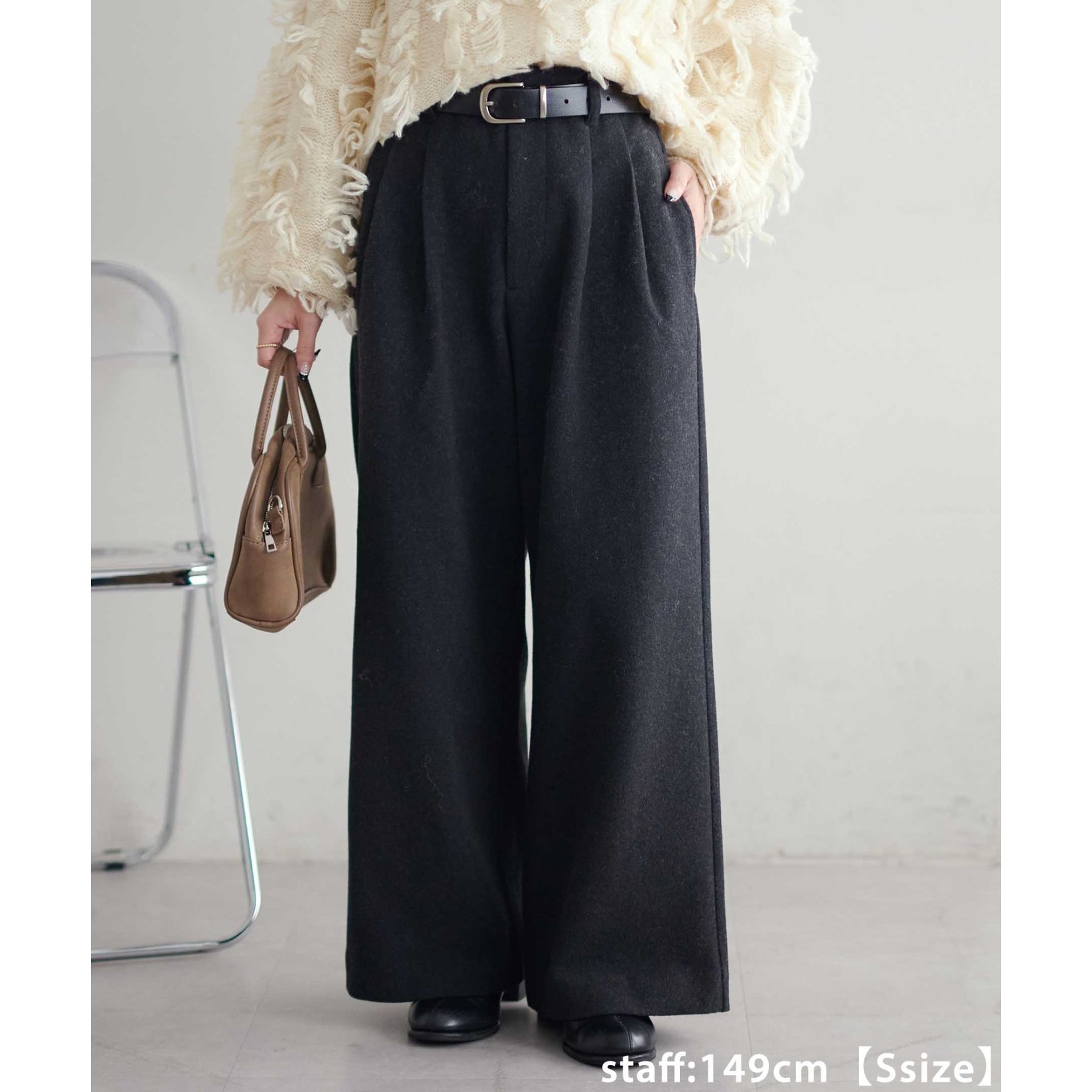 暖かみのあるウールライク素材を使用した秋冬向けのワイドパンツ。