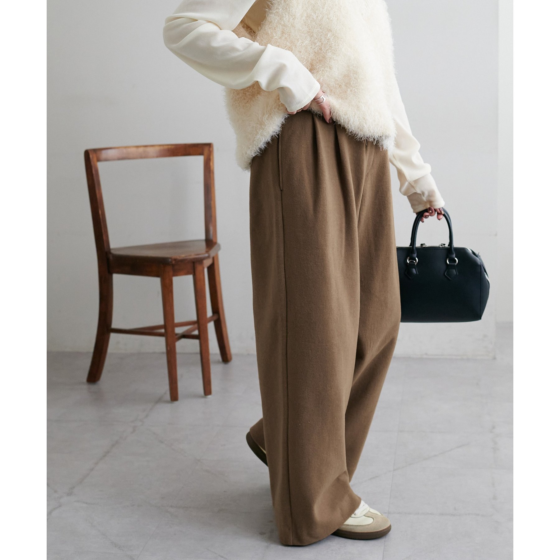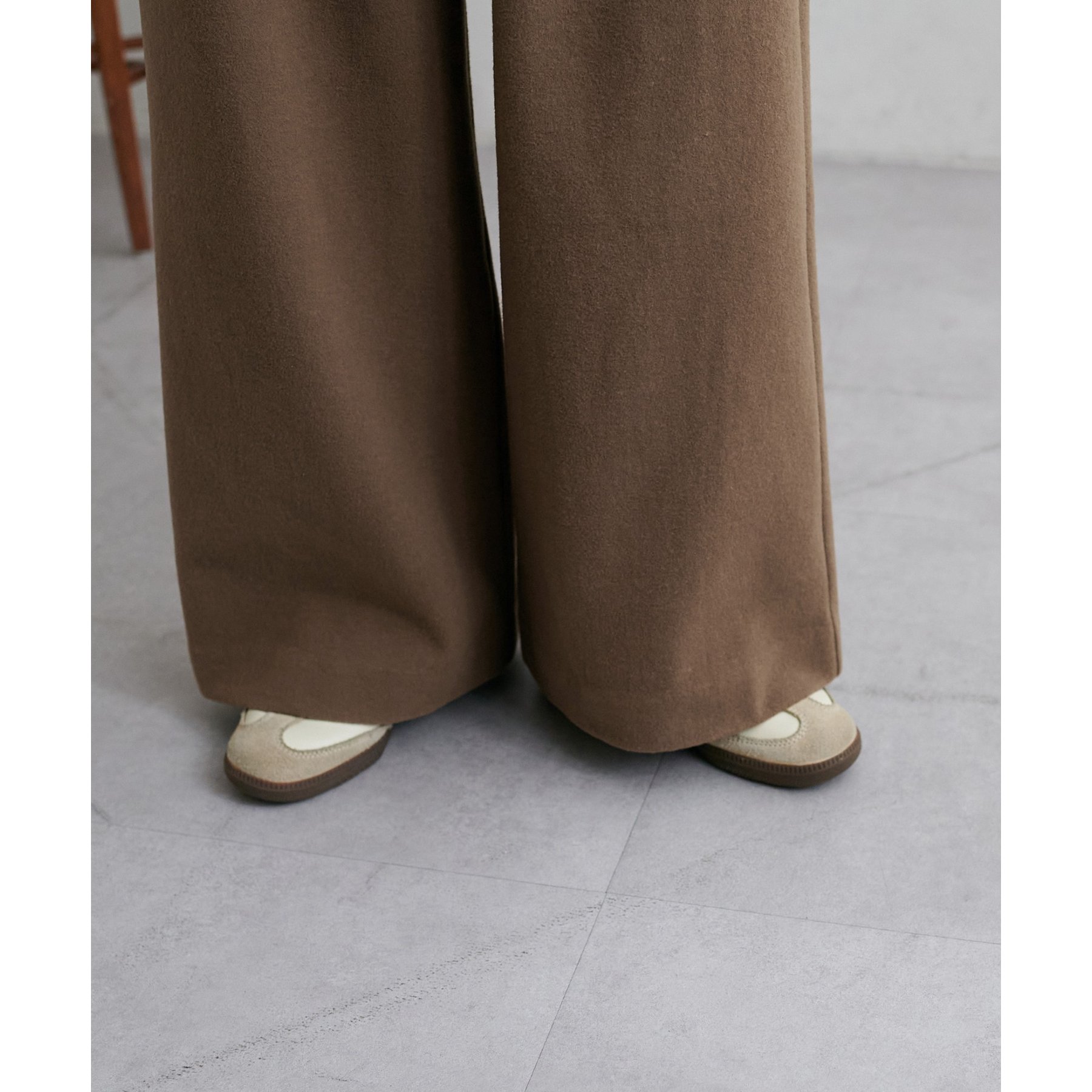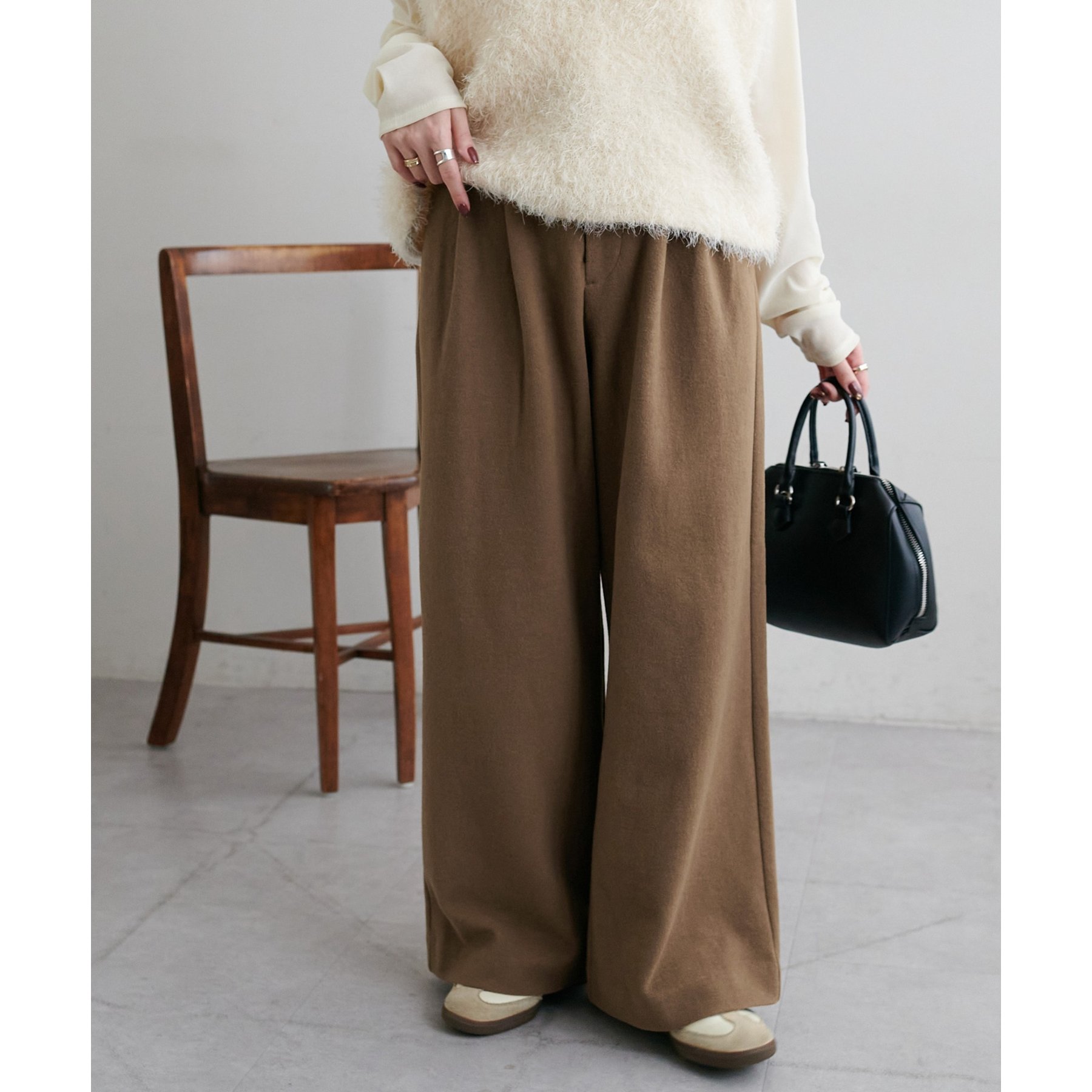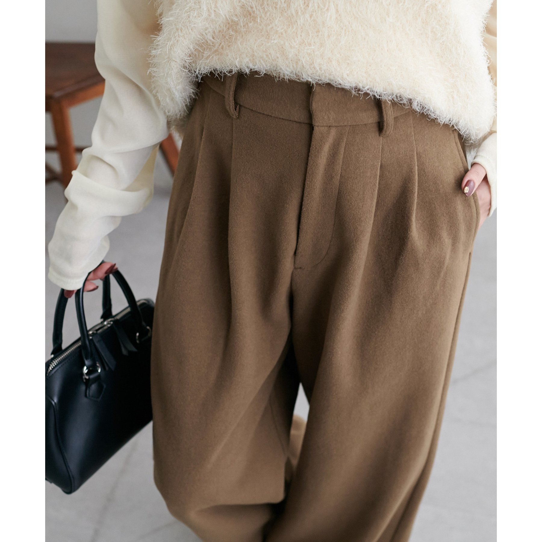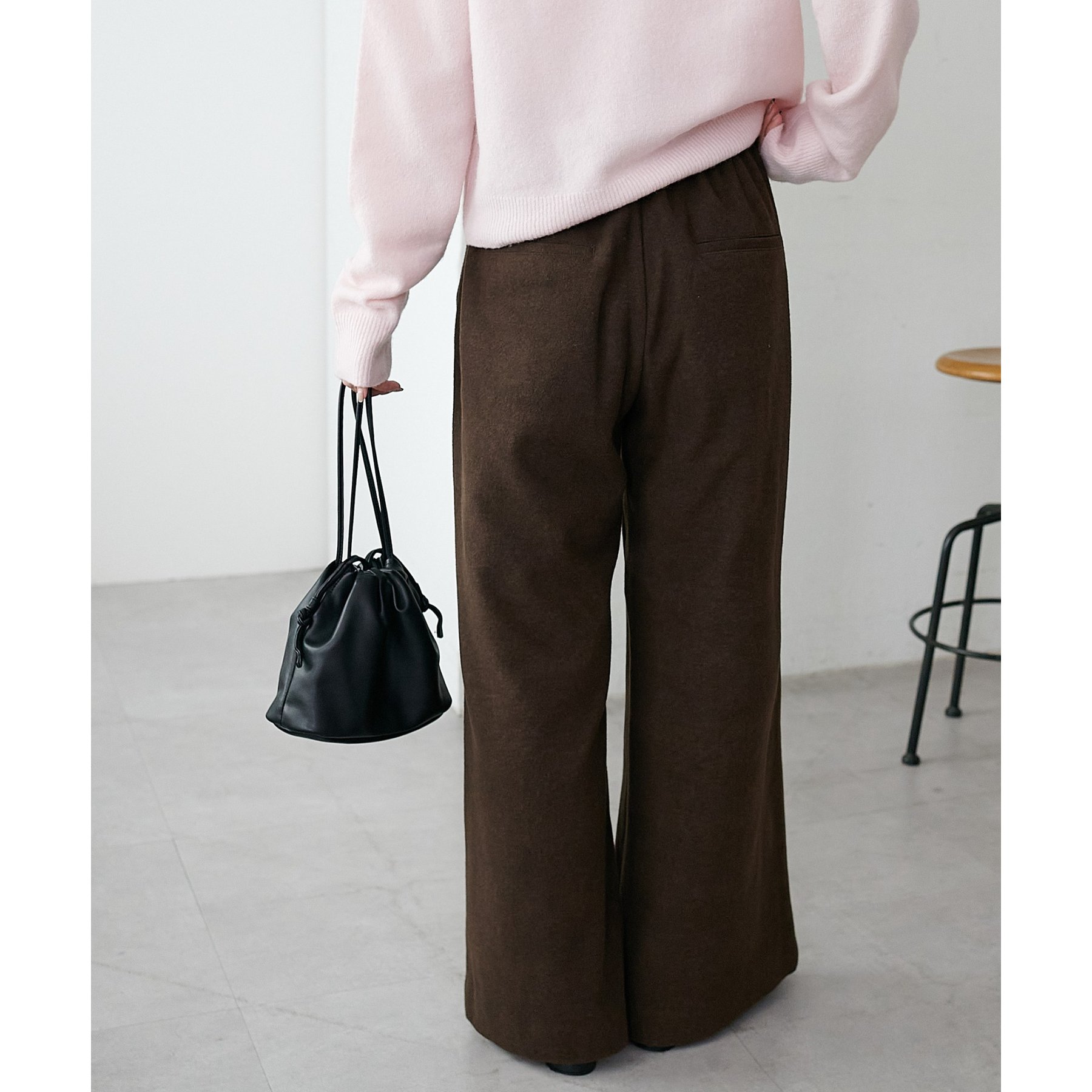 暖かみのあるウールライク素材を使用した秋冬向けのワイドパンツ。