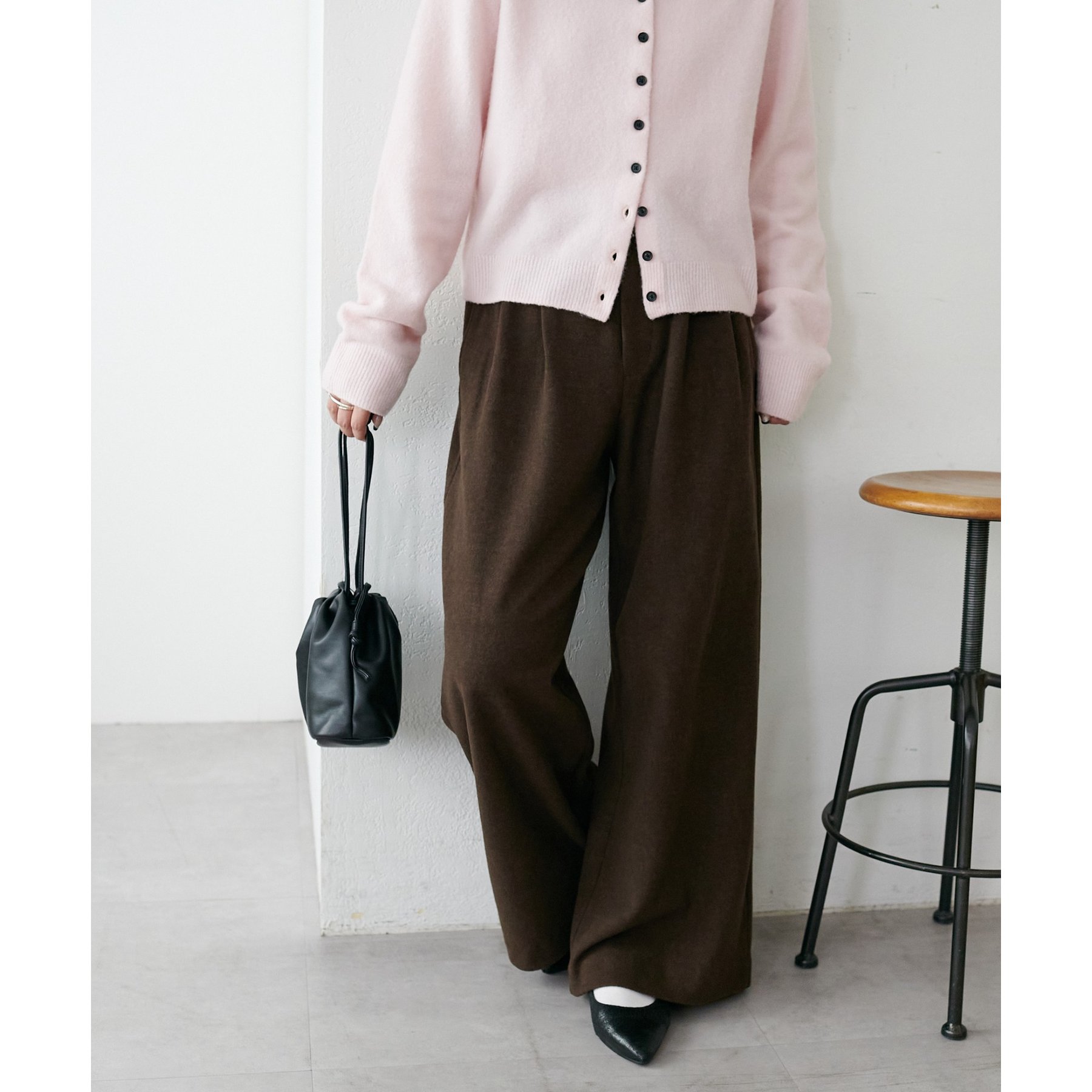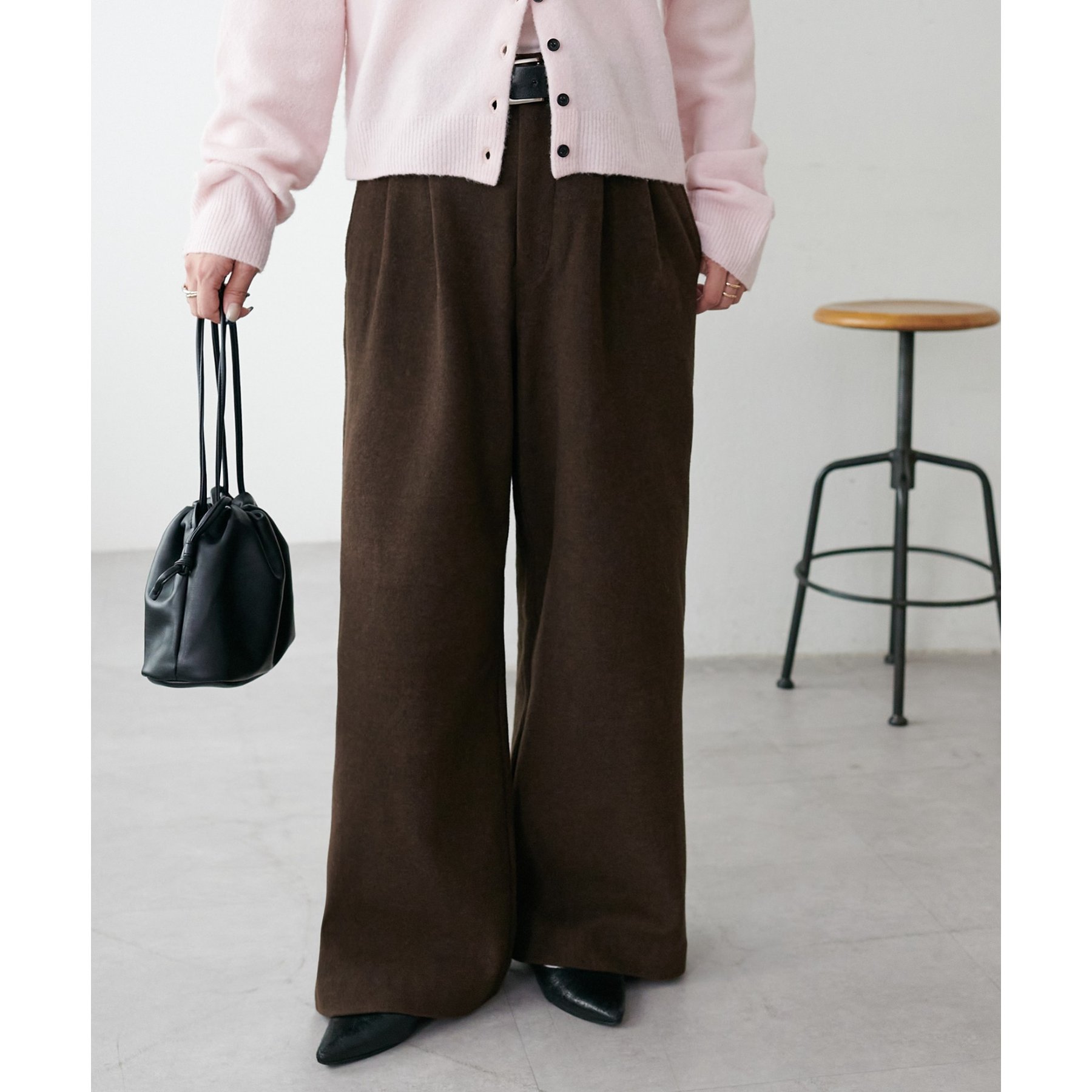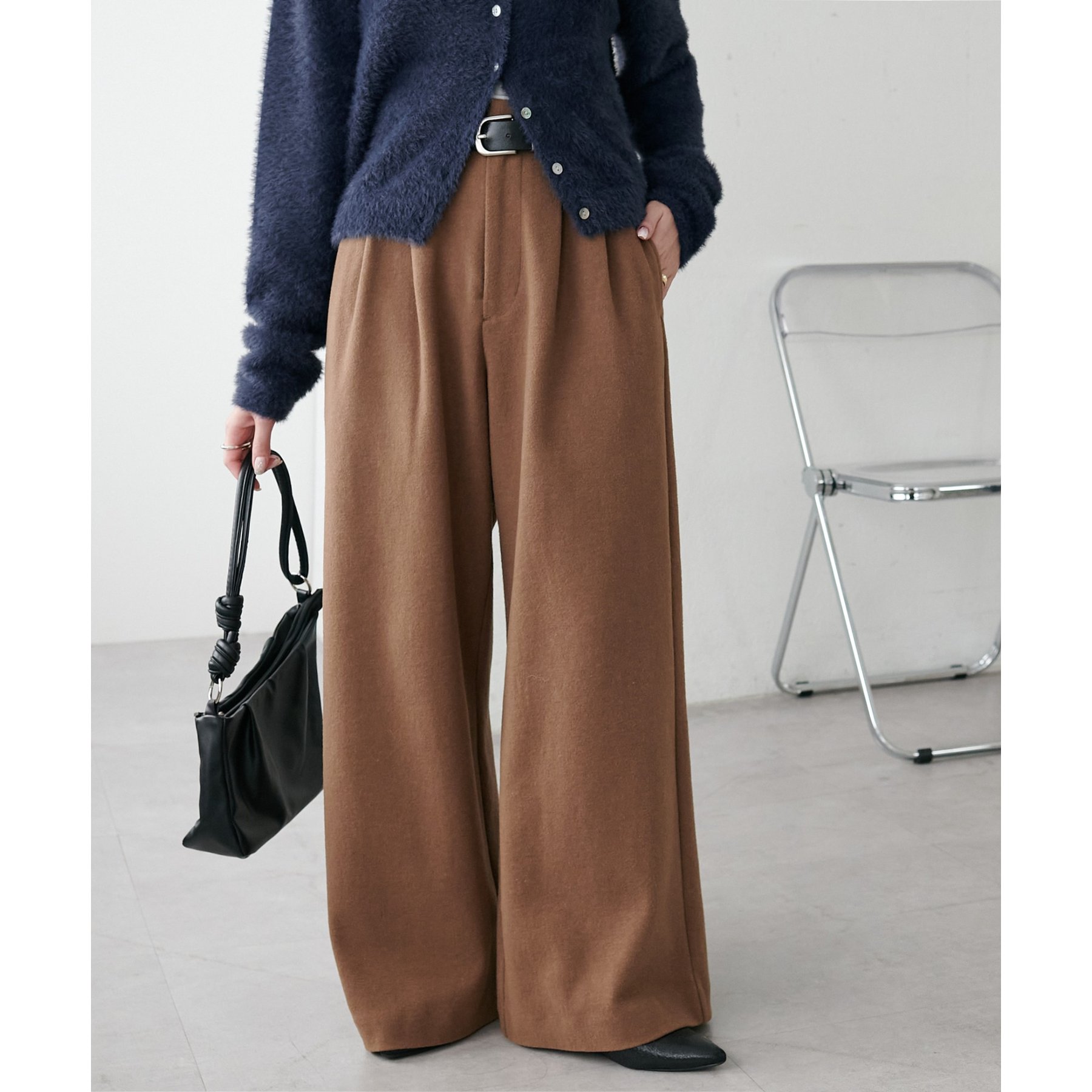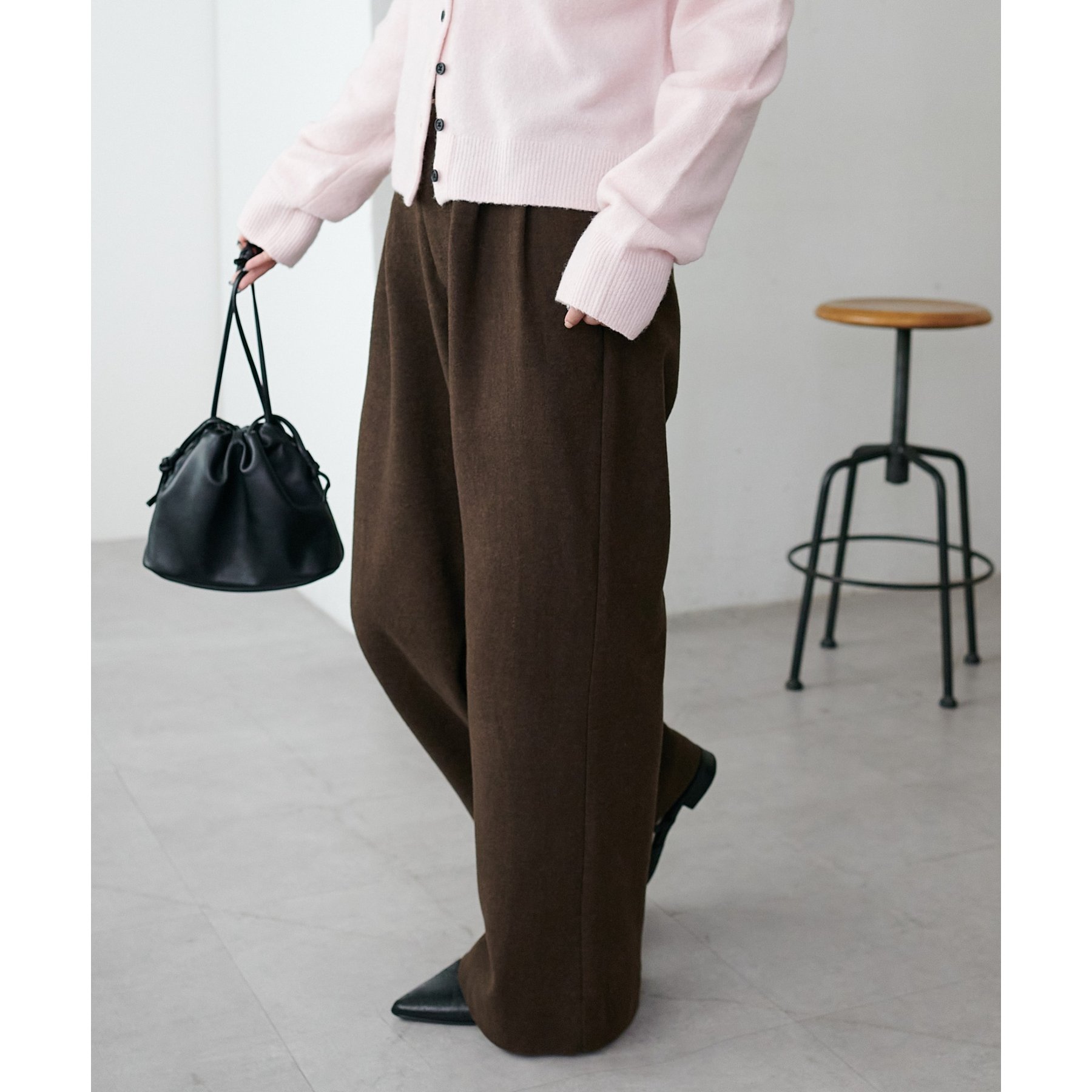 暖かみのあるウールライク素材を使用した秋冬向けのワイドパンツ。