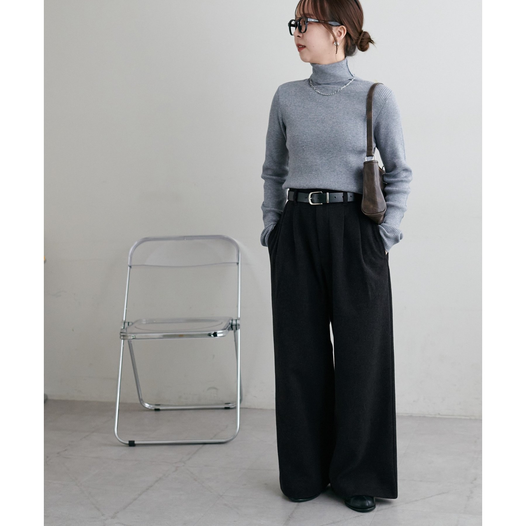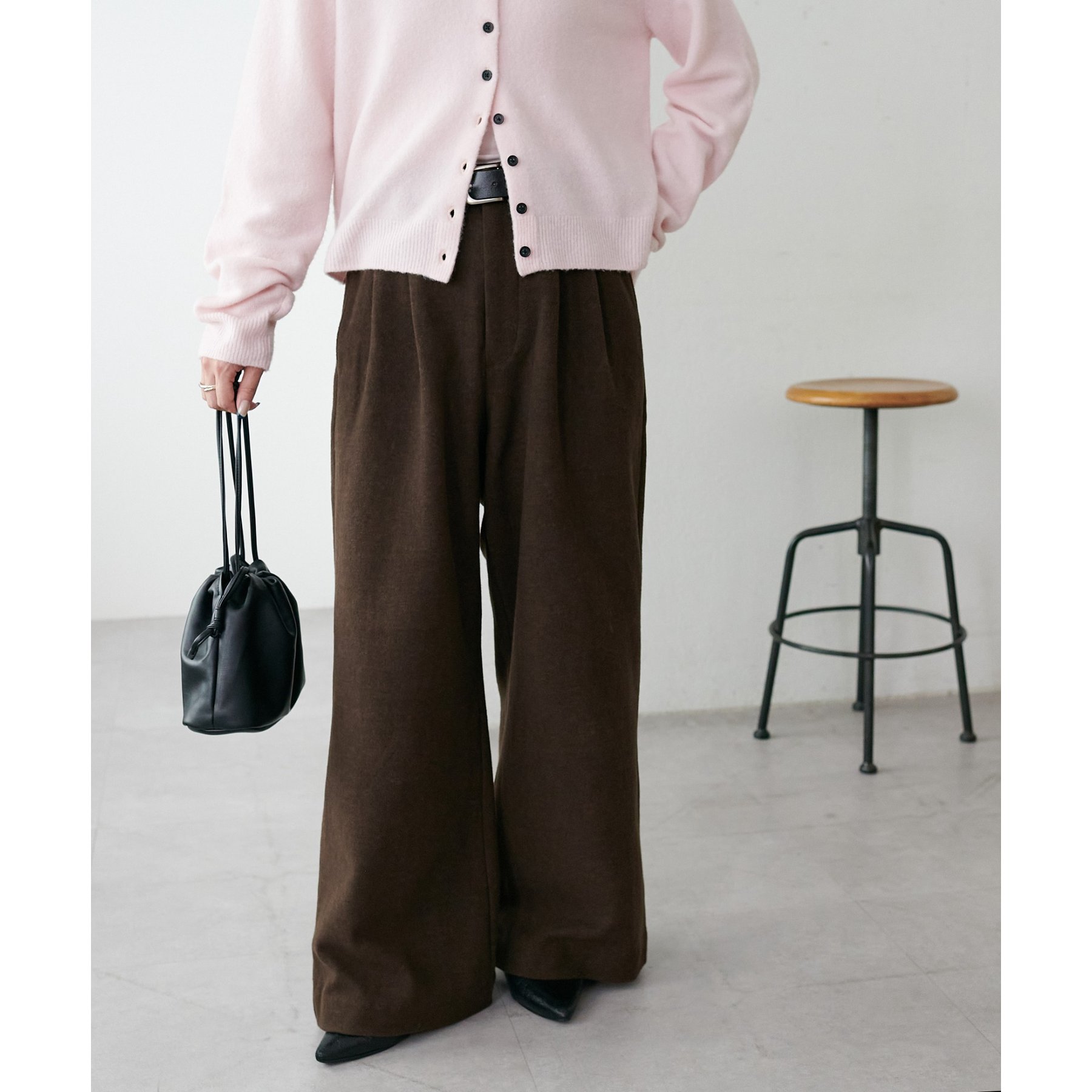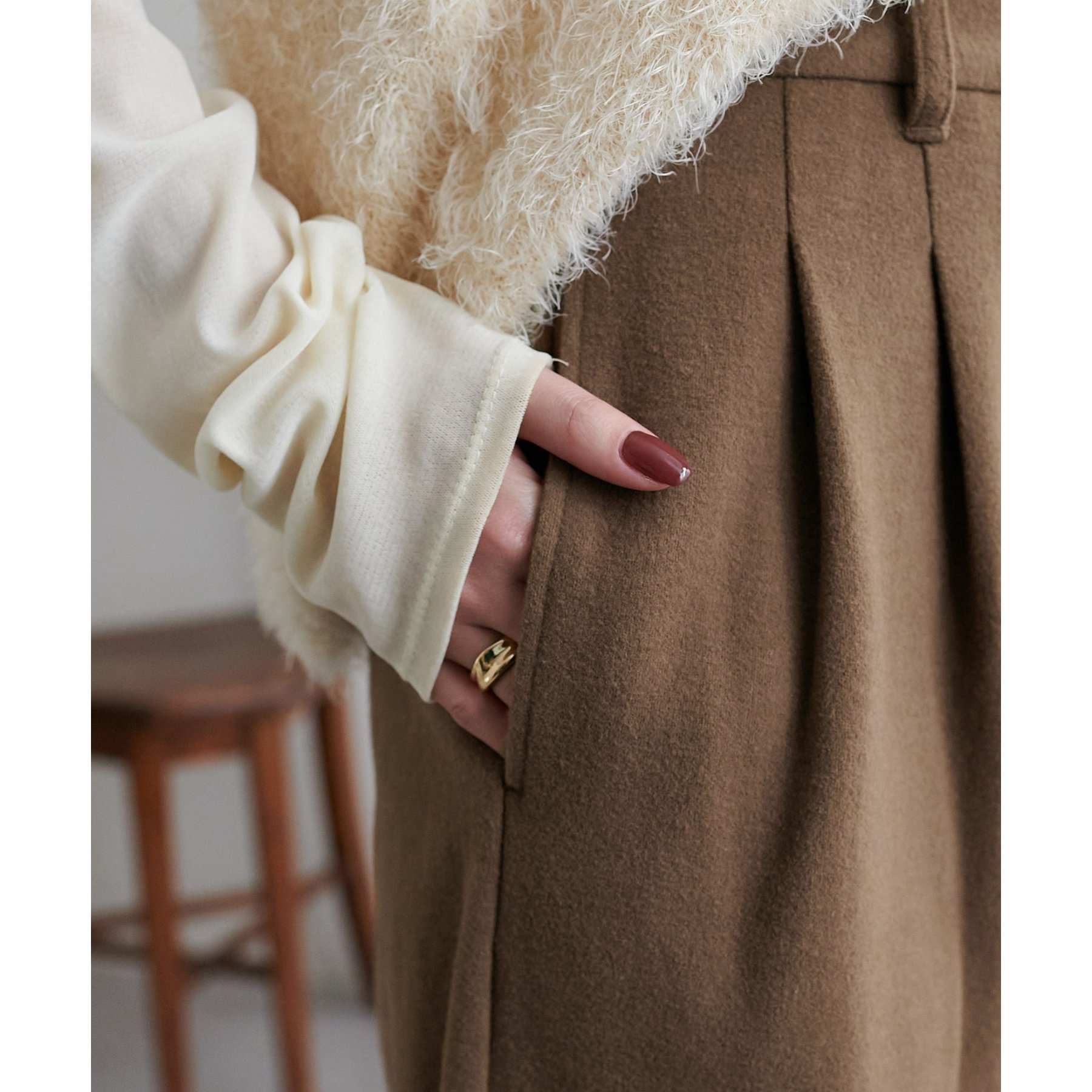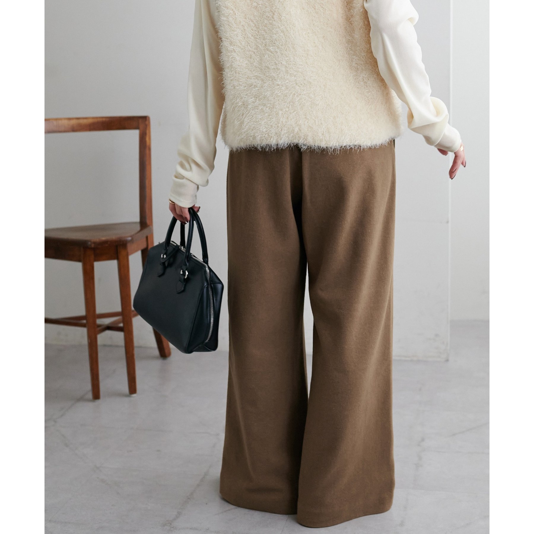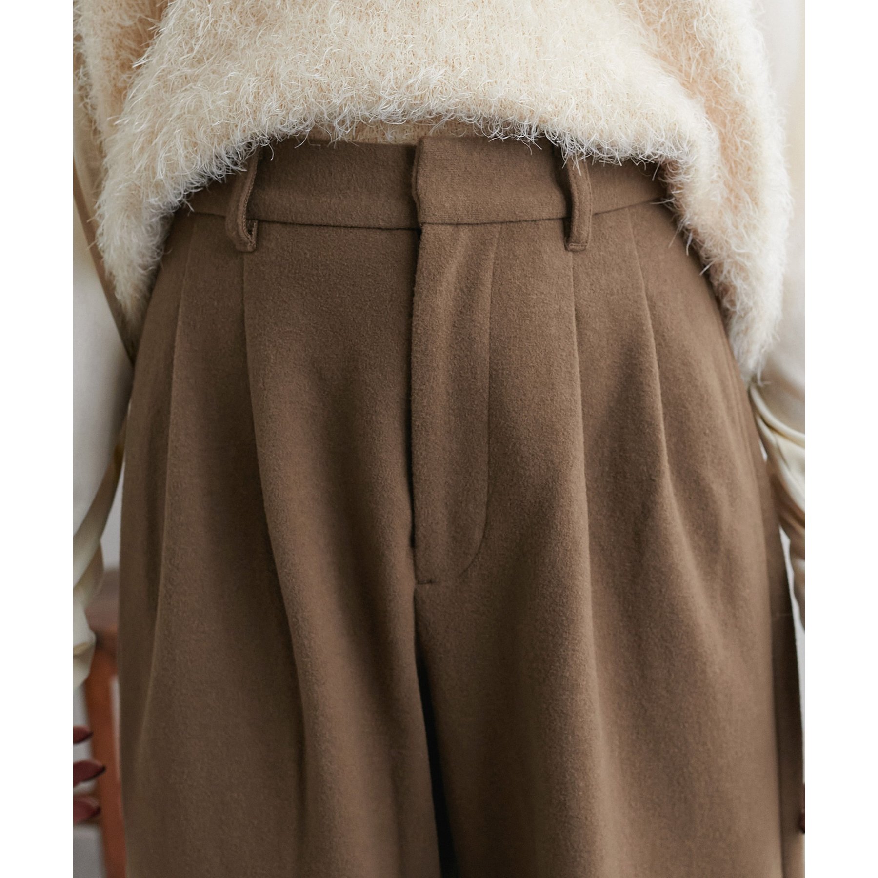 暖かみのあるウールライク素材を使用した秋冬向けのワイドパンツ。