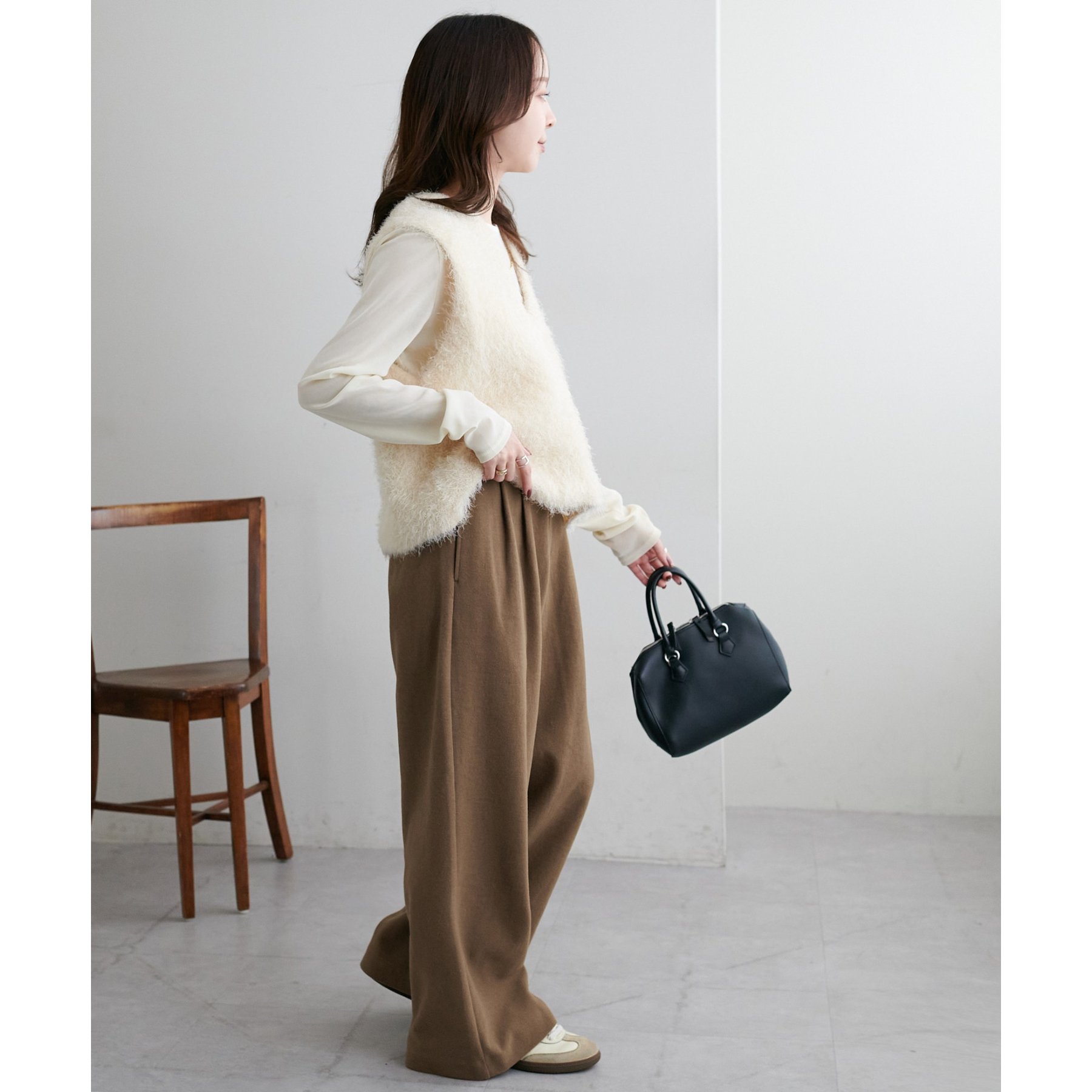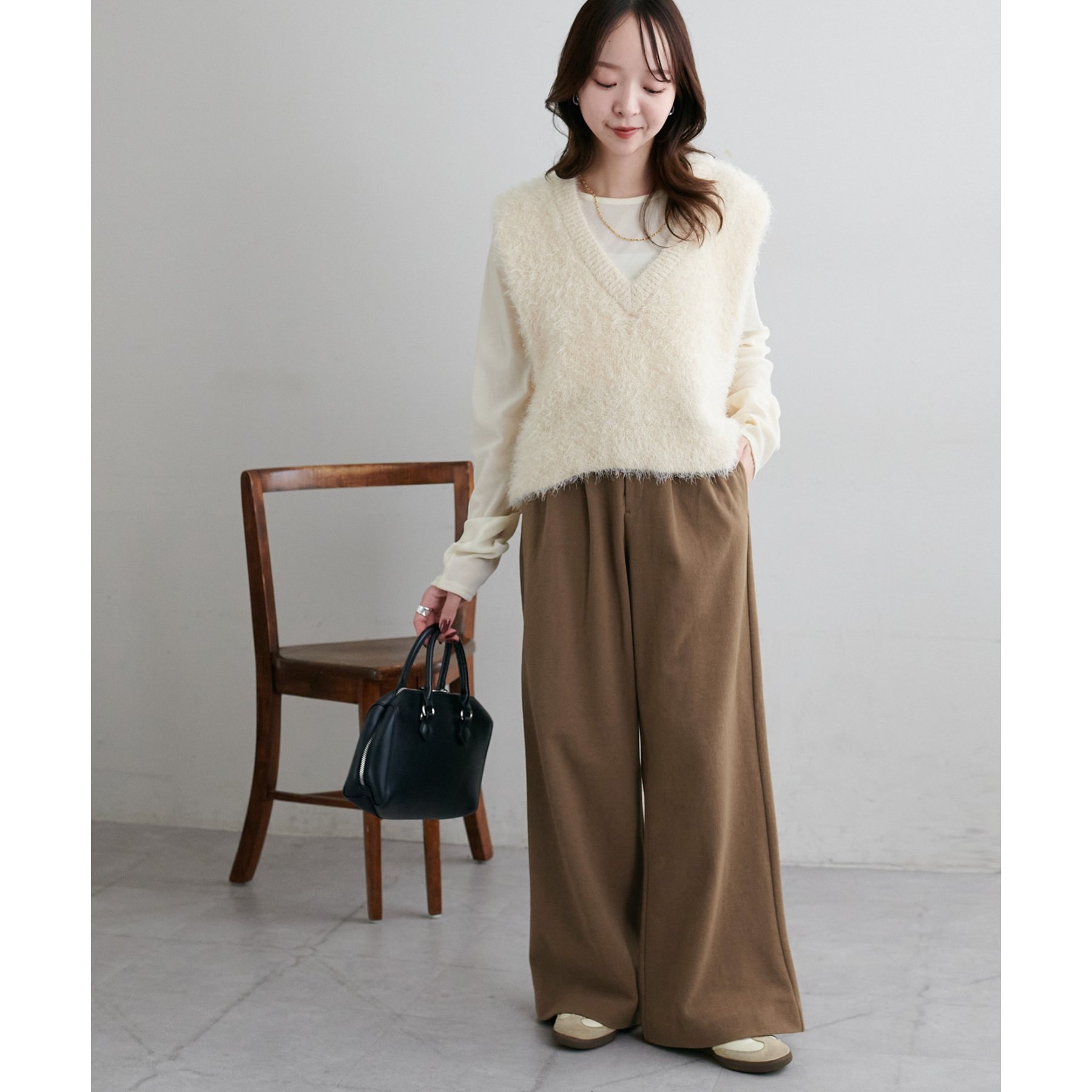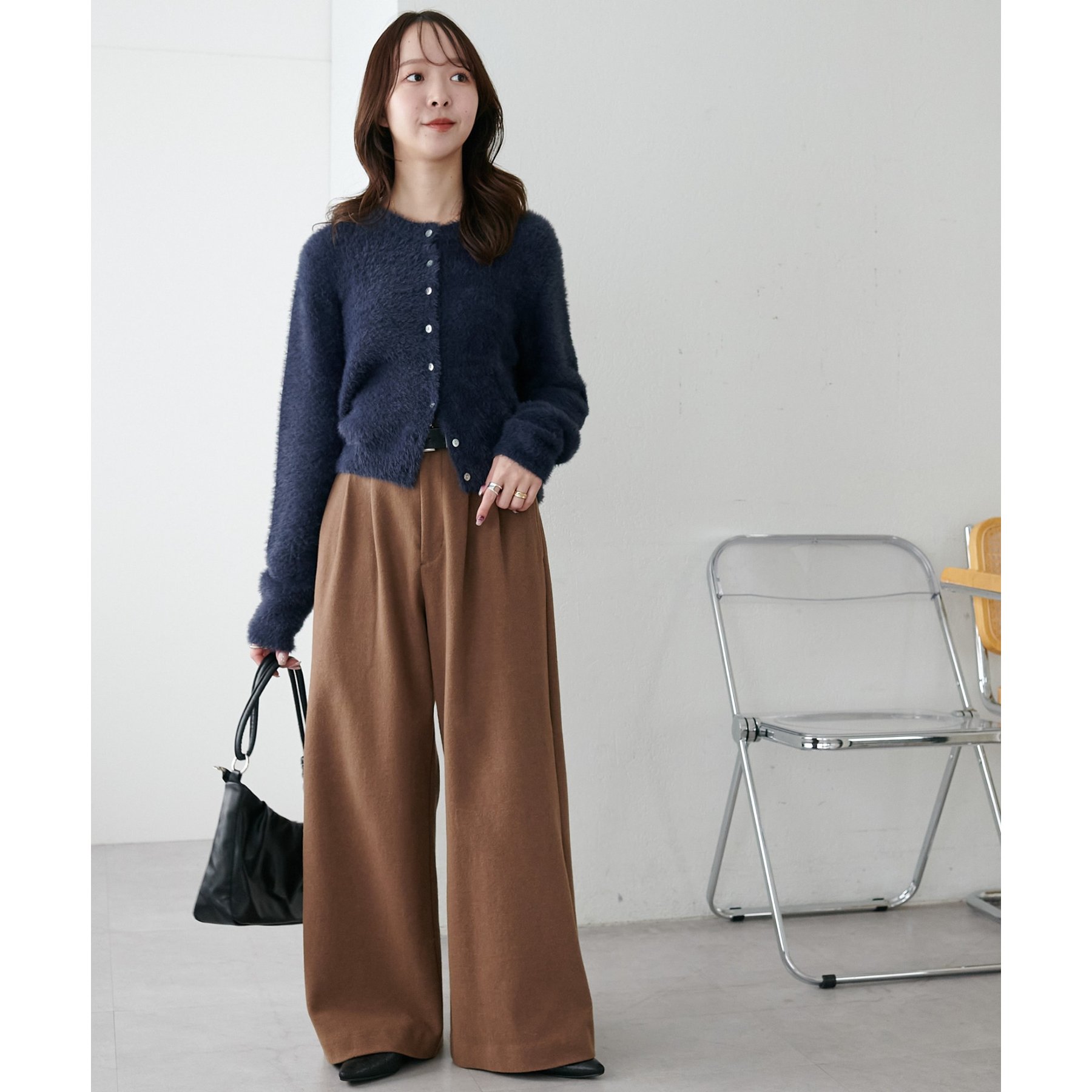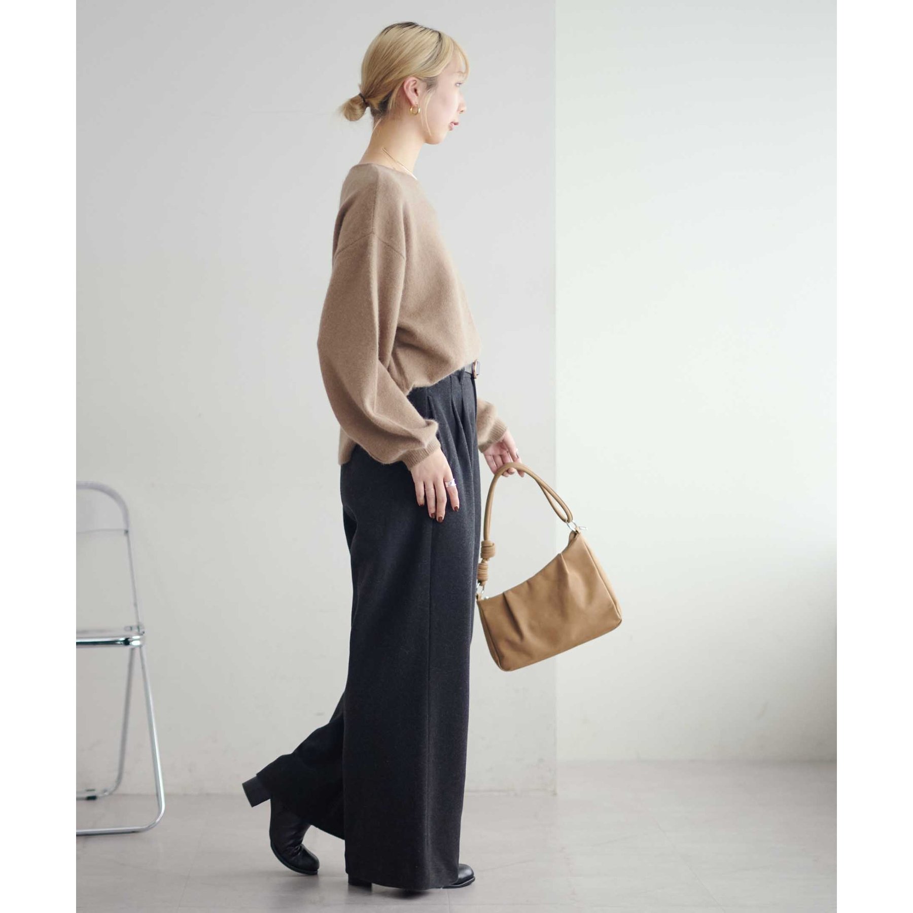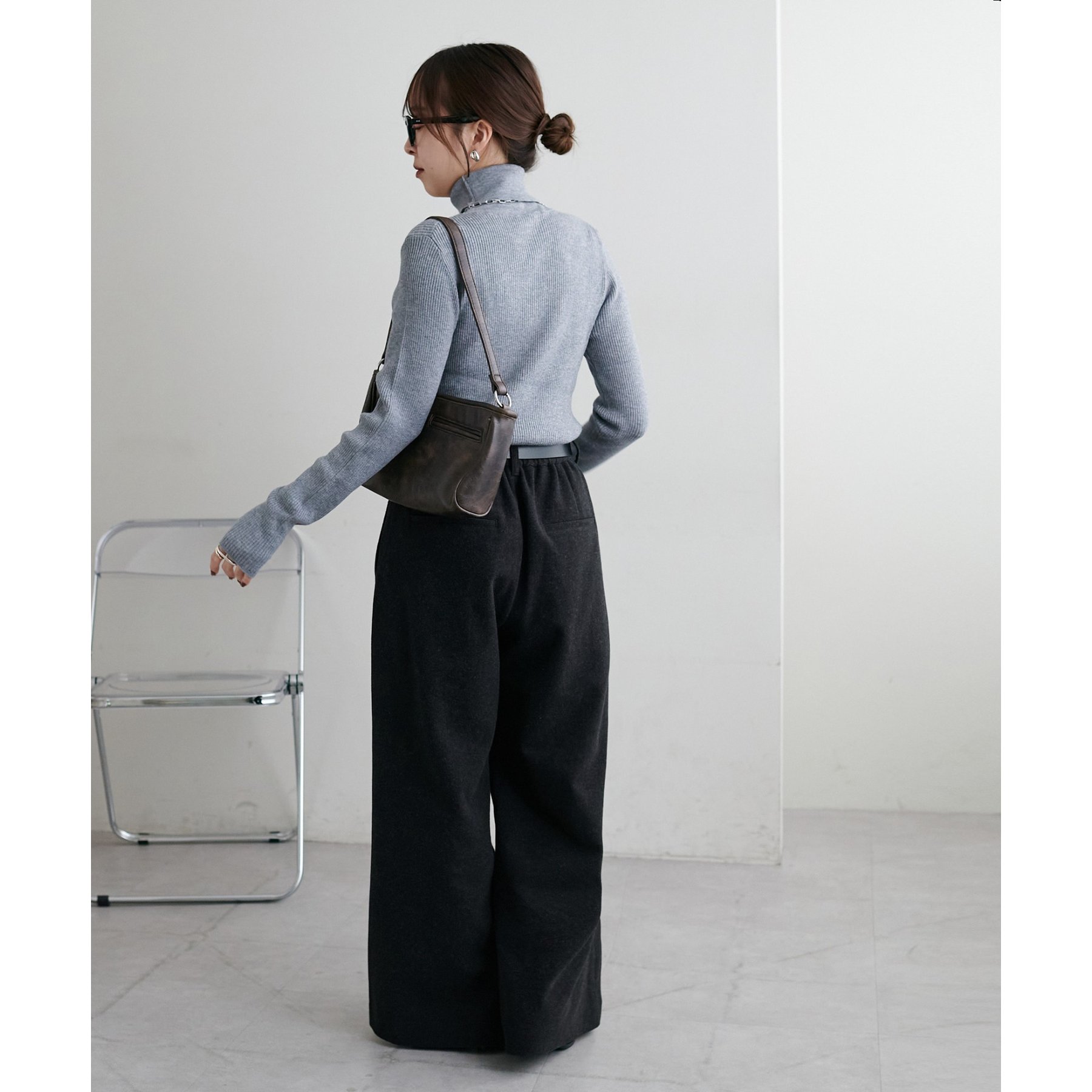 暖かみのあるウールライク素材を使用した秋冬向けのワイドパンツ。