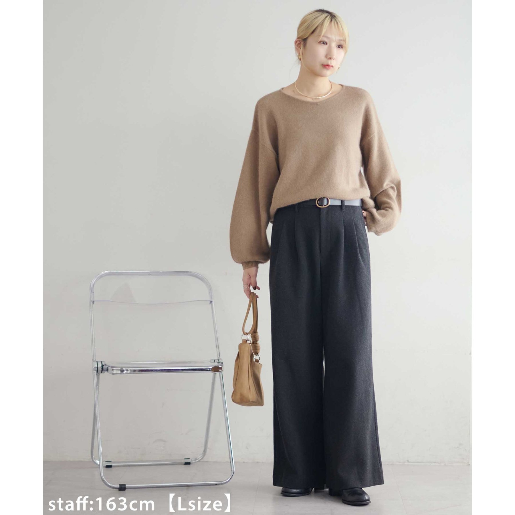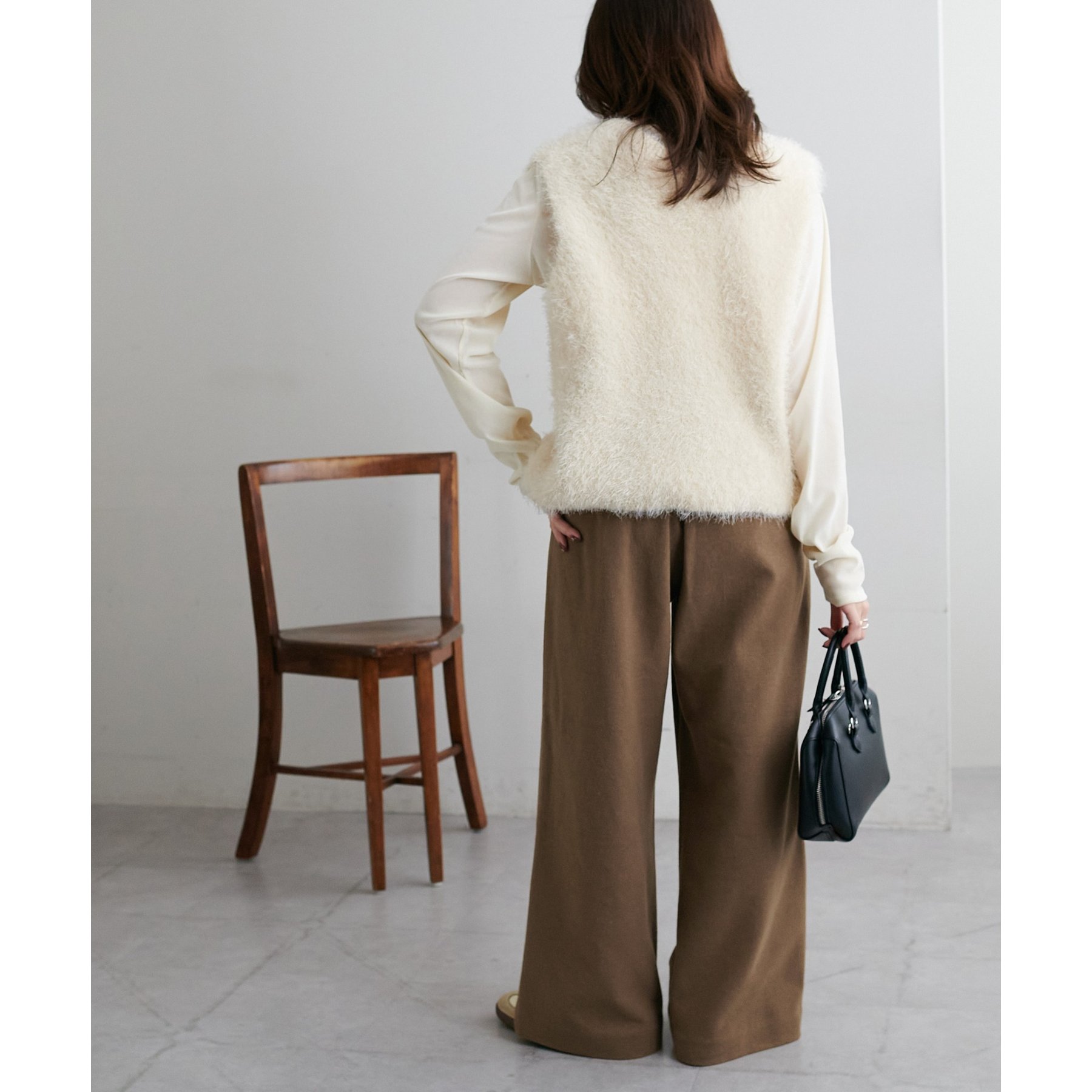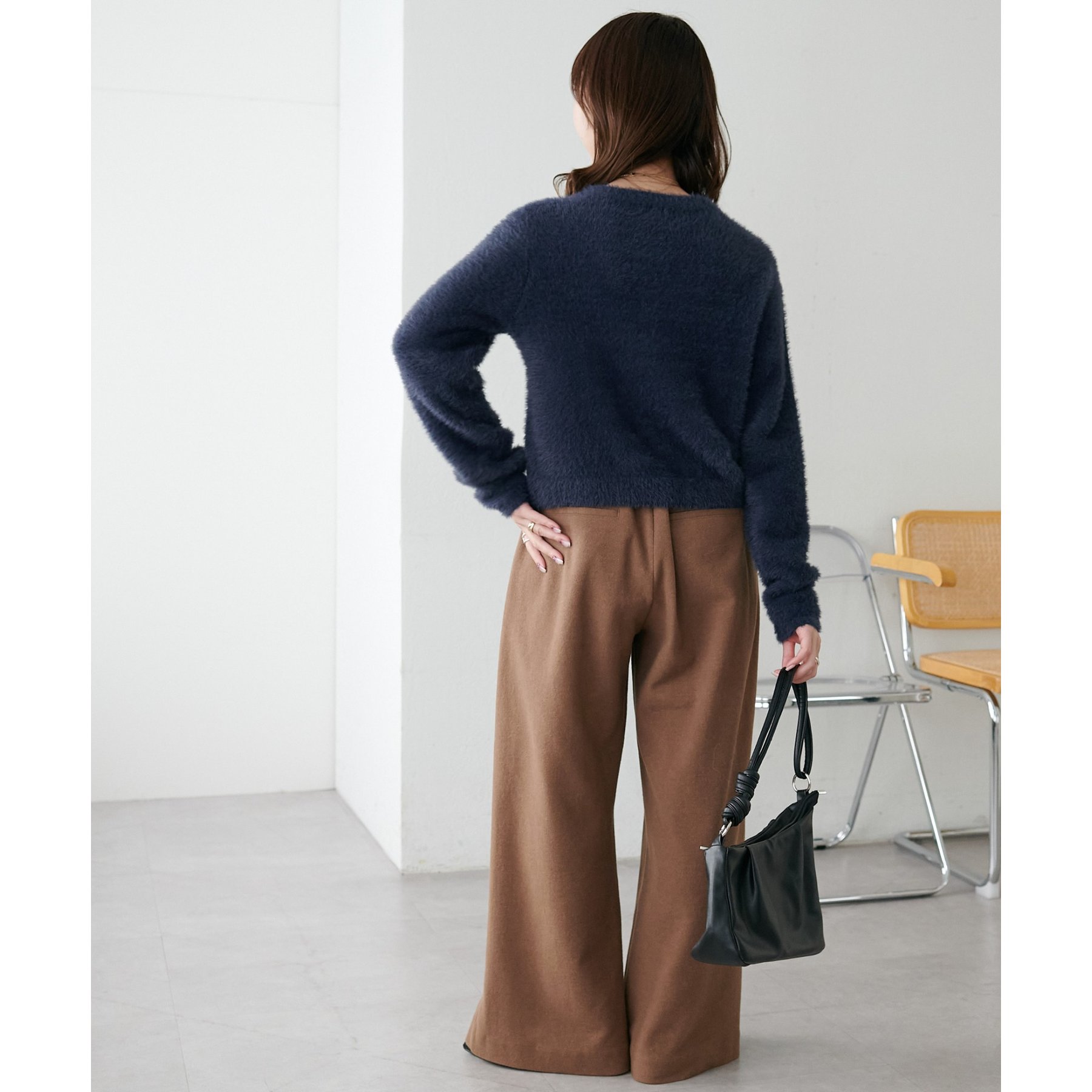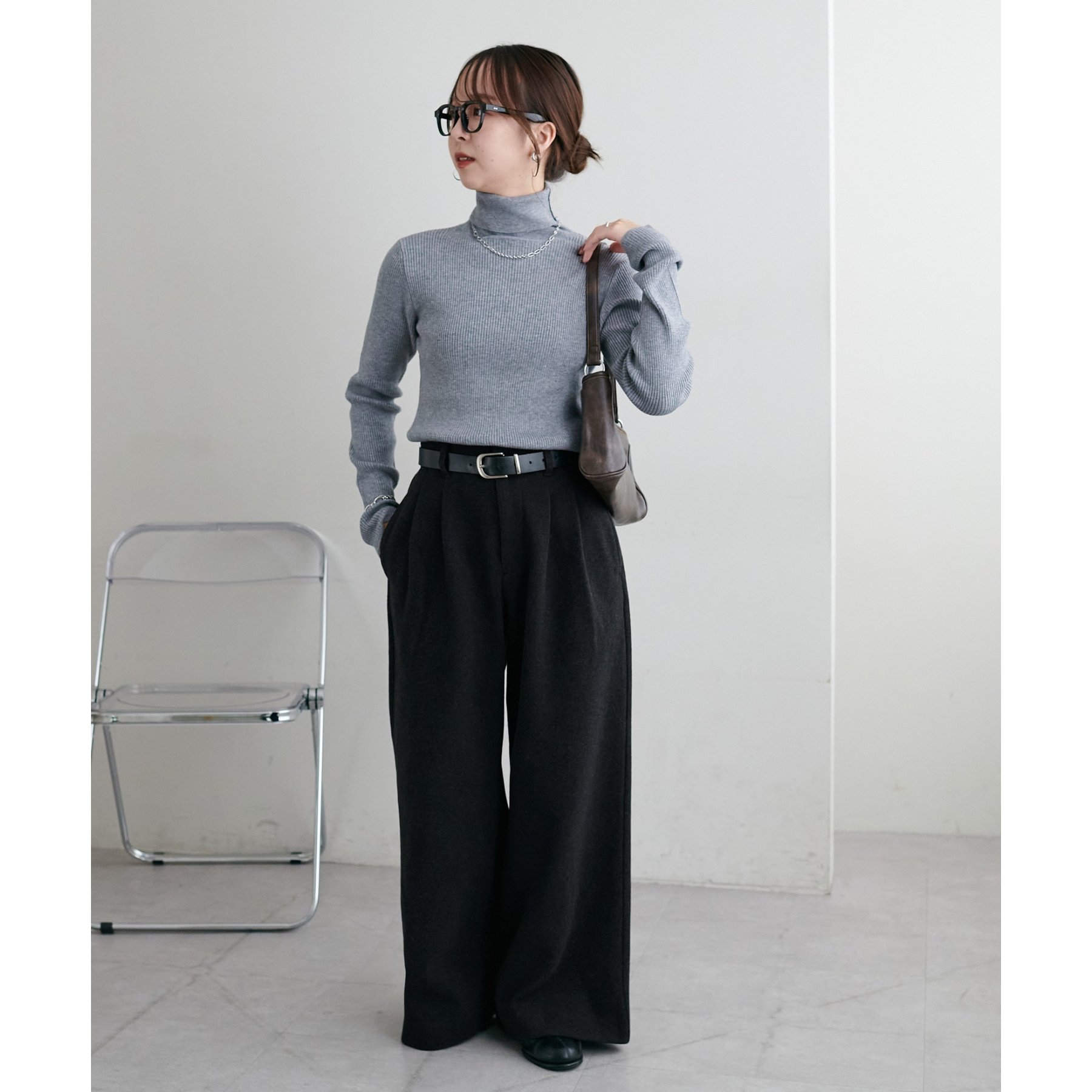 暖かみのあるウールライク素材を使用した秋冬向けのワイドパンツ。