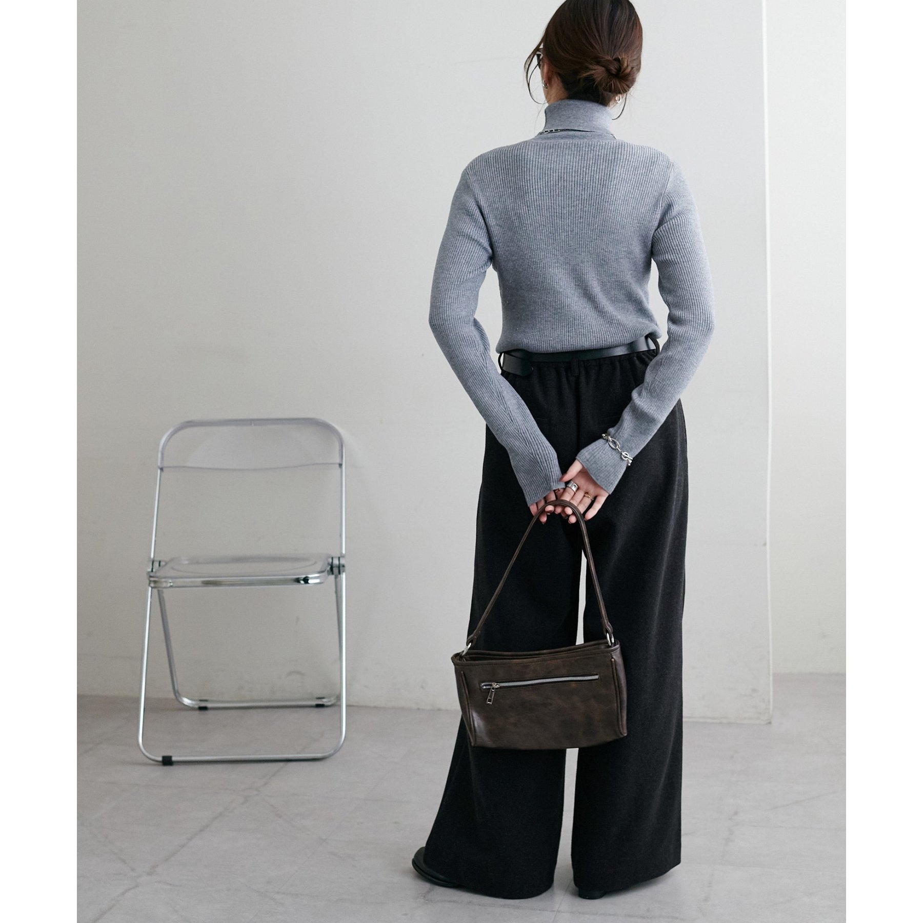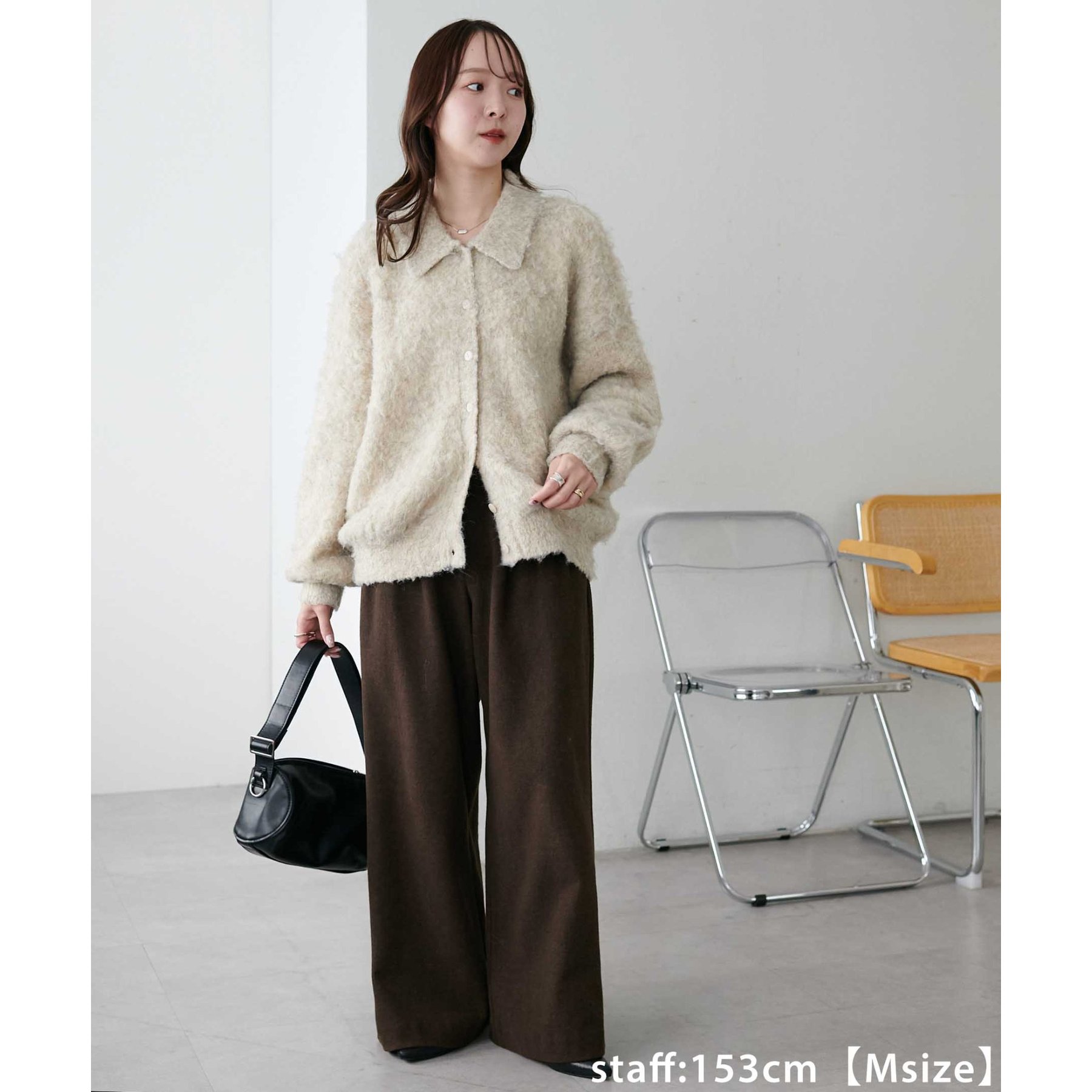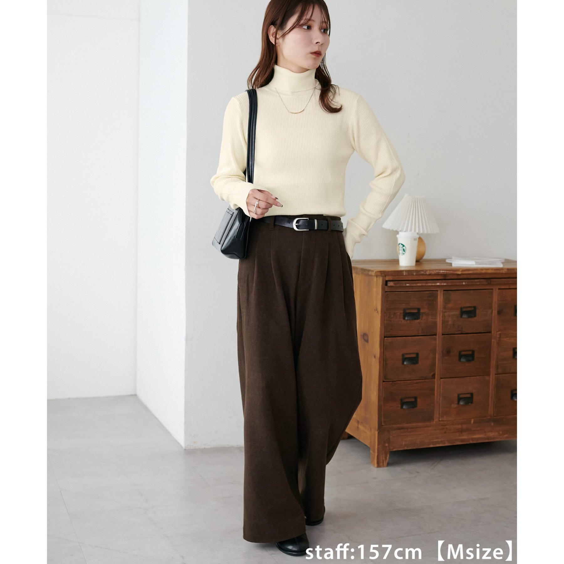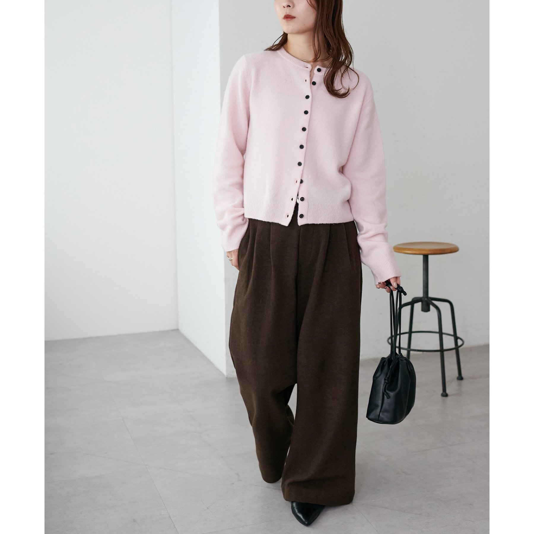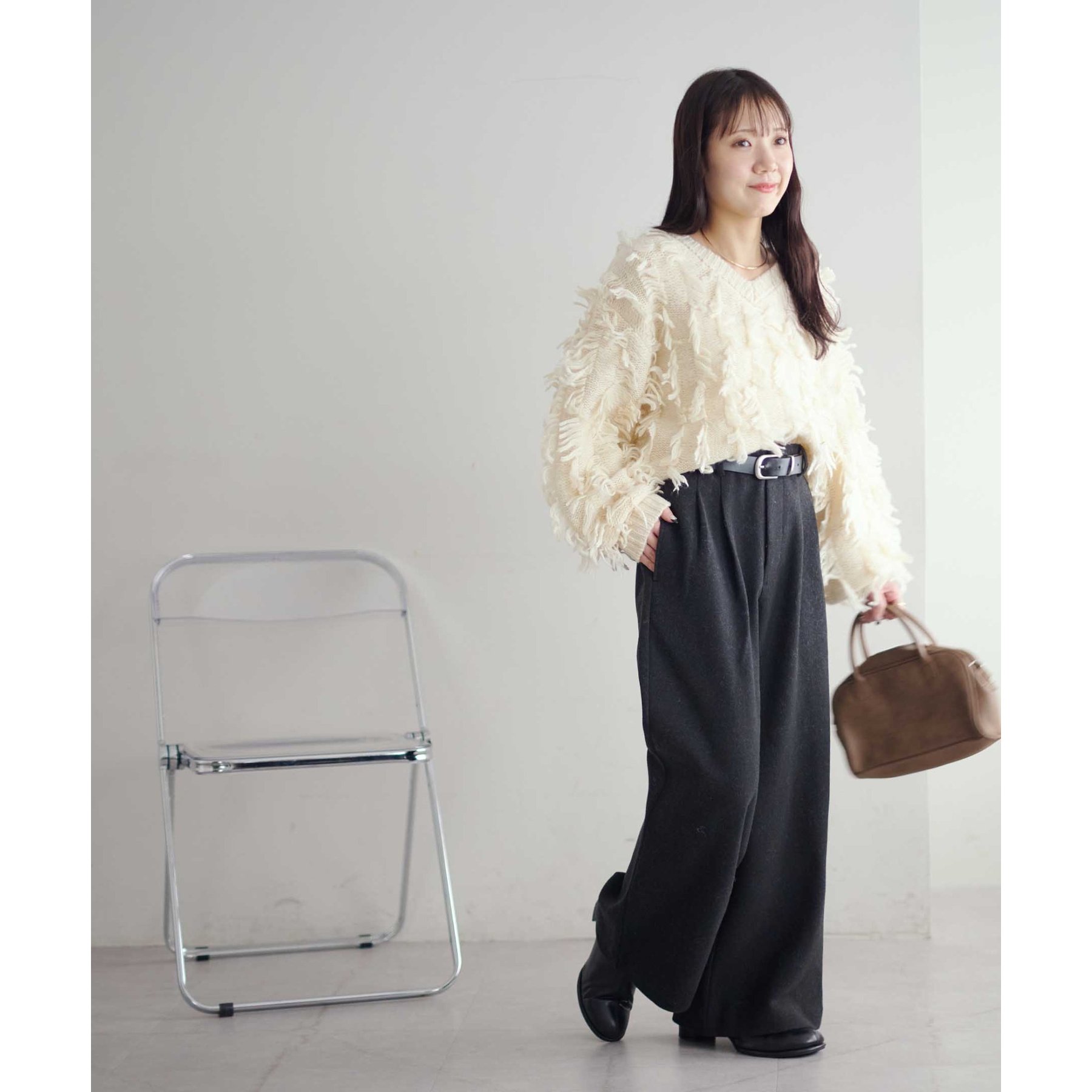 暖かみのあるウールライク素材を使用した秋冬向けのワイドパンツ。