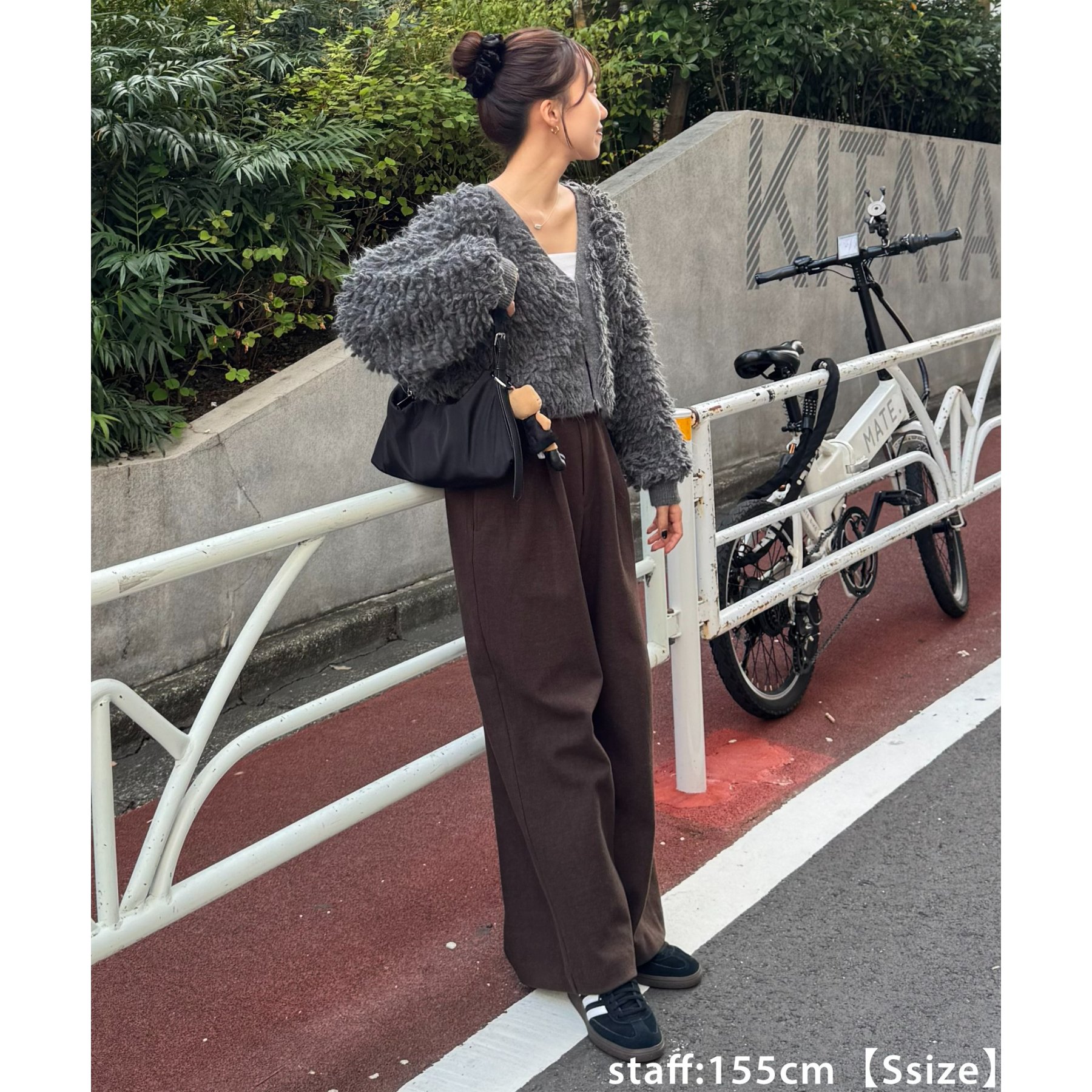 157cmスタッフ(Mサイズ着用):腰回りがスッキリ見えるワイドパンツなので、足長効果があります!