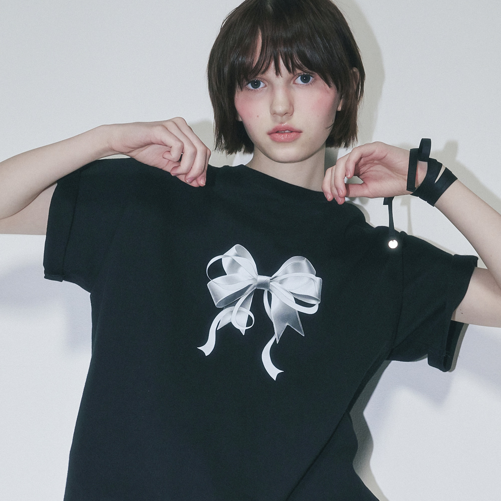DOUBLE RIBBON BASIC FIT T SHIRT BLACK SILVER