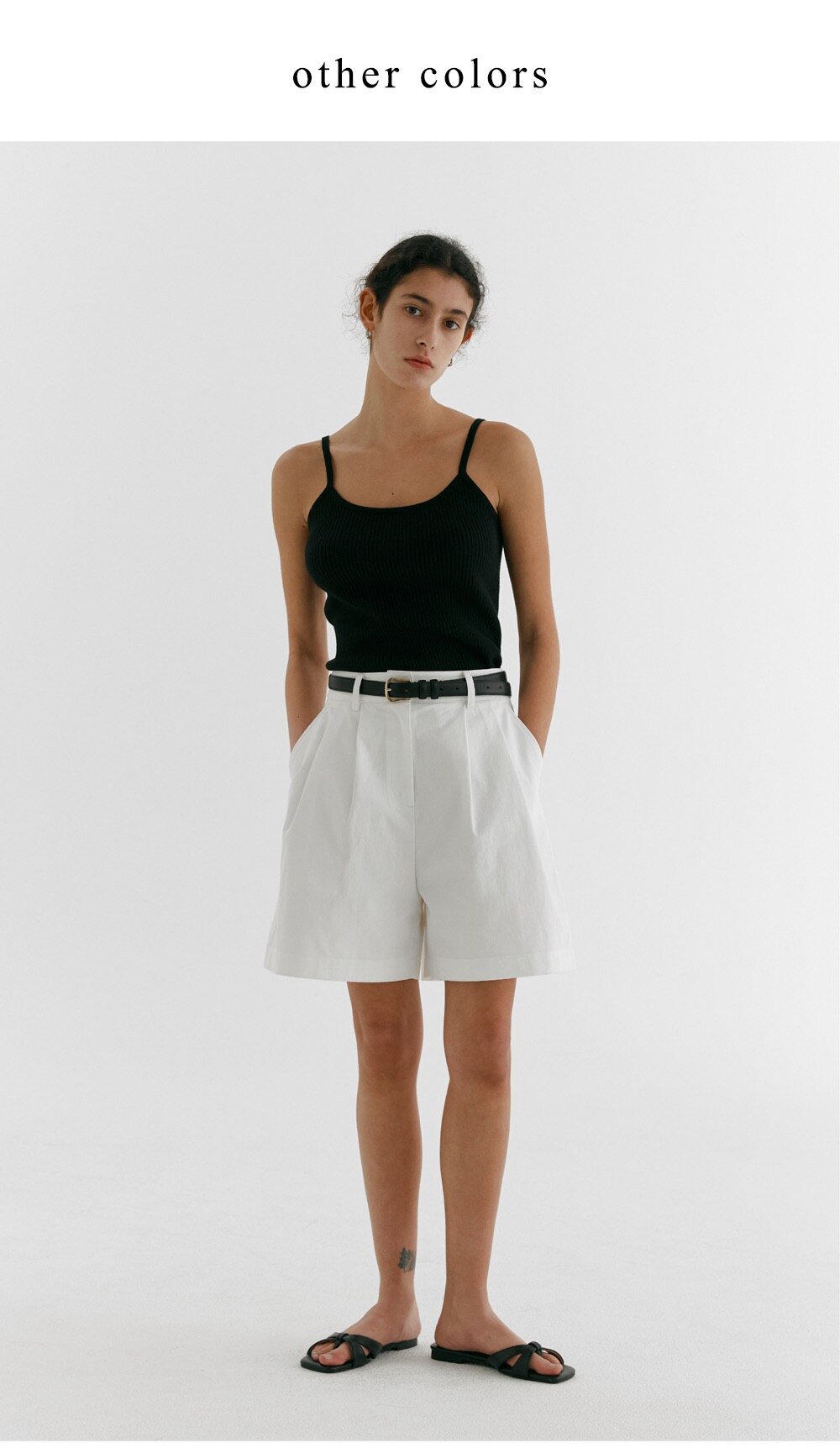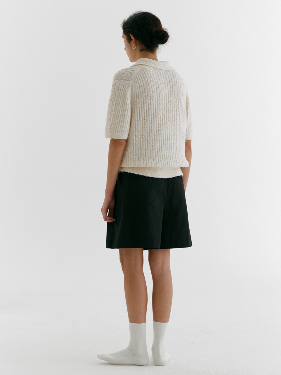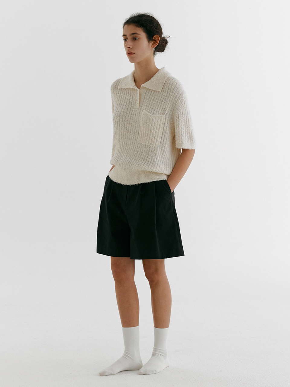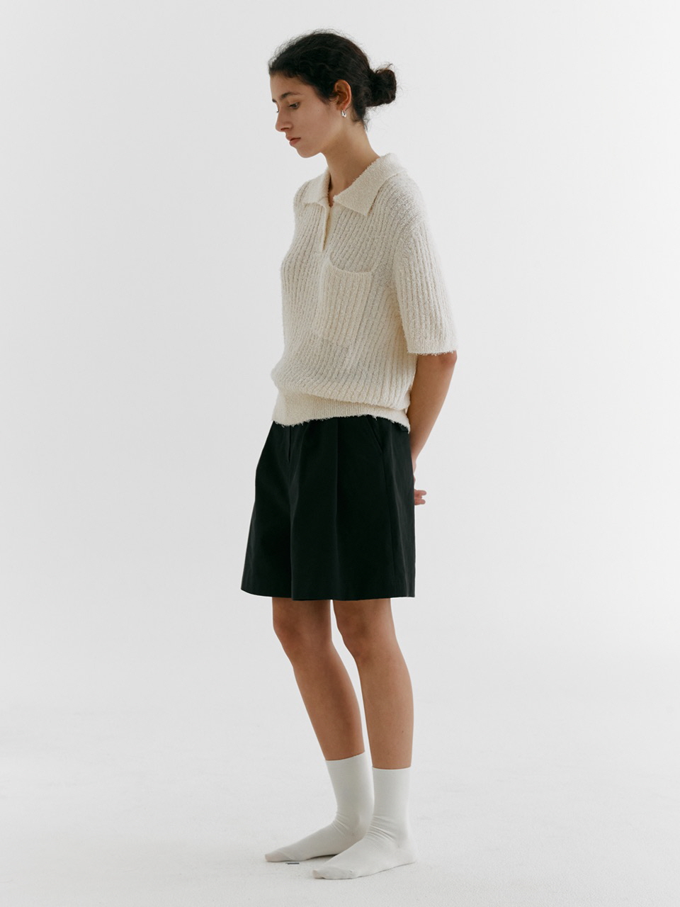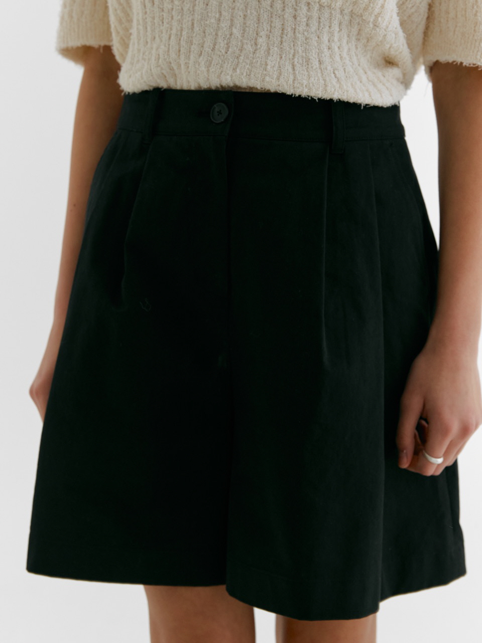 DOUBLE TUCK WIDE HALF PANTS_BLACK