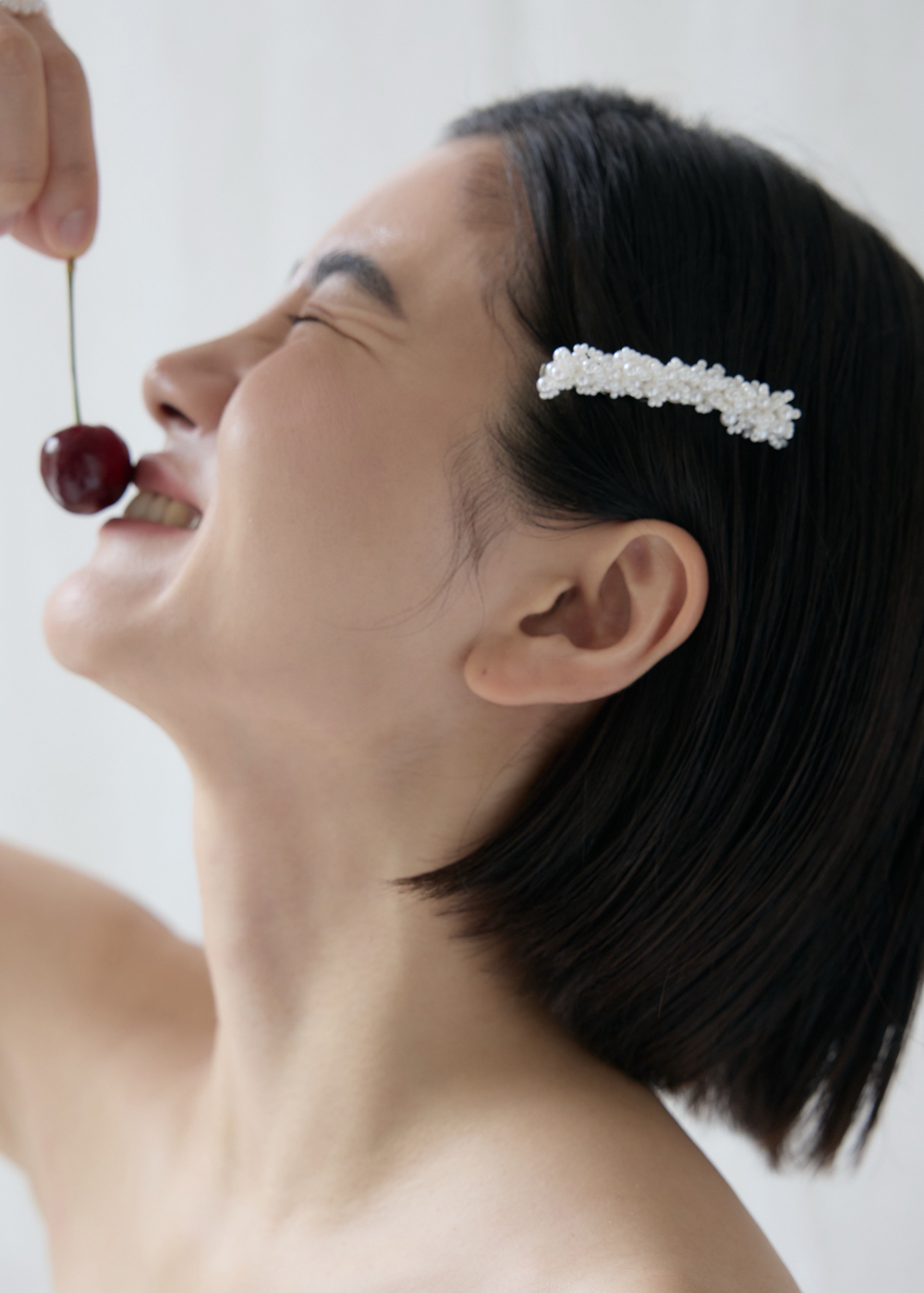 花をいっそう美しく引き立てる「つるケイトウ(マンドラミ)」からインスピレーションを受けたヘアピンです。