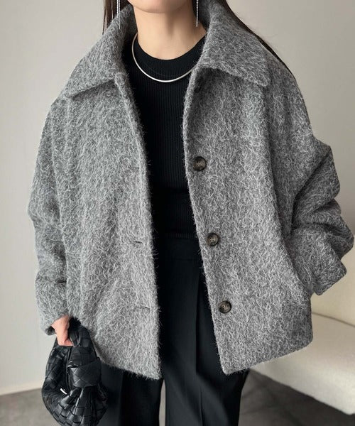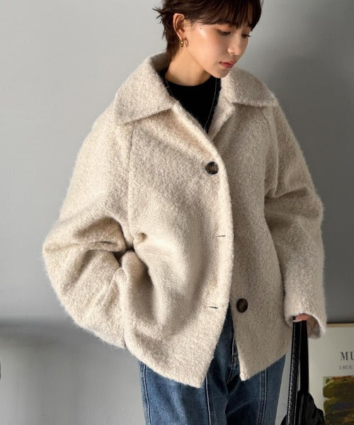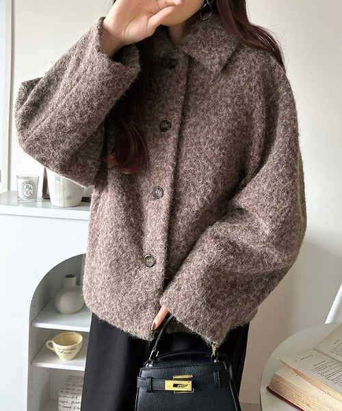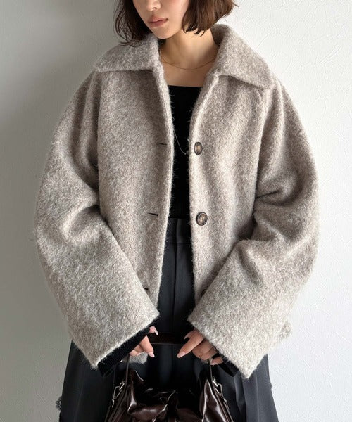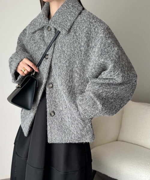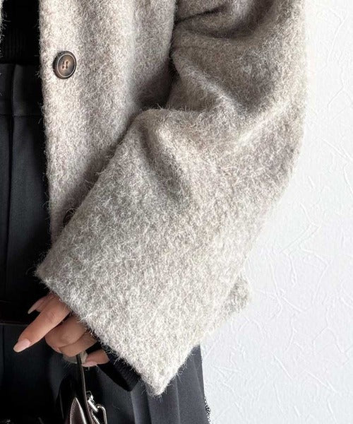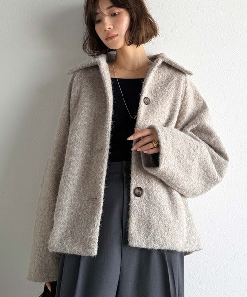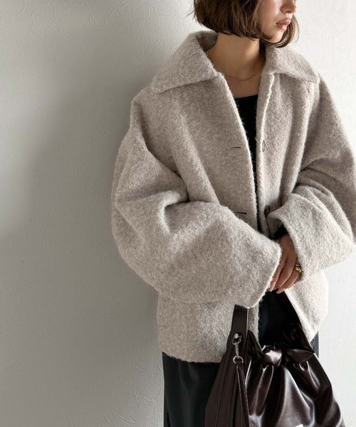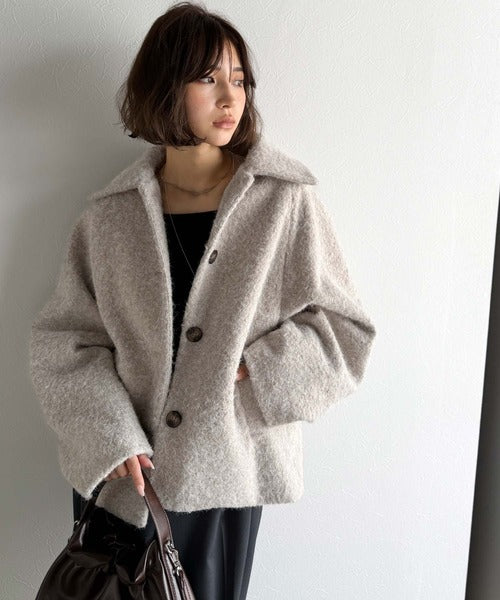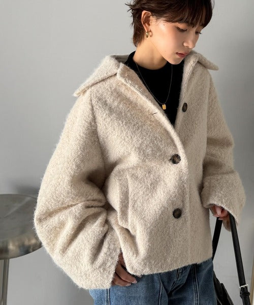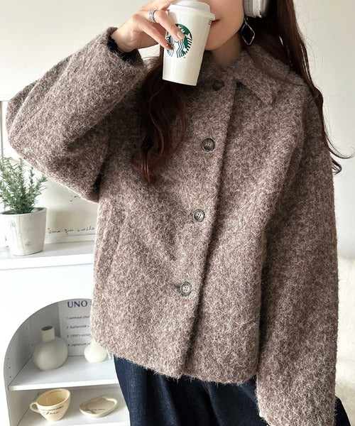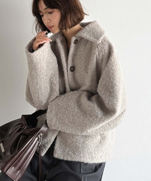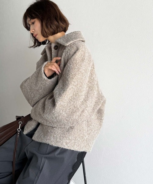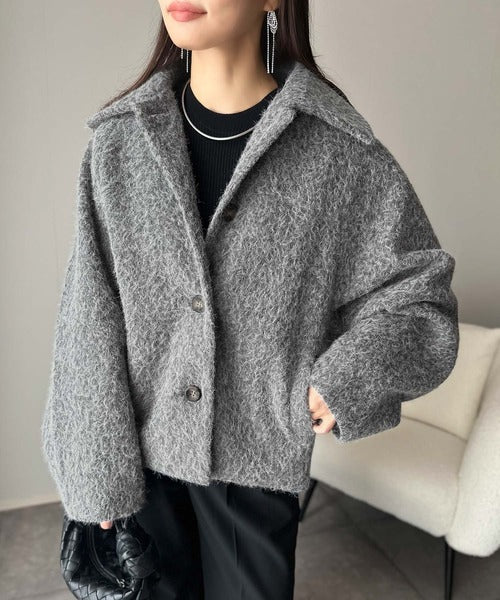 ベーシックアウターを、素材感で大人見えに◎リングシャギーショートコクーンシルエットジャケット ce1240096