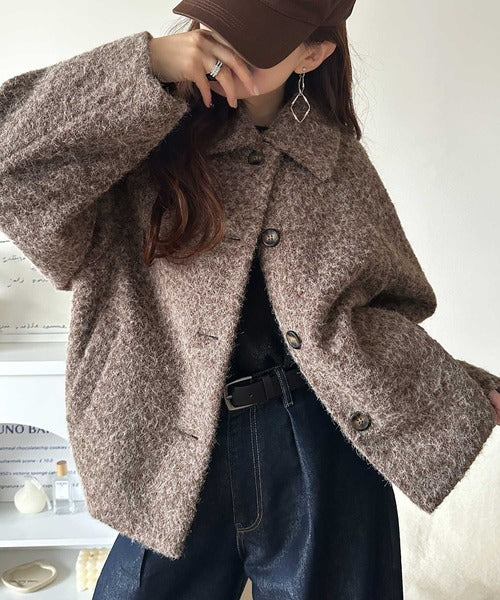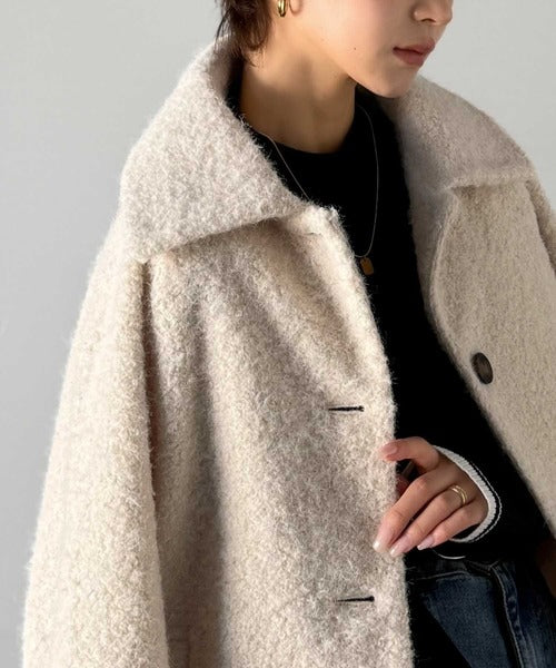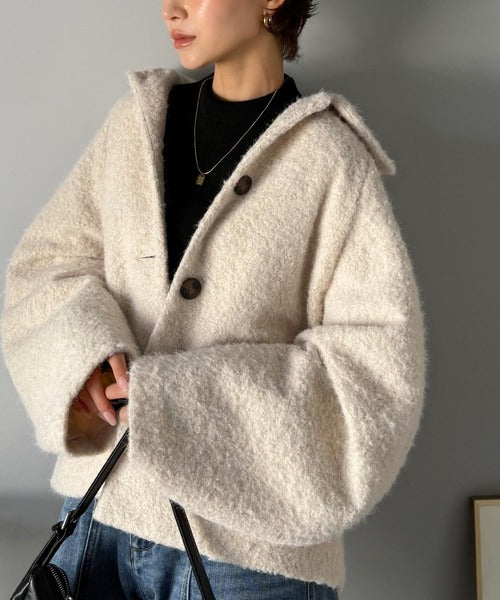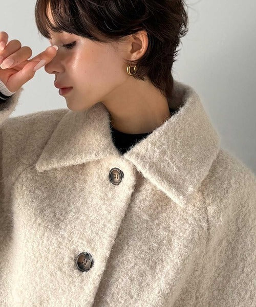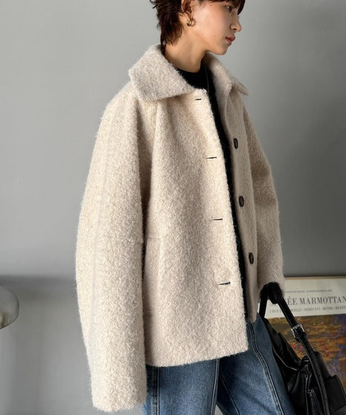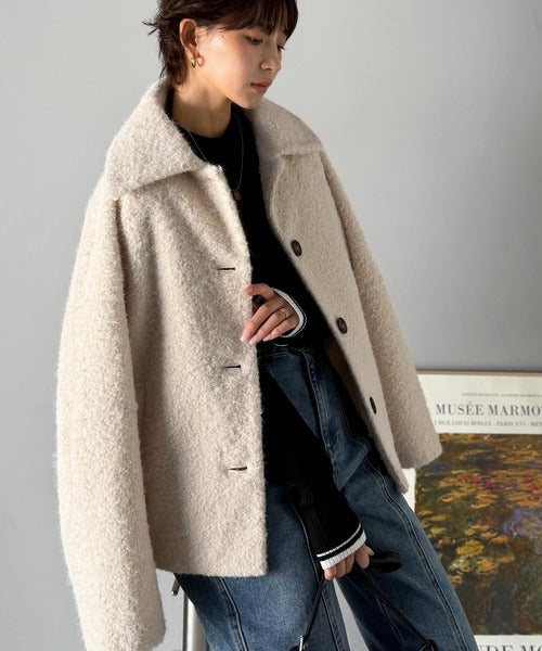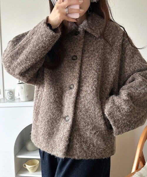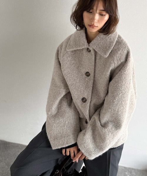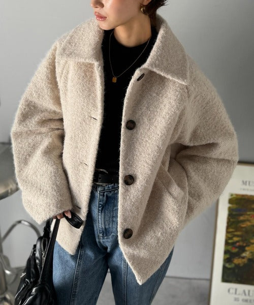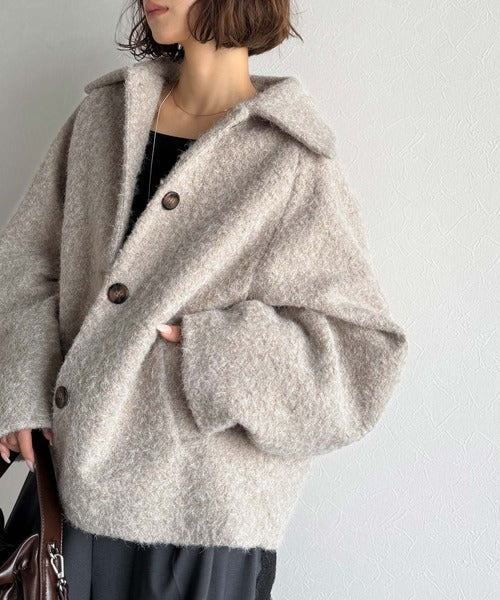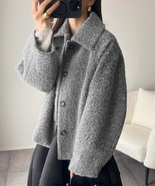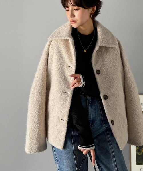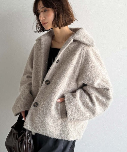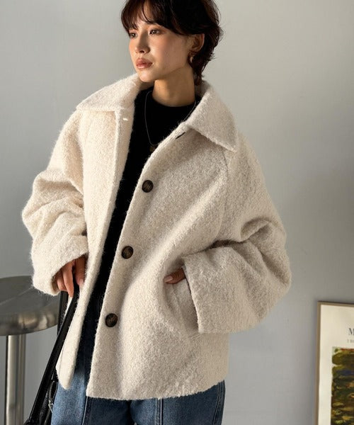 ベーシックアウターを、素材感で大人見えに◎リングシャギーショートコクーンシルエットジャケット ce1240096