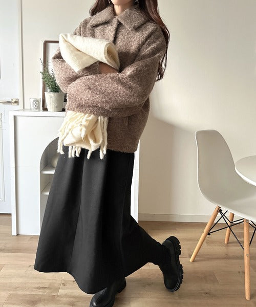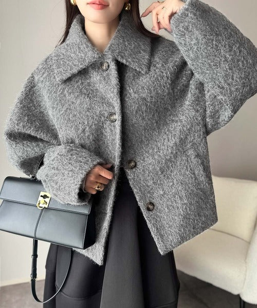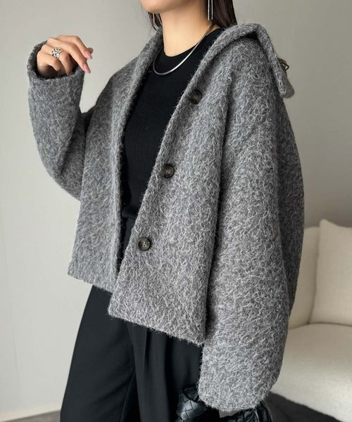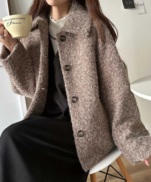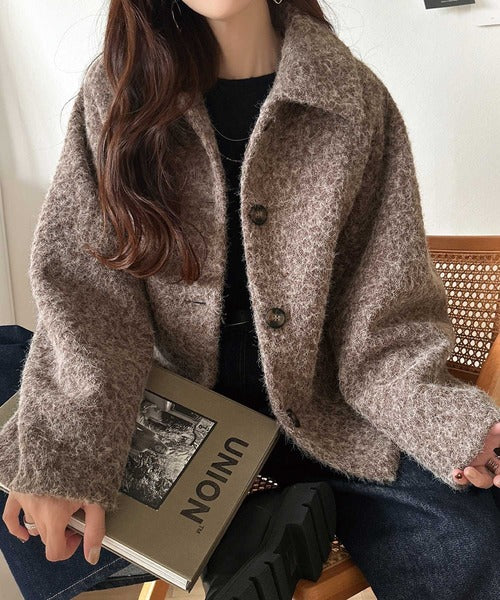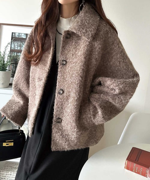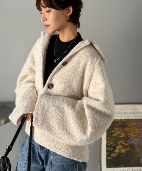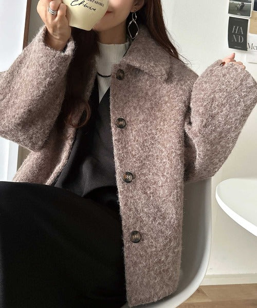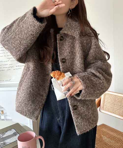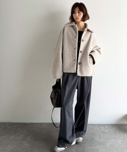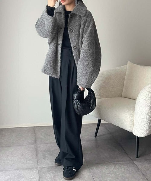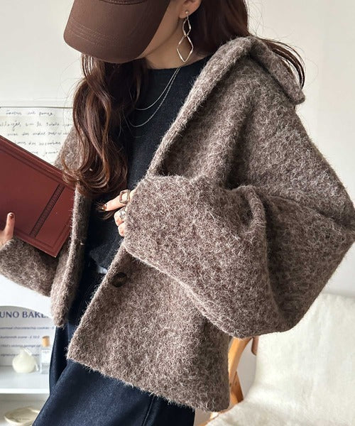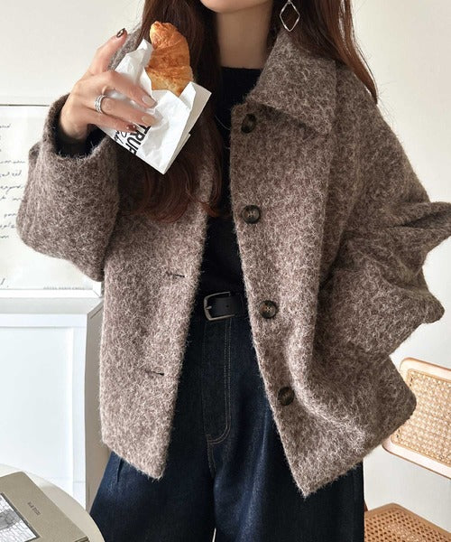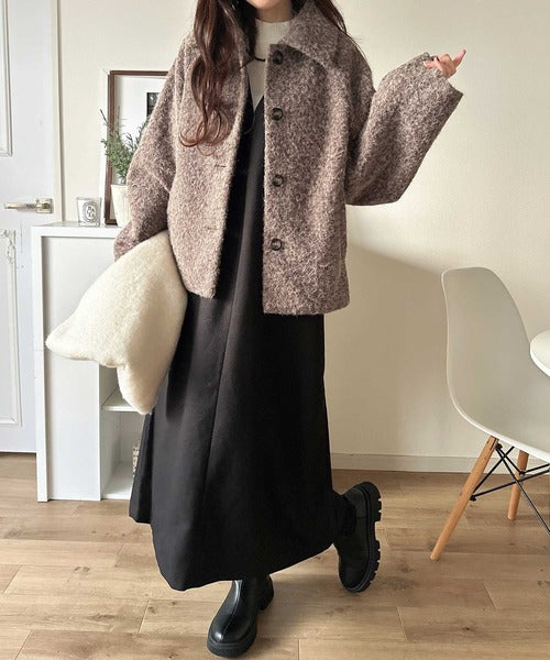 ベーシックアウターを、素材感で大人見えに◎リングシャギーショートコクーンシルエットジャケット ce1240096