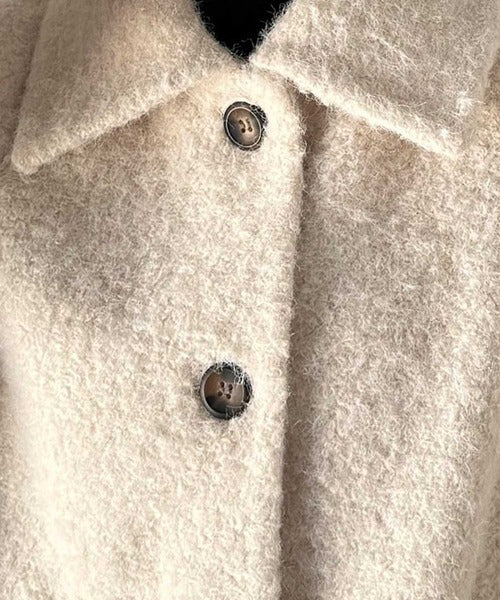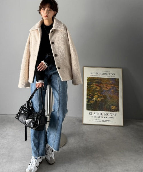 暖かく存在感のあるフェイクリングウールシャギー素材を採用した、秋冬に最適な一着◎
