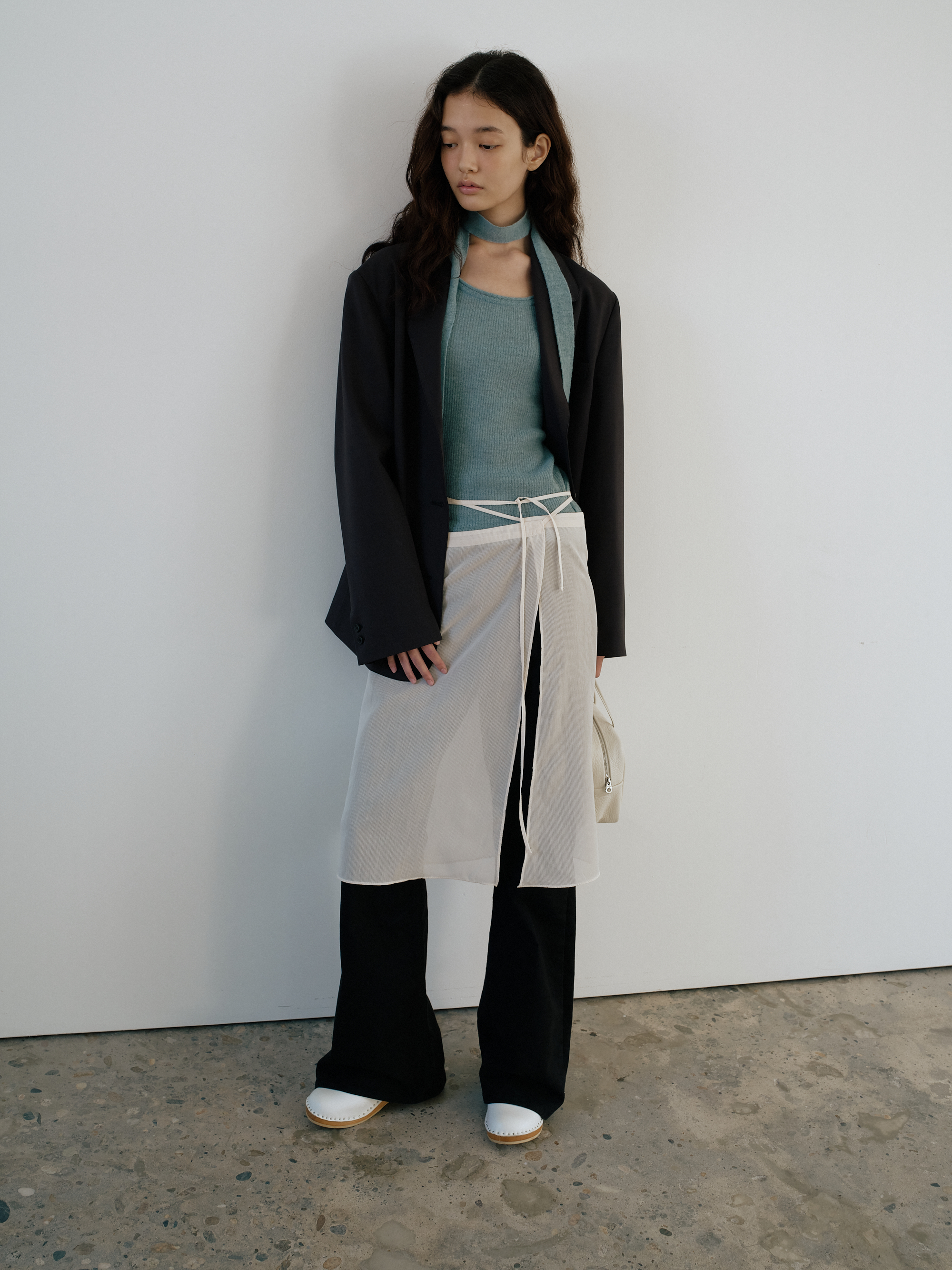 Sheer layered wrap skirt_2colors