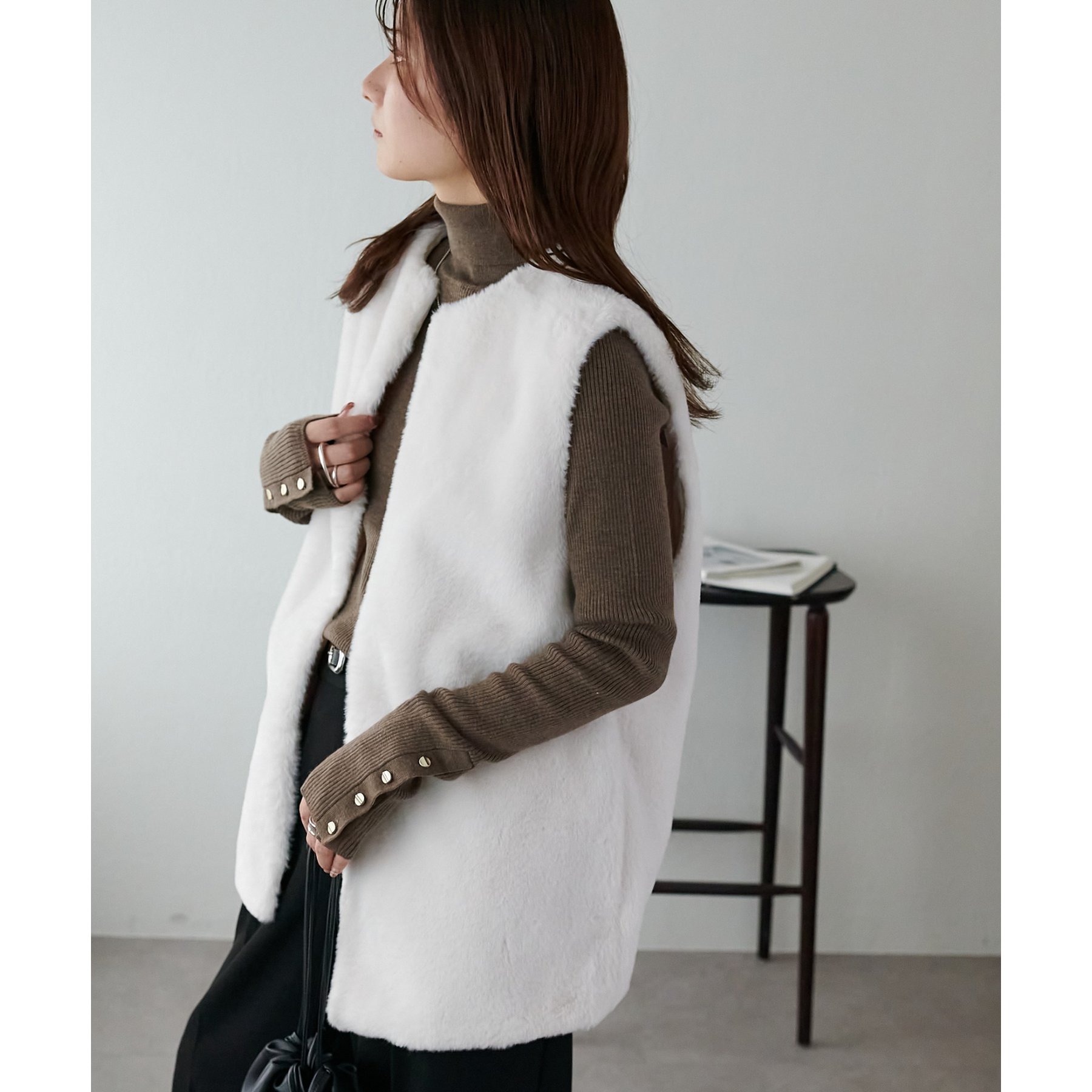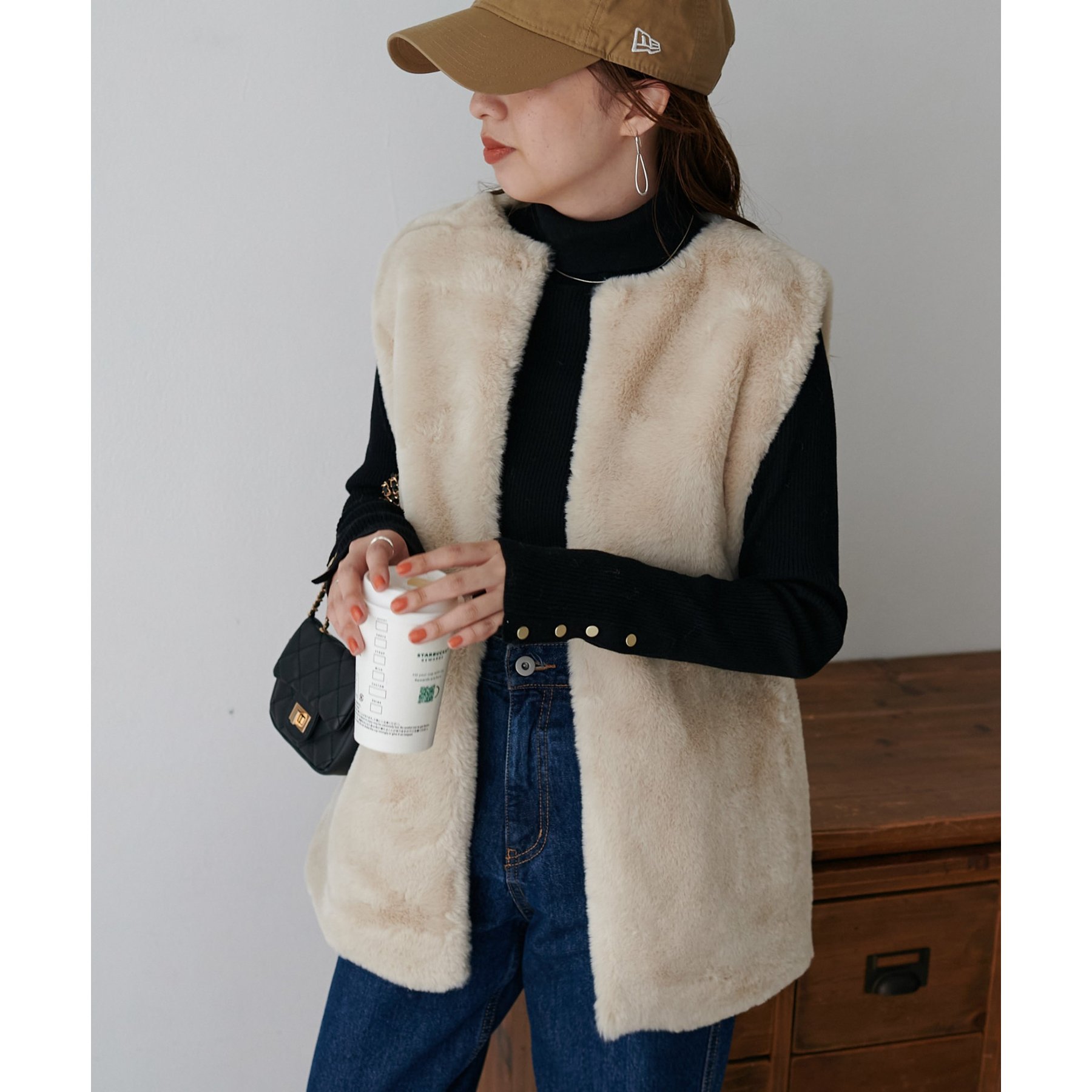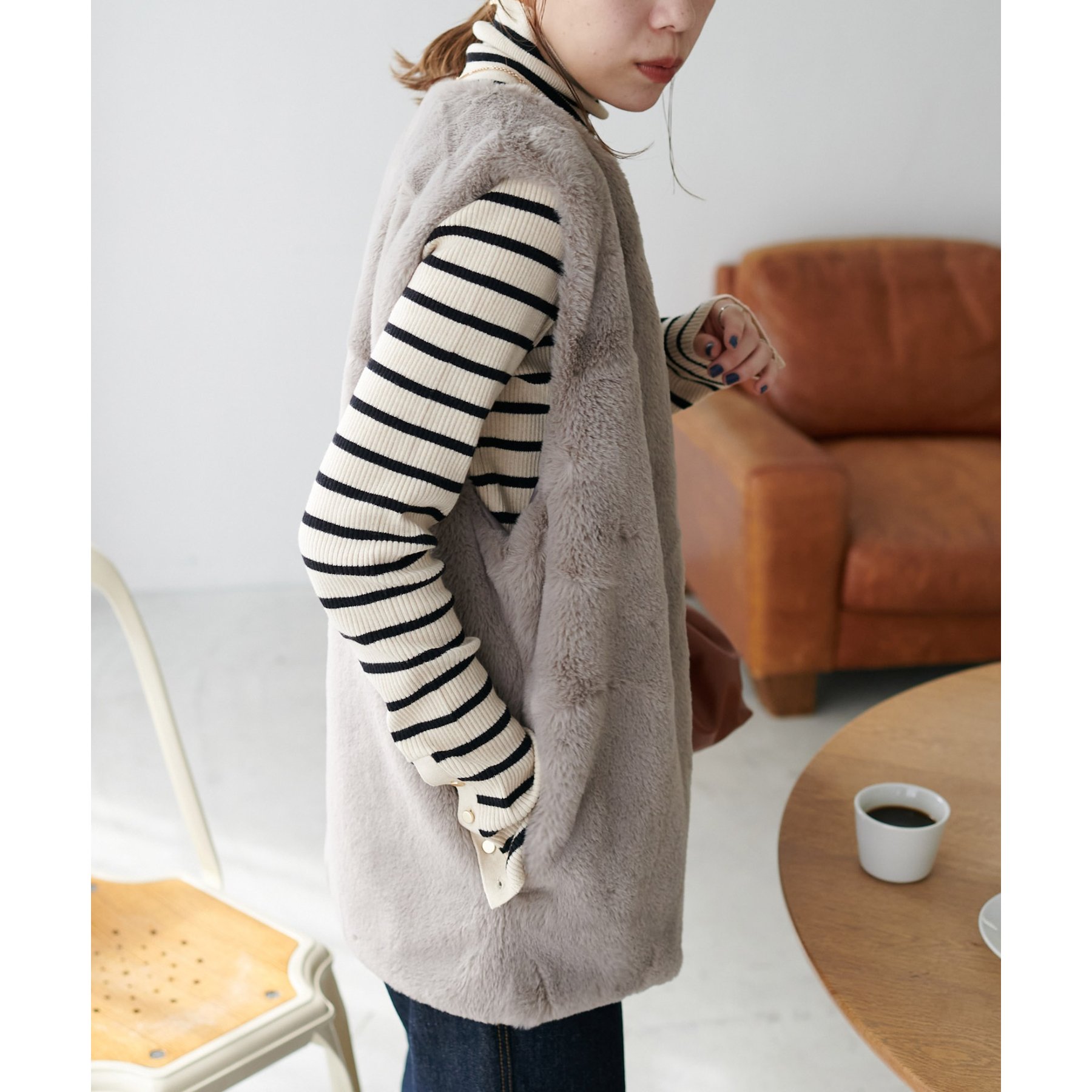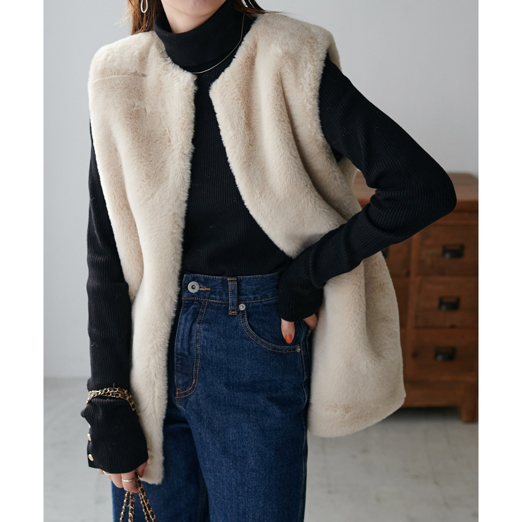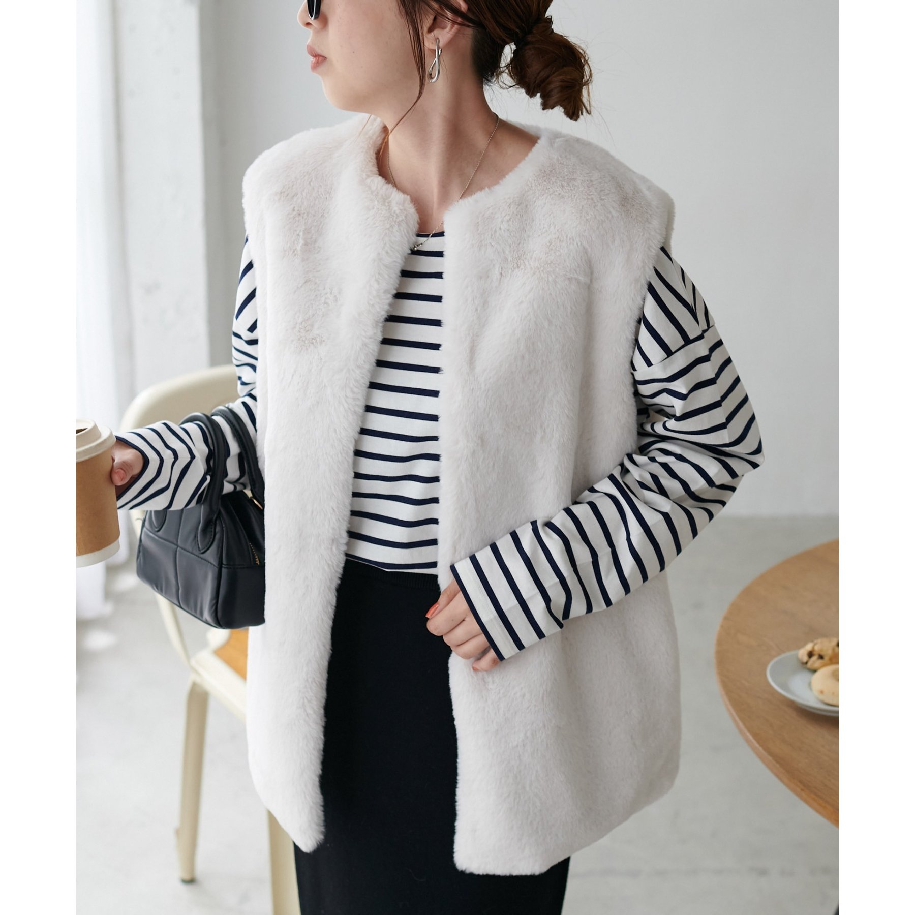 トレンドのレイヤードスタイルが叶うフェイクファーベスト