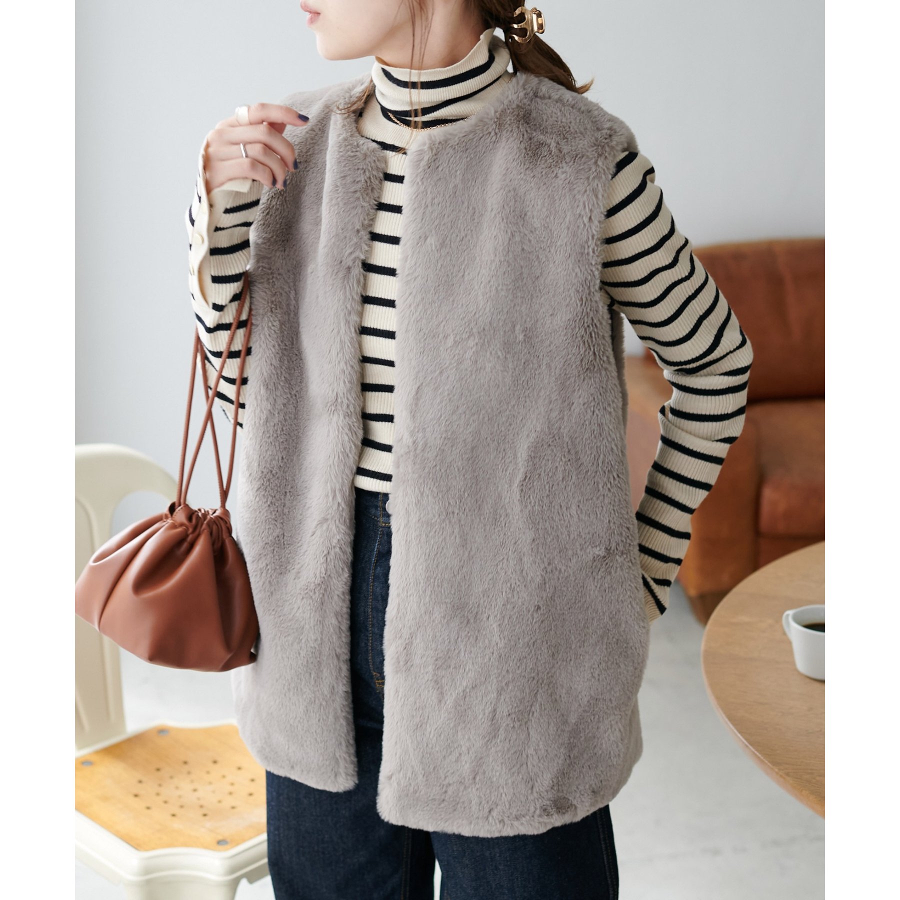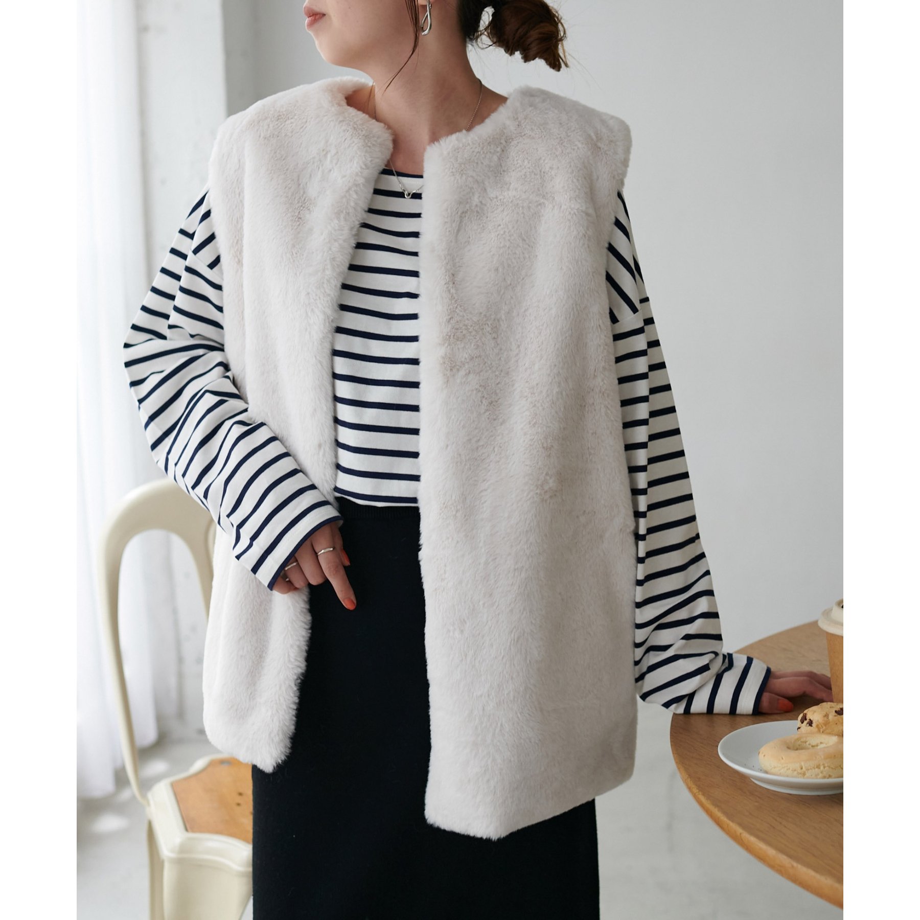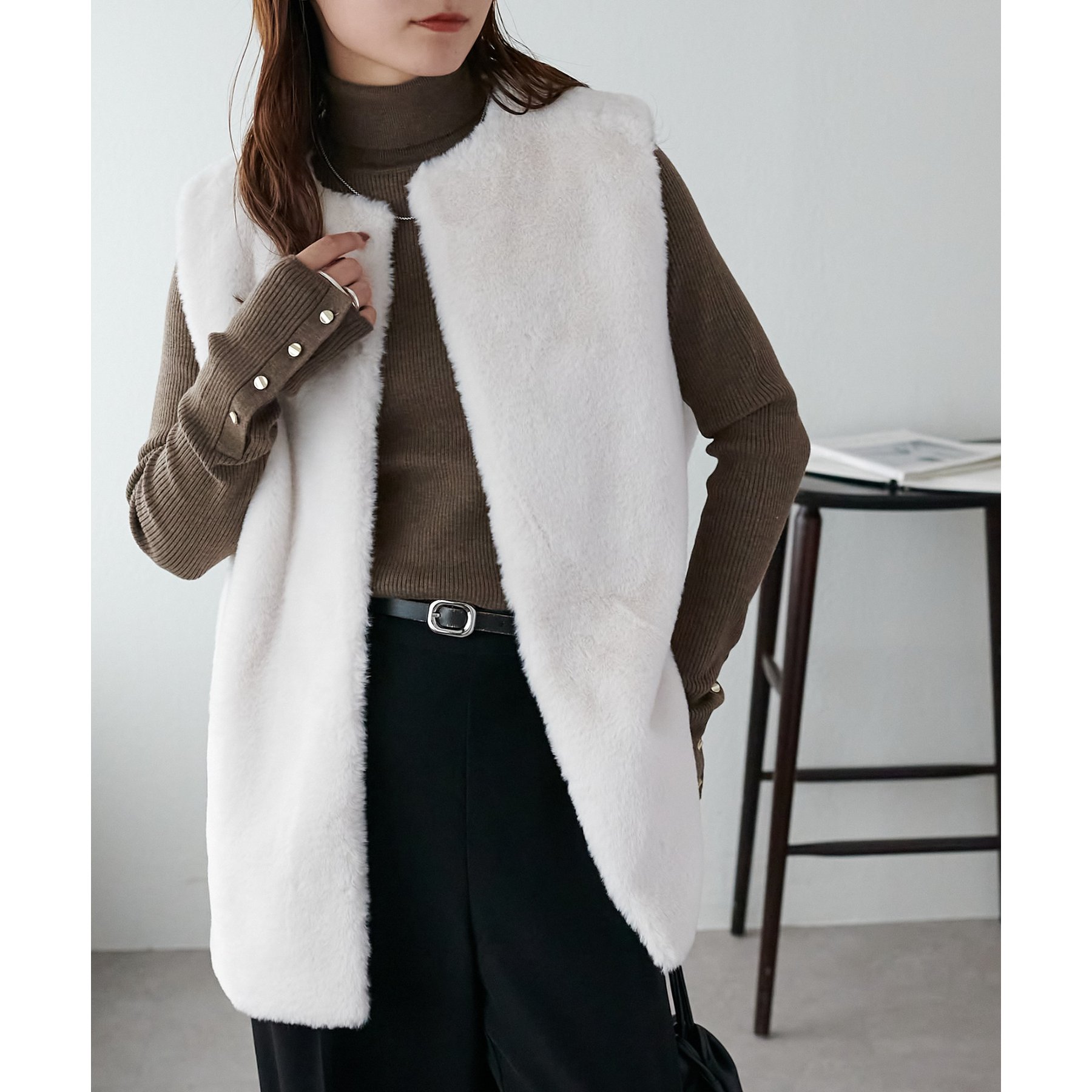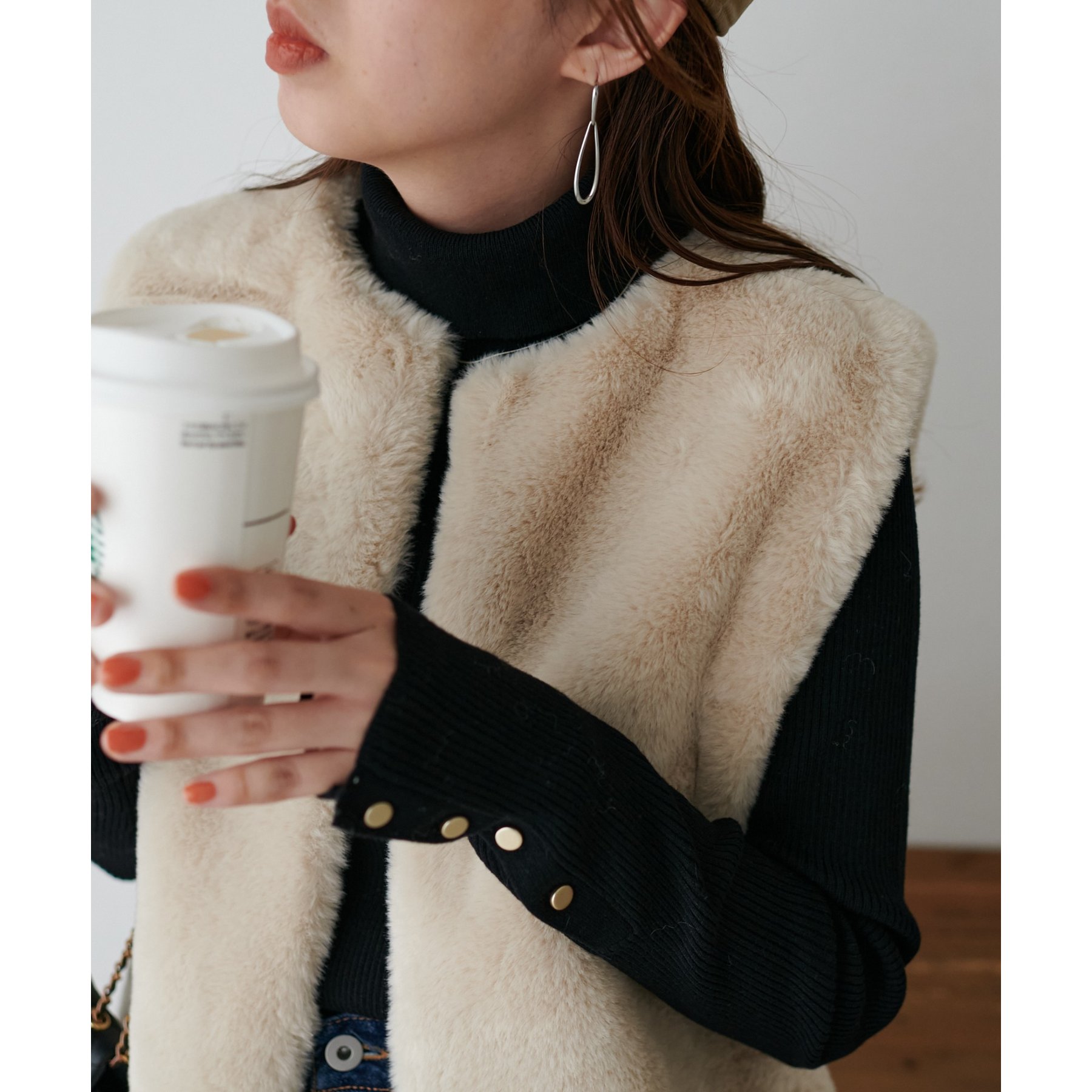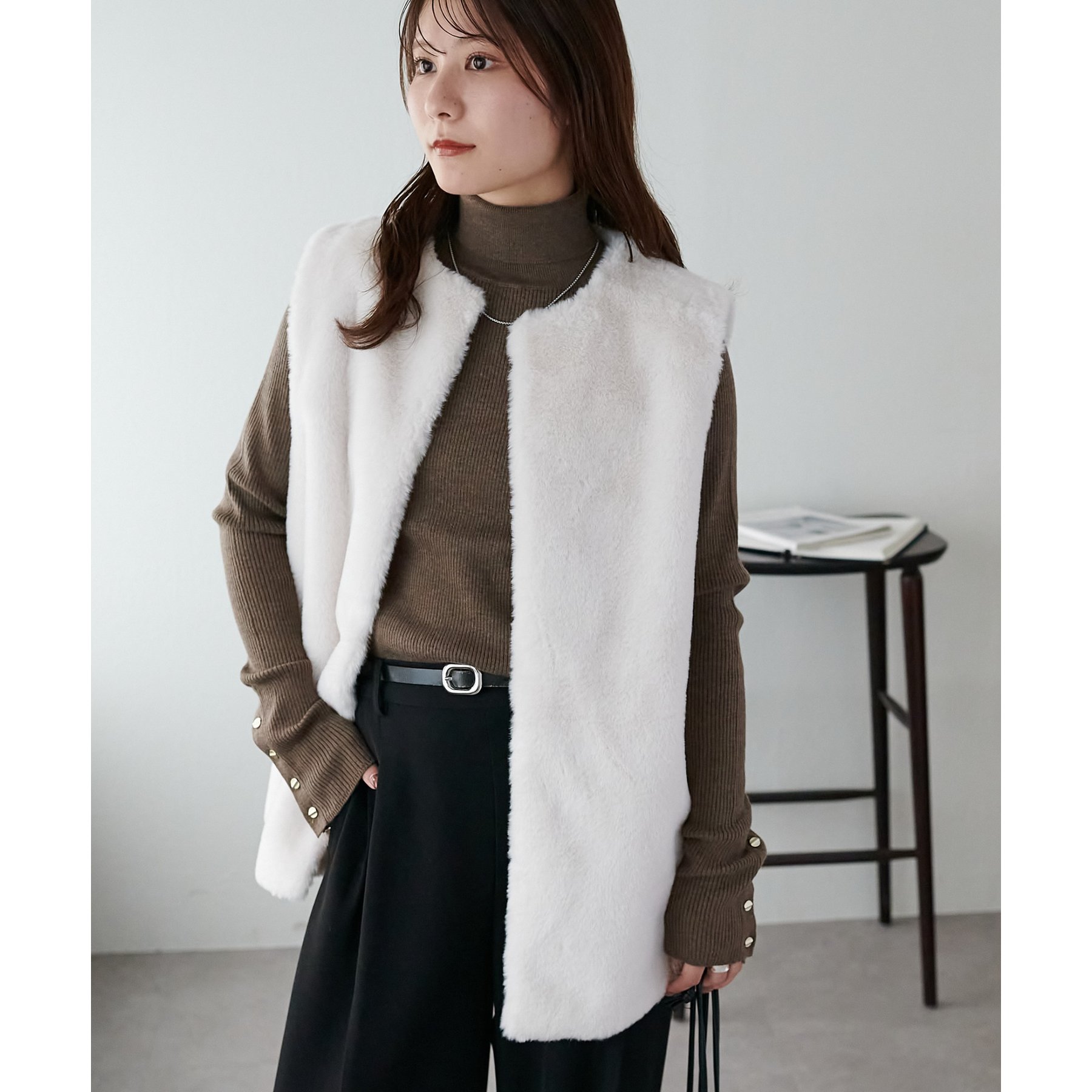 トレンドのレイヤードスタイルが叶うフェイクファーベスト