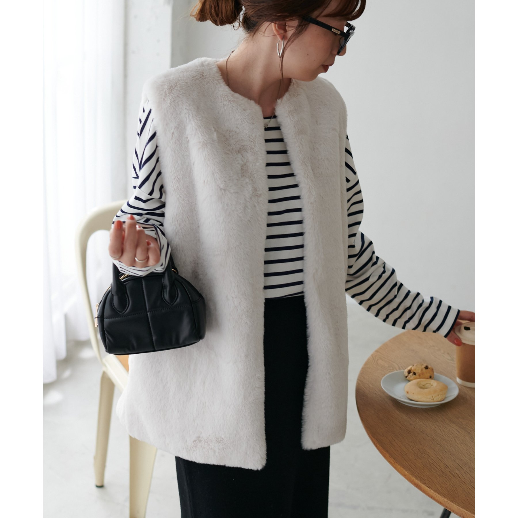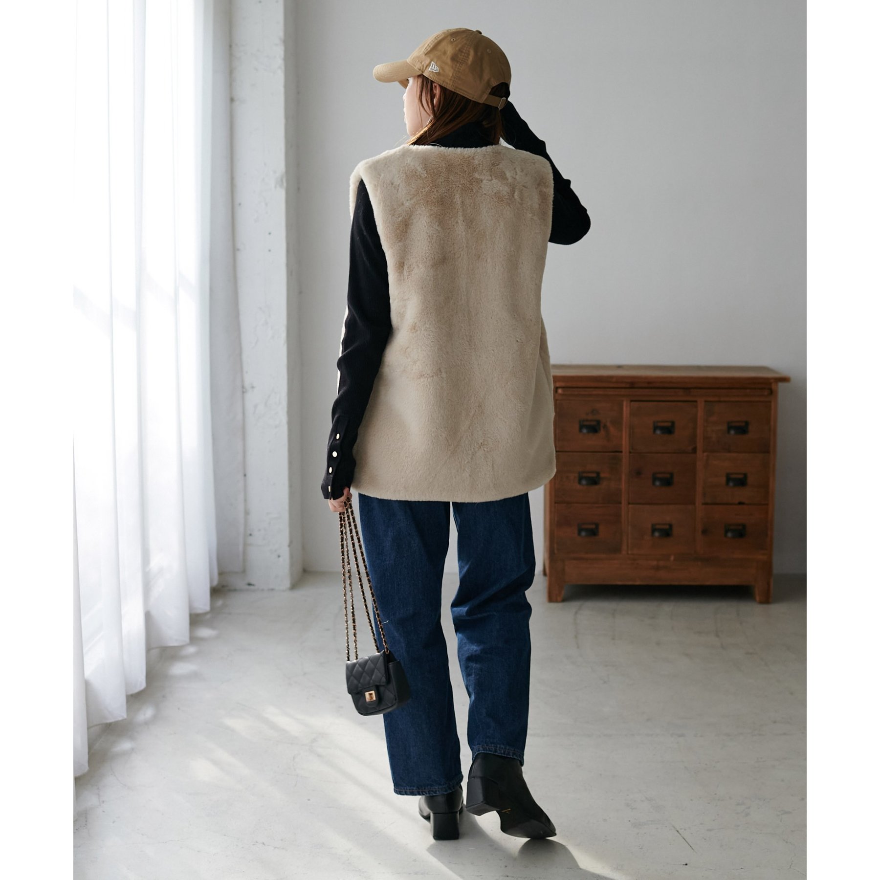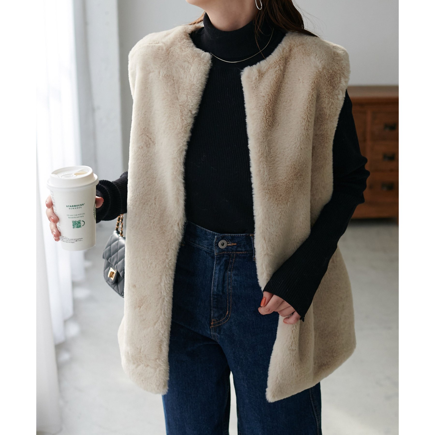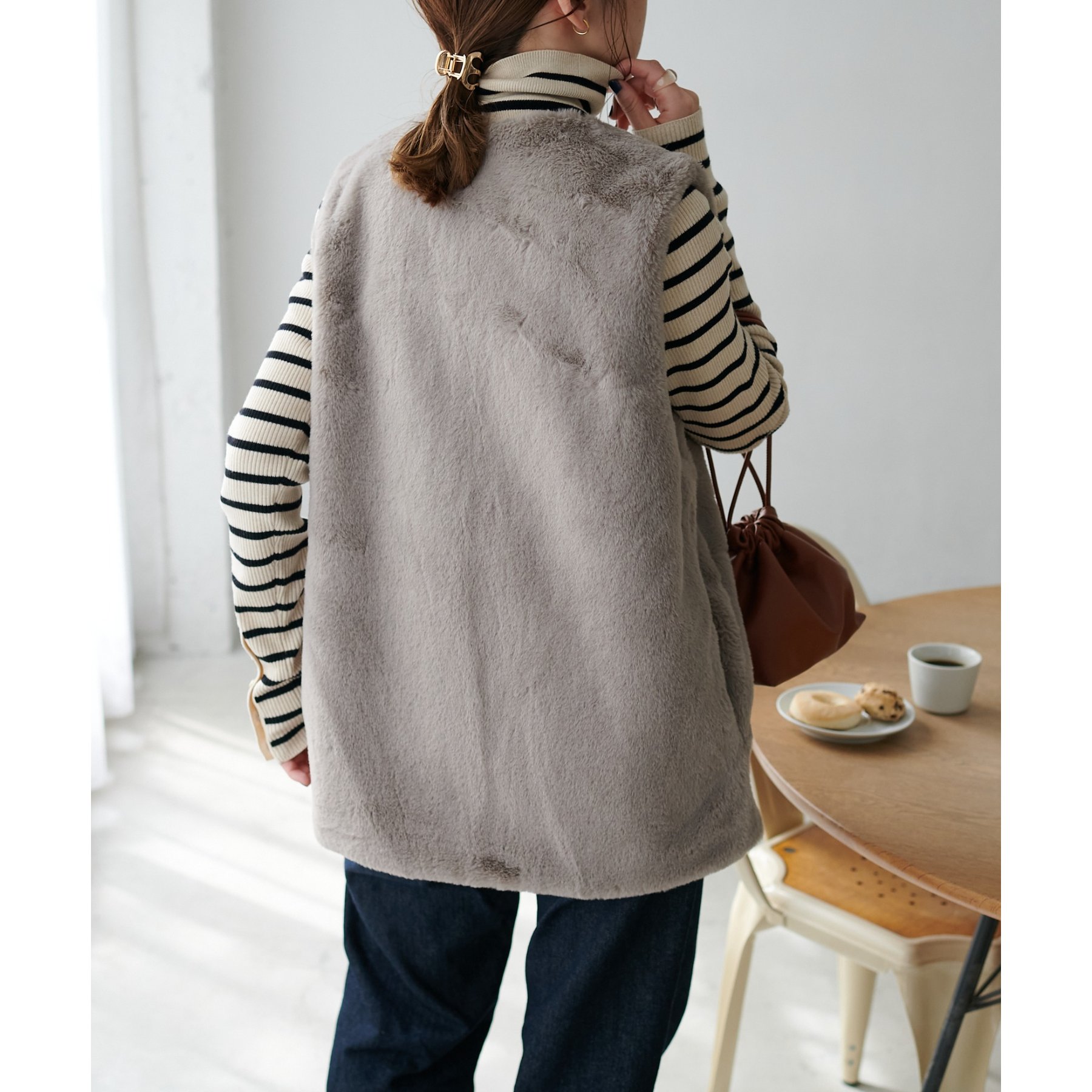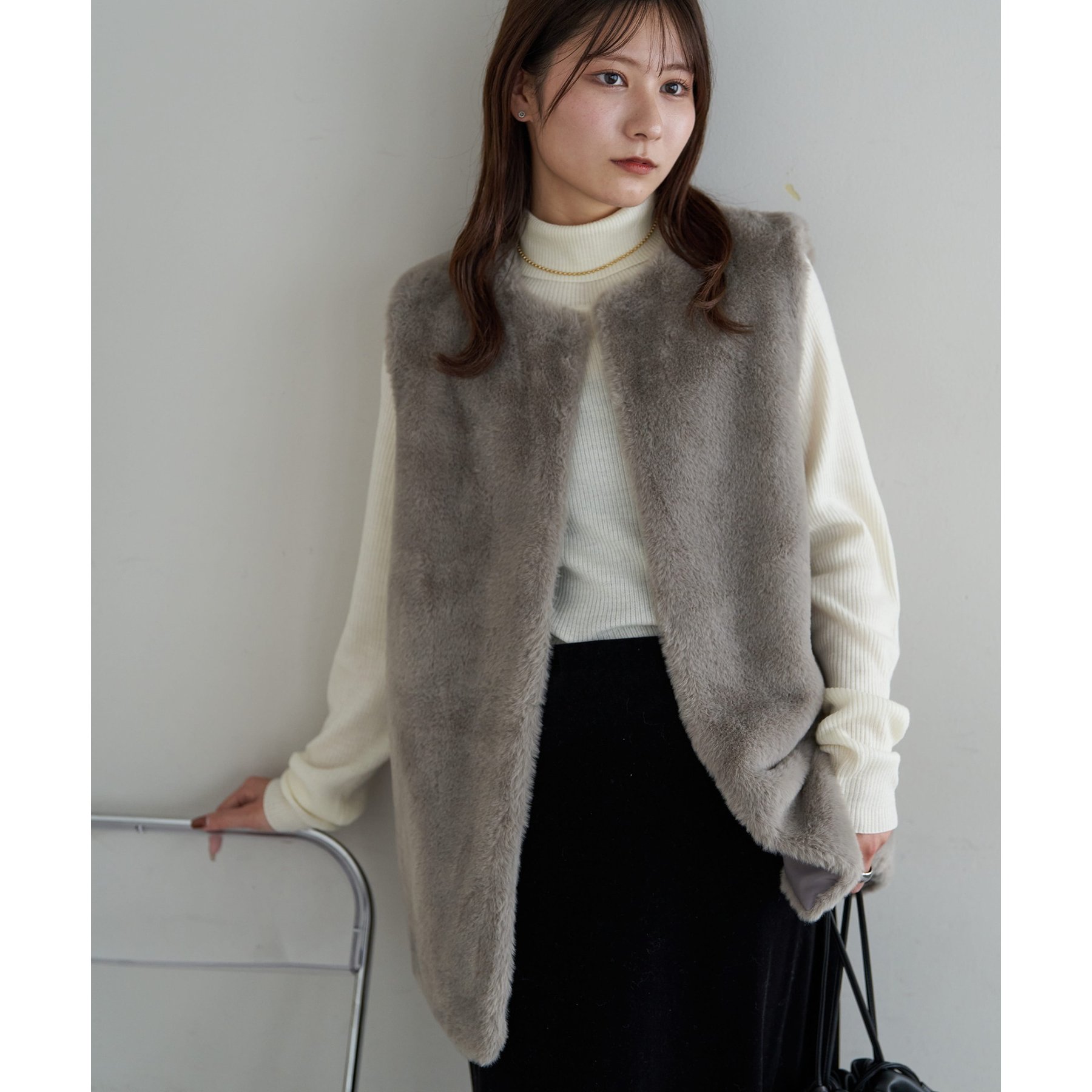 トレンドのレイヤードスタイルが叶うフェイクファーベスト