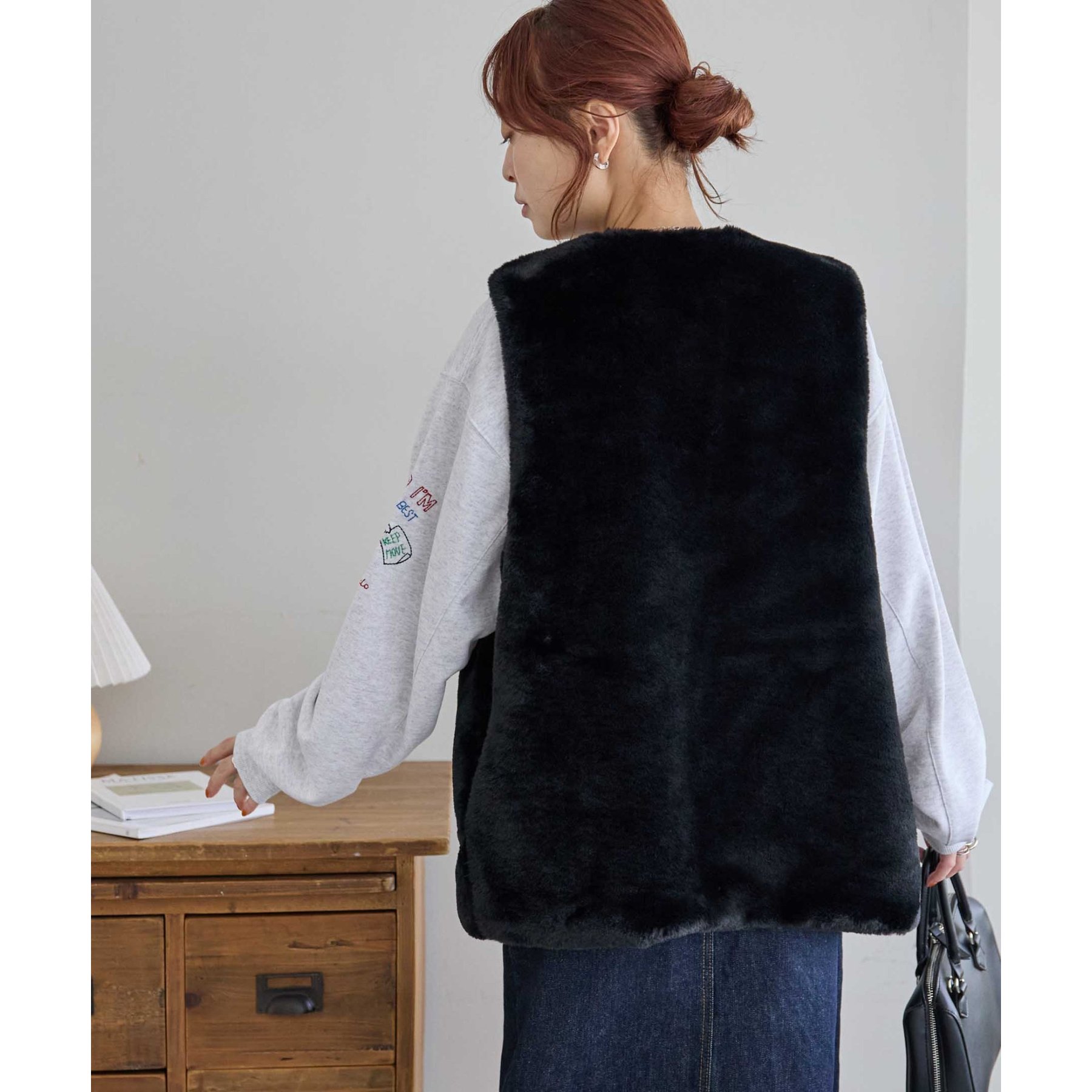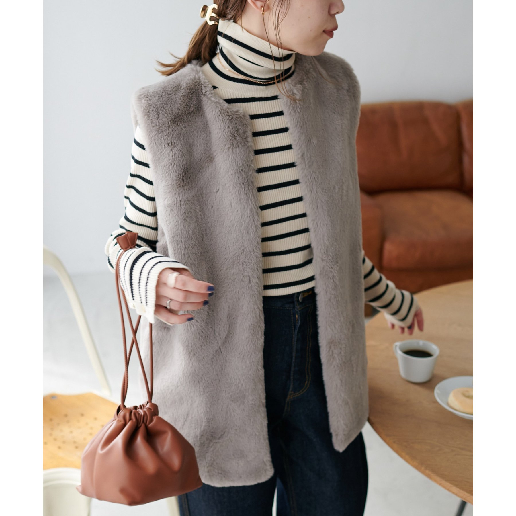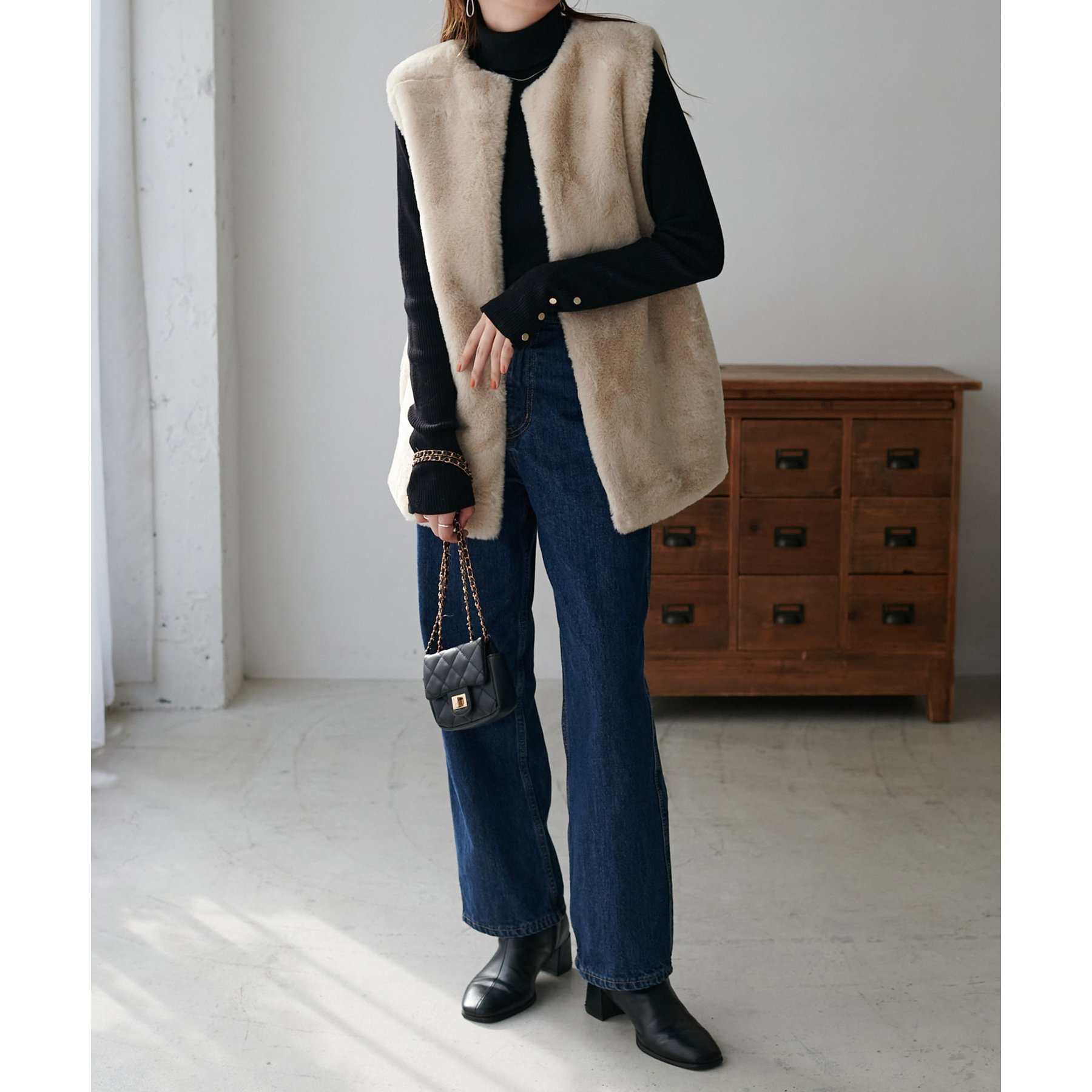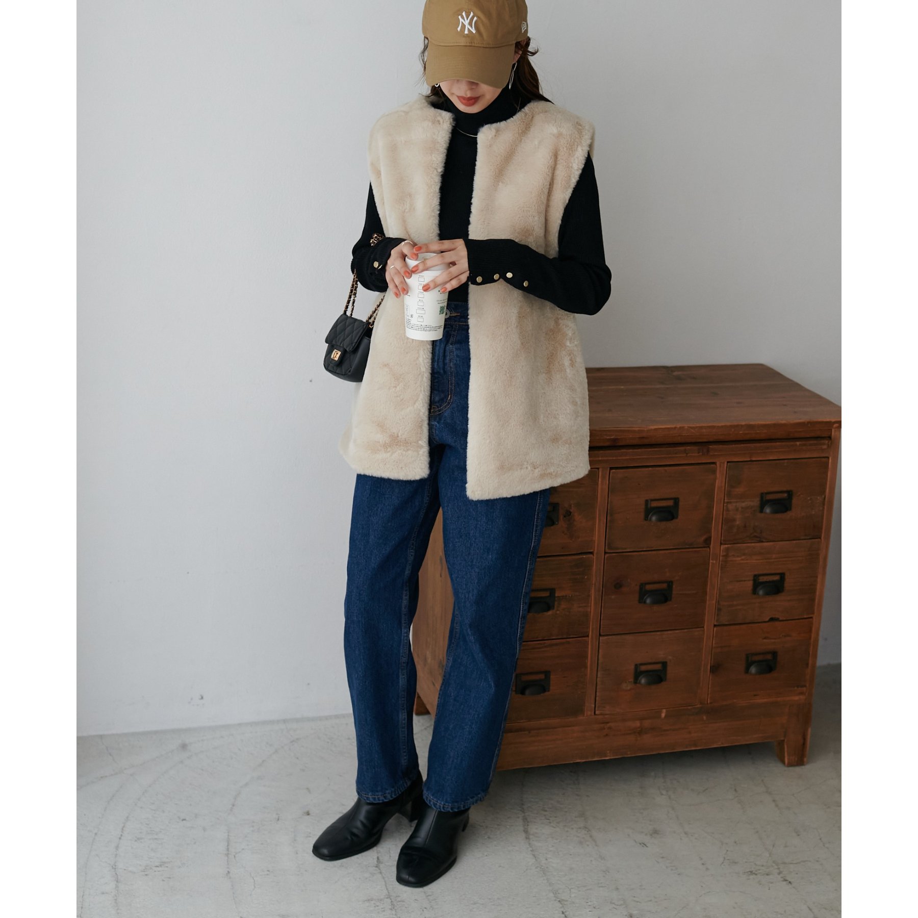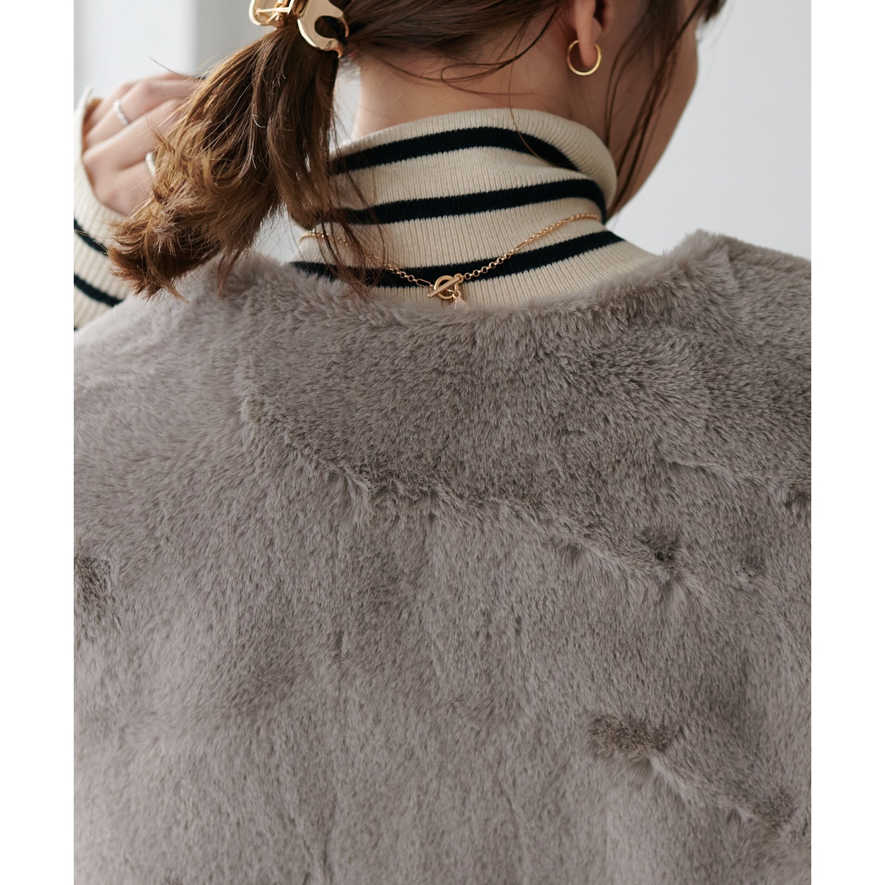 トレンドのレイヤードスタイルが叶うフェイクファーベスト