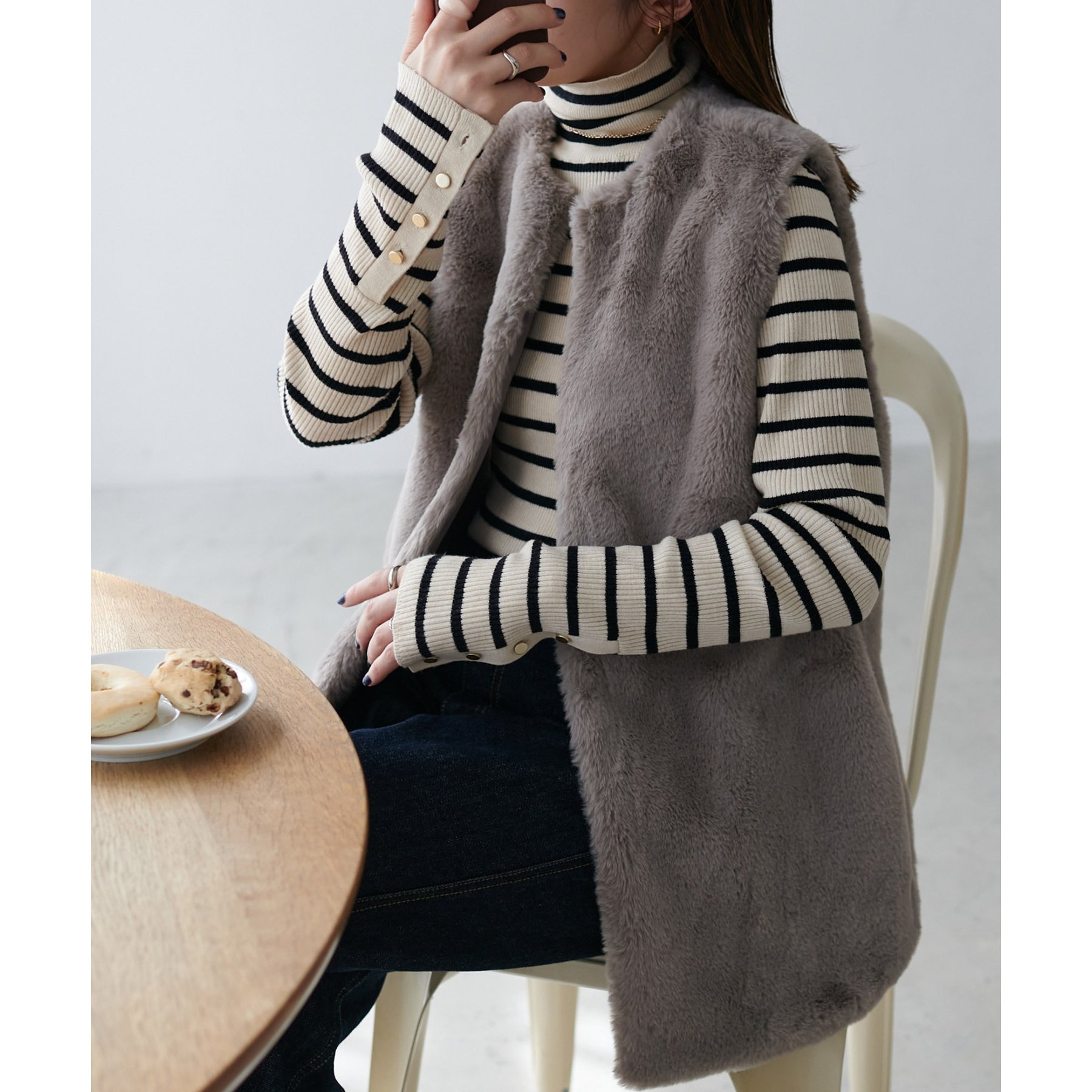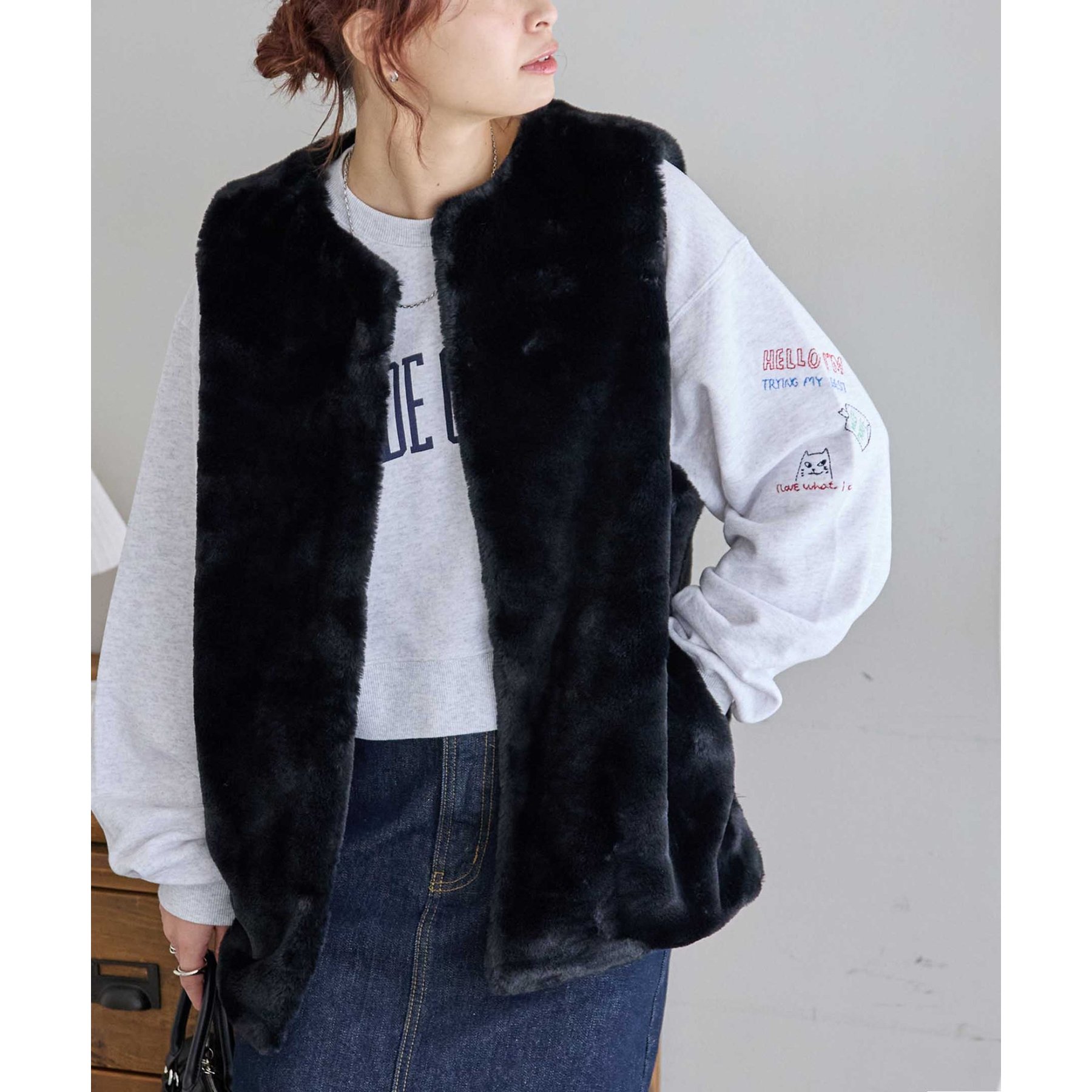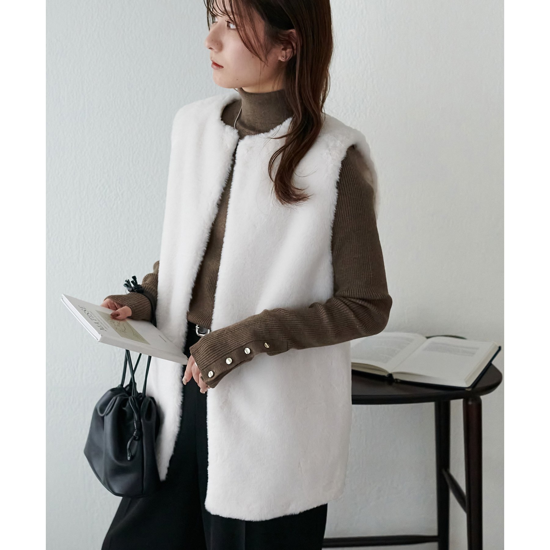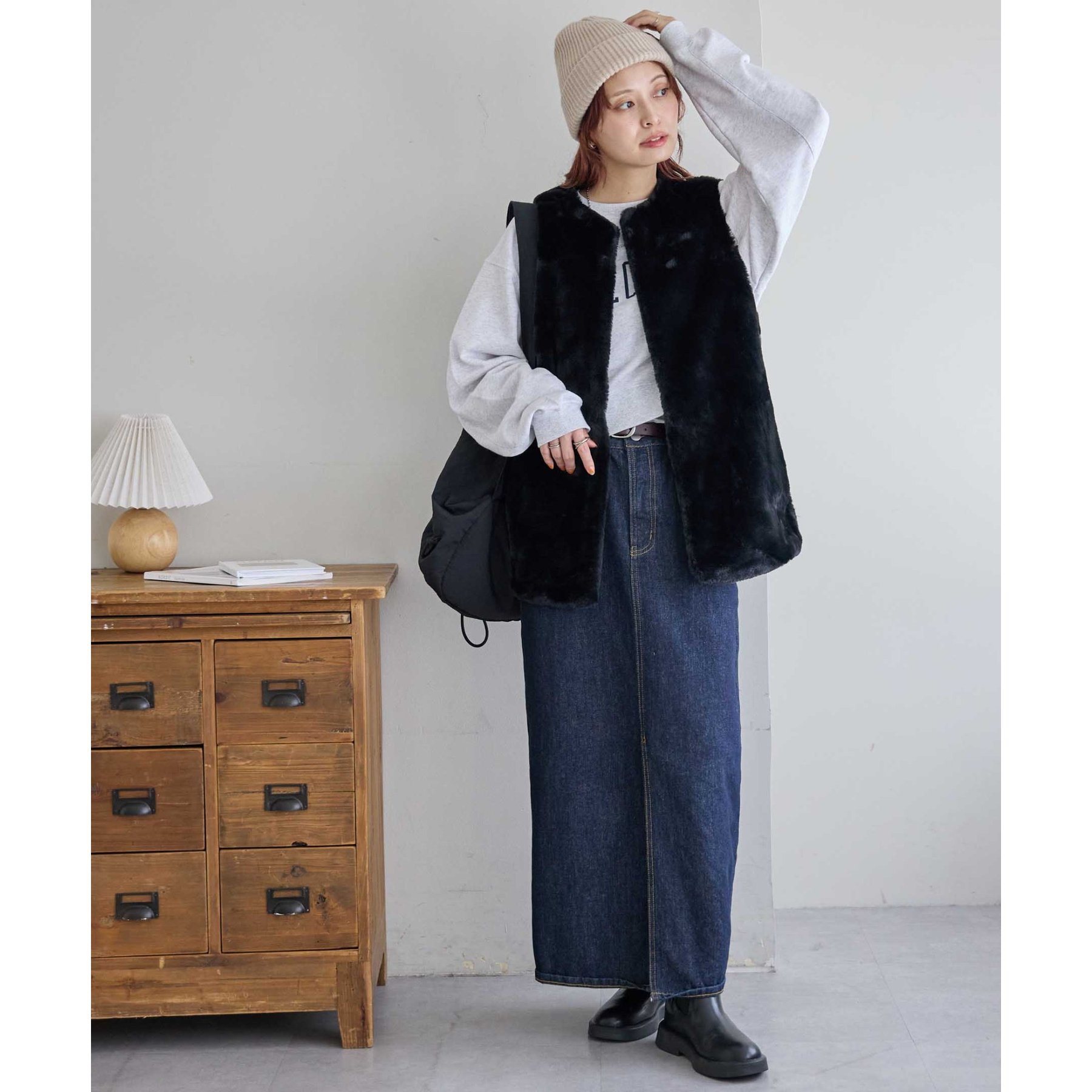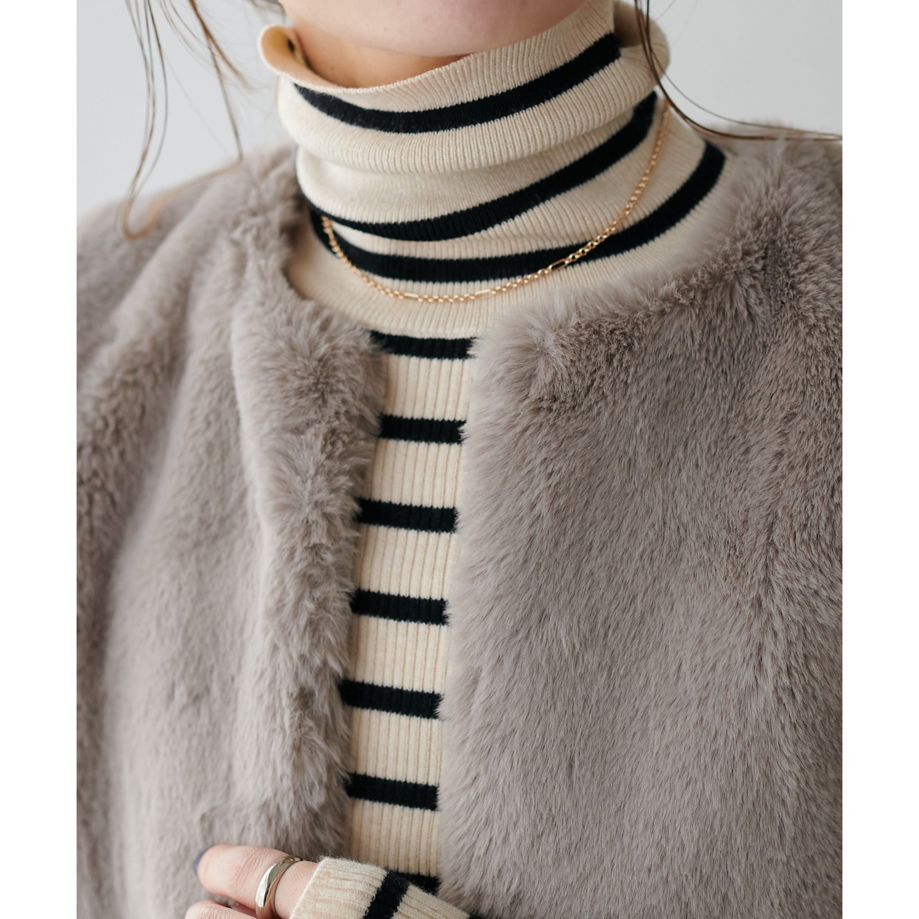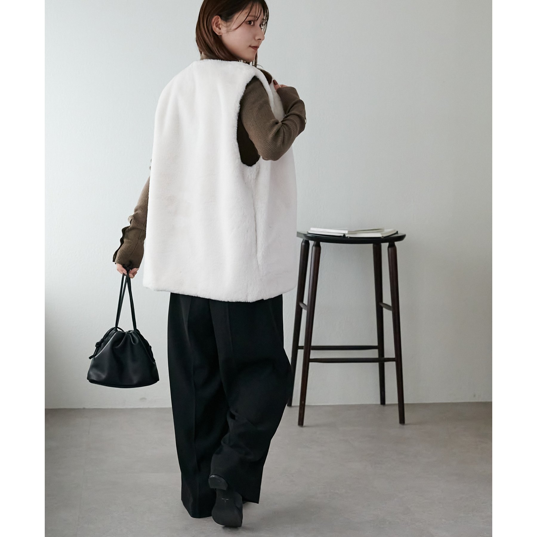 トレンドのレイヤードスタイルが叶うフェイクファーベスト