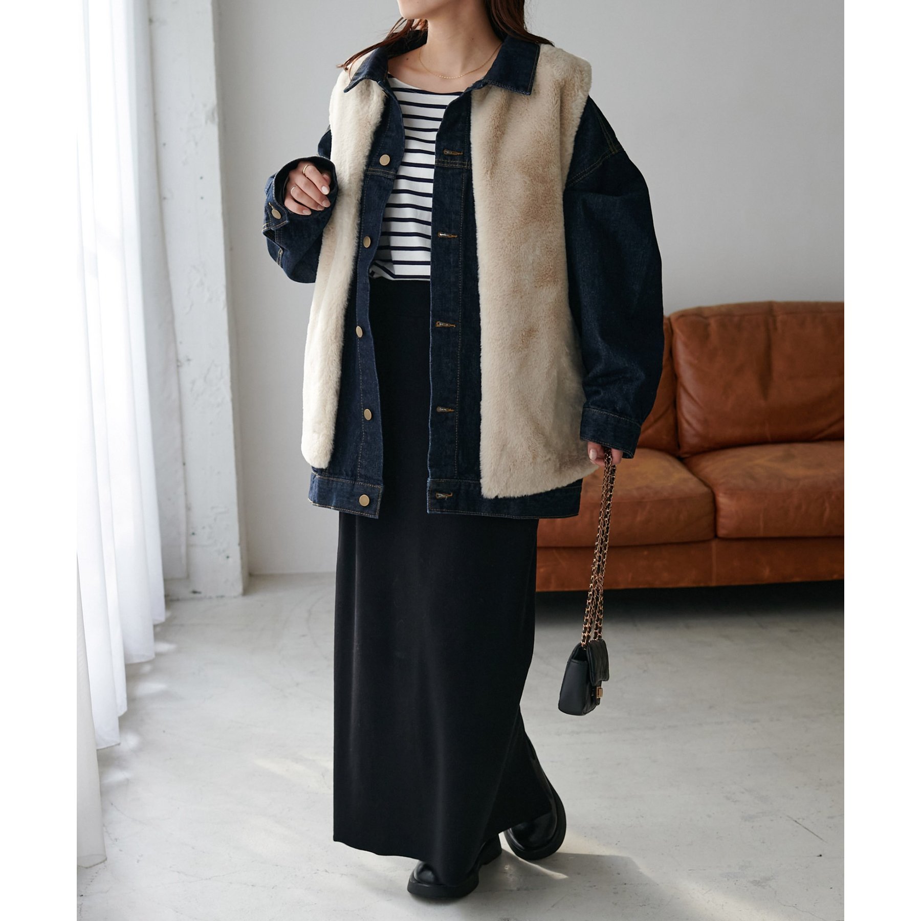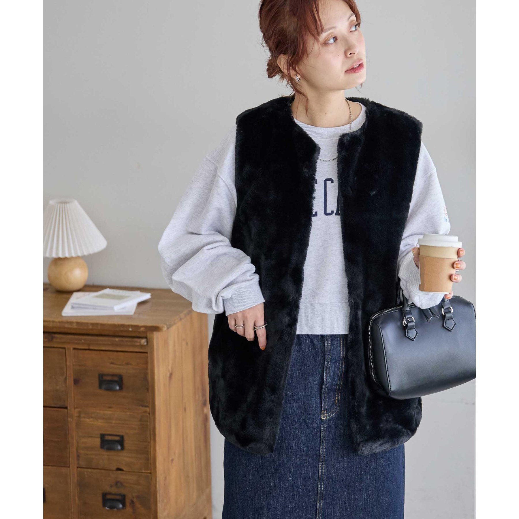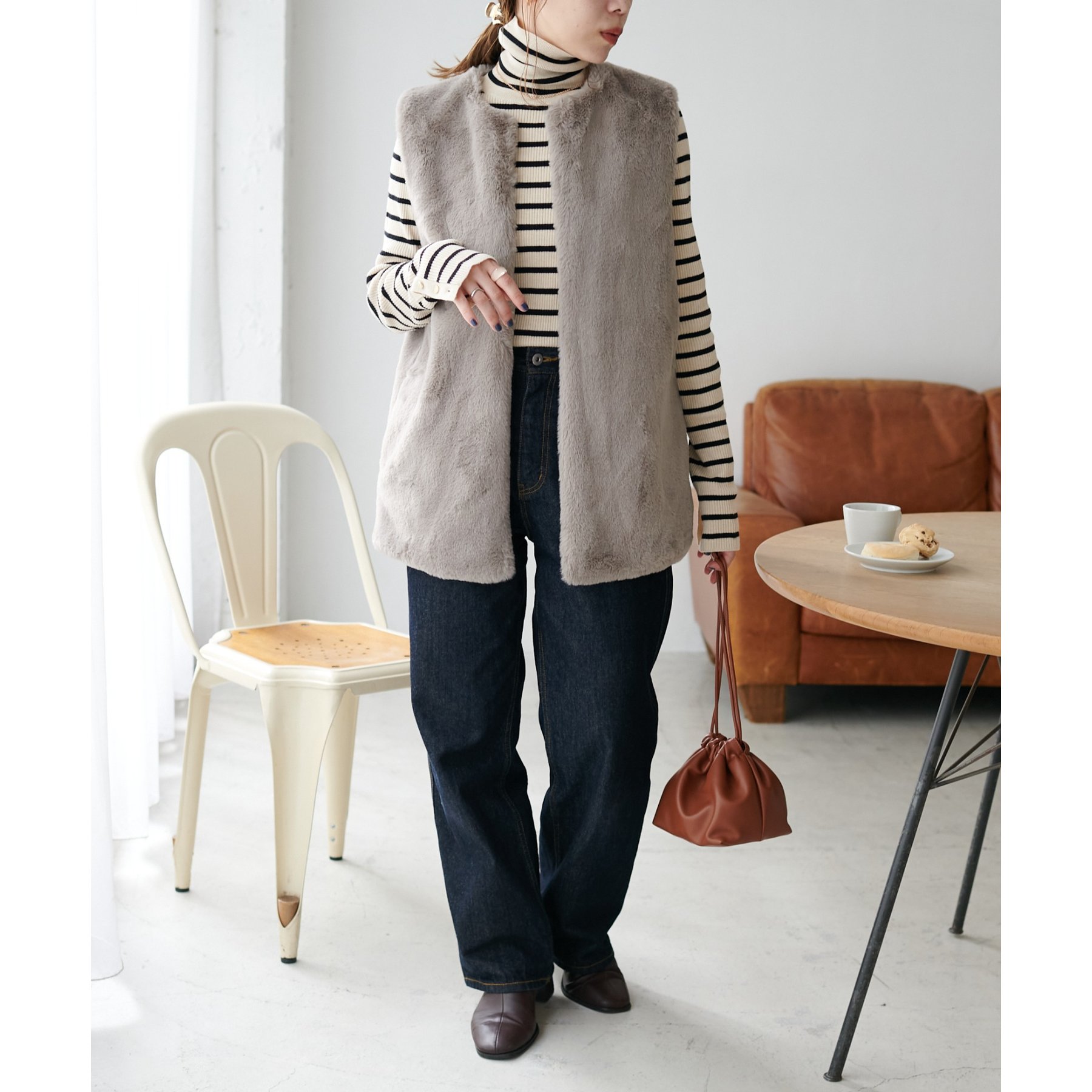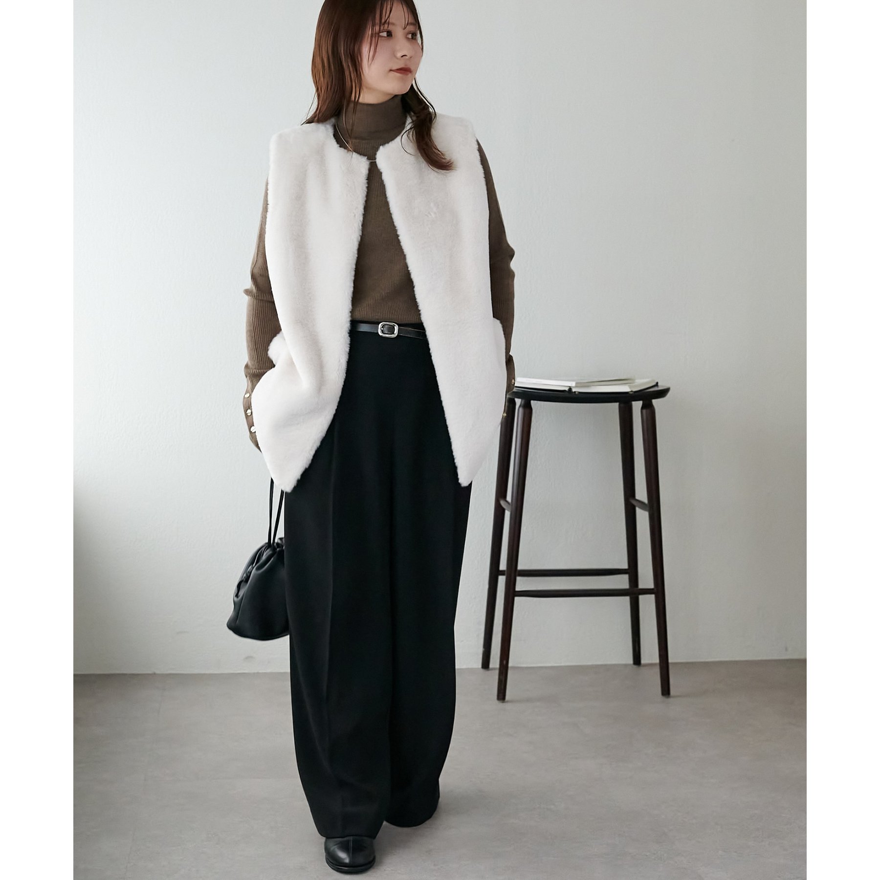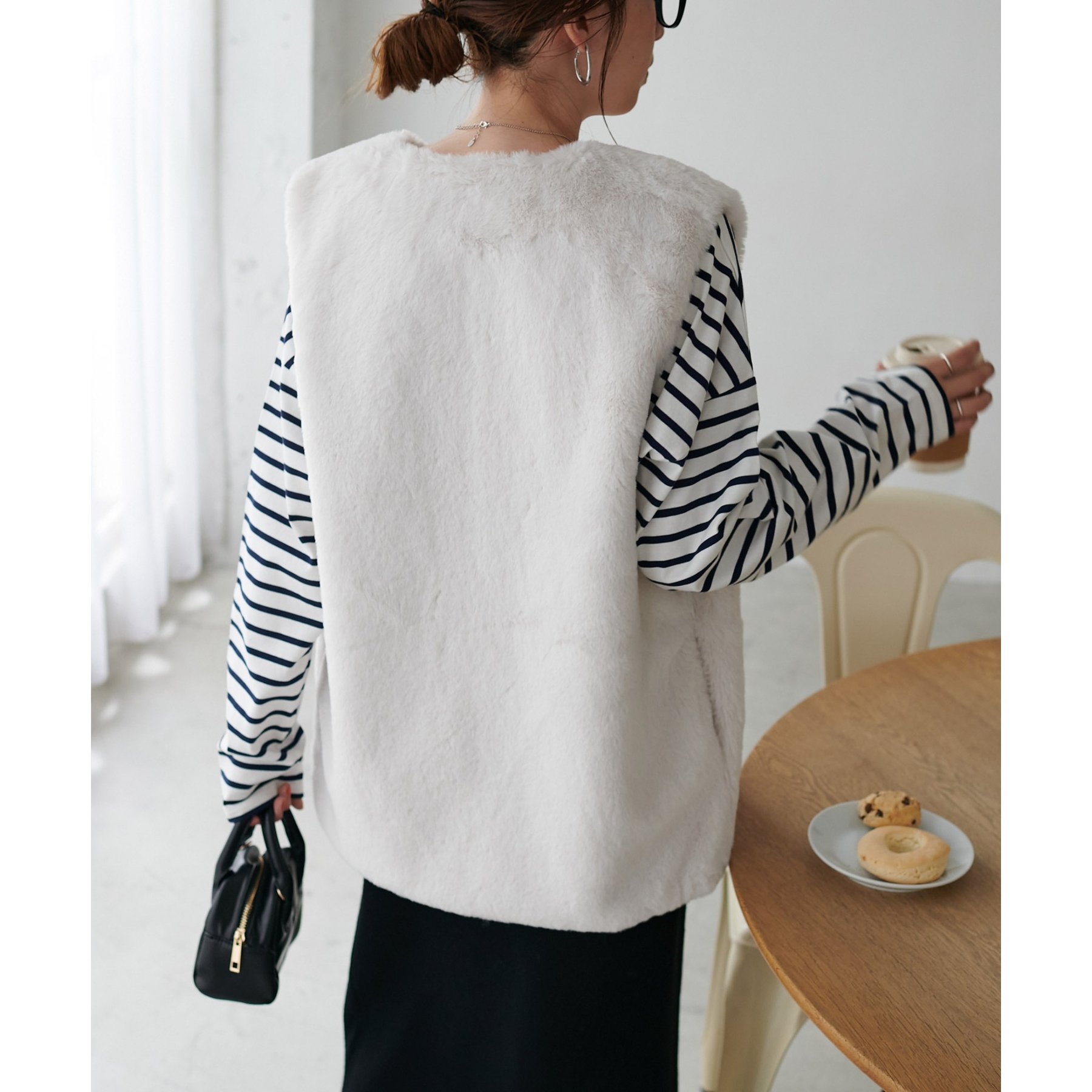 トレンドのレイヤードスタイルが叶うフェイクファーベスト