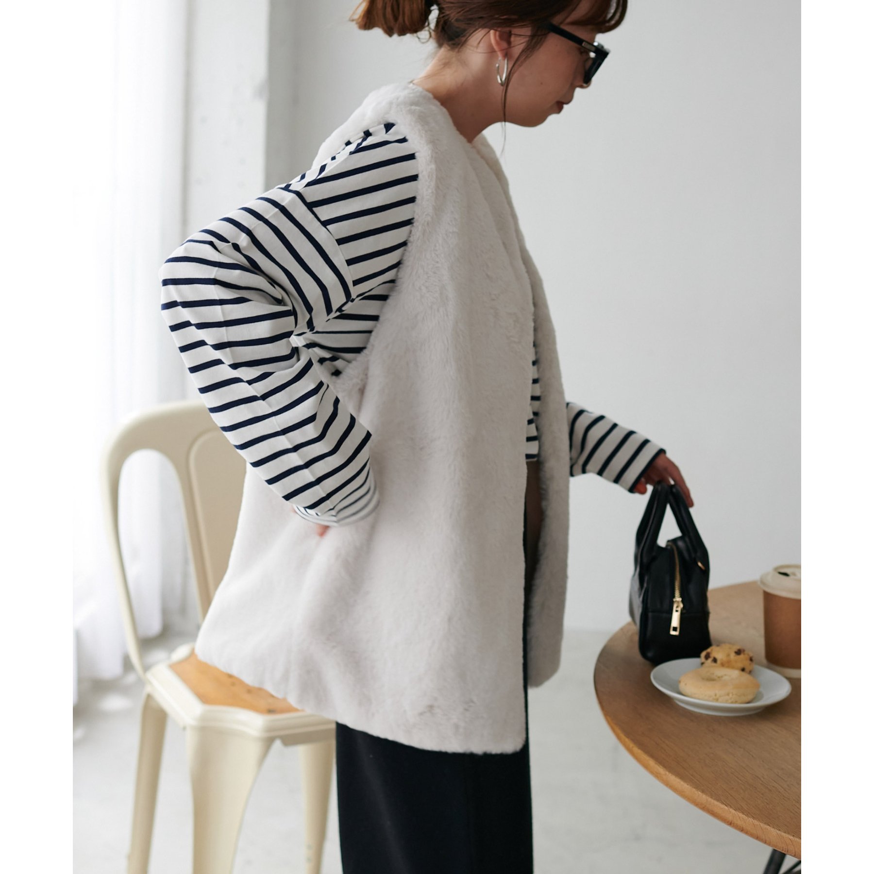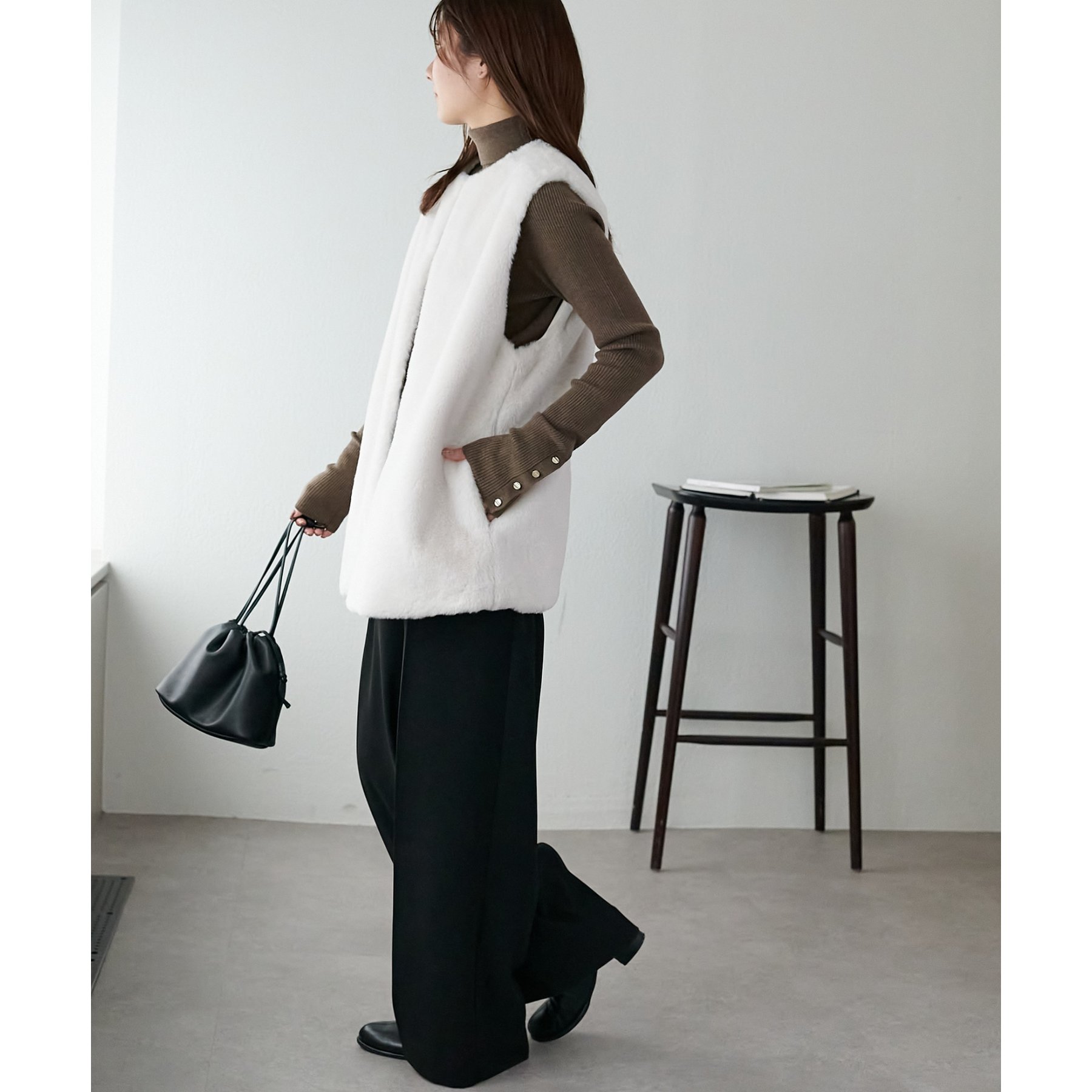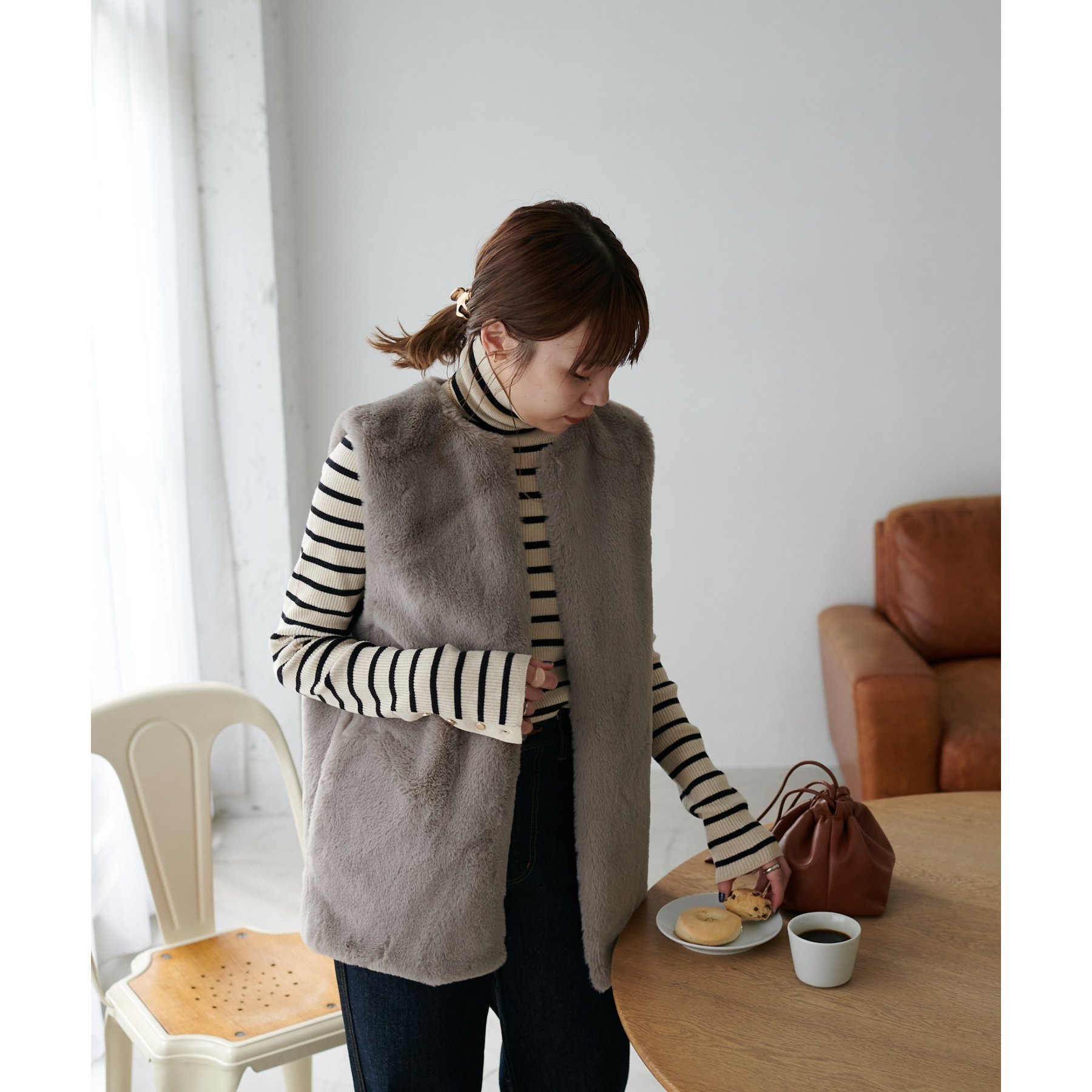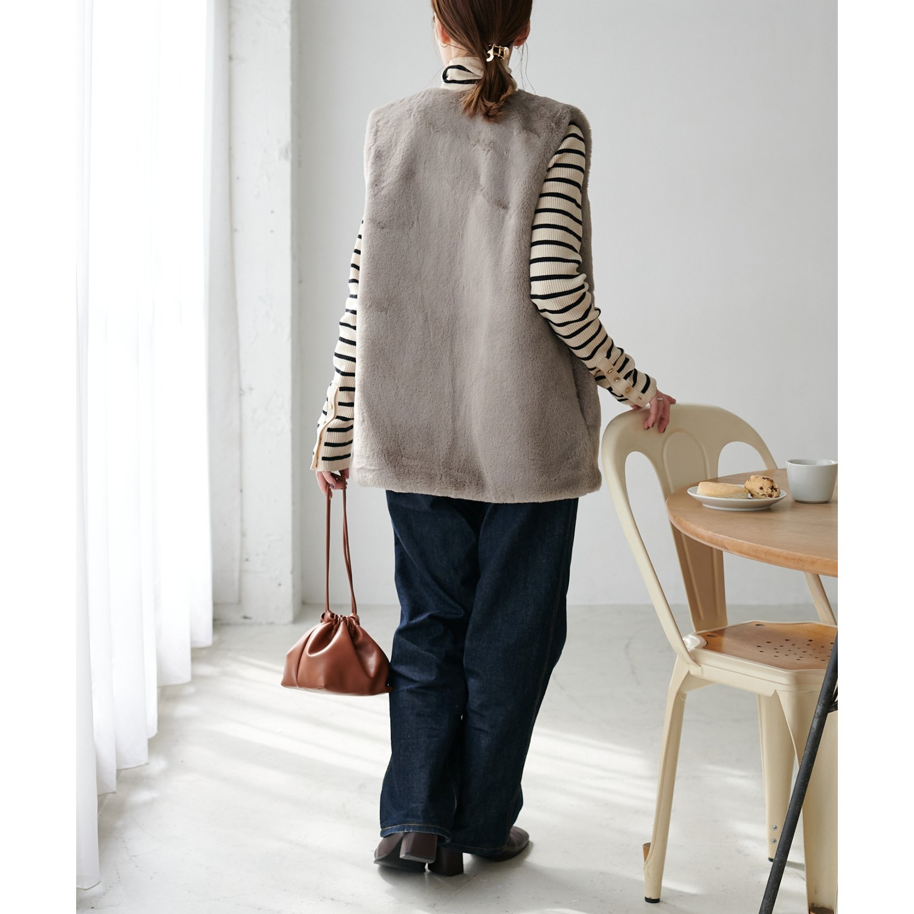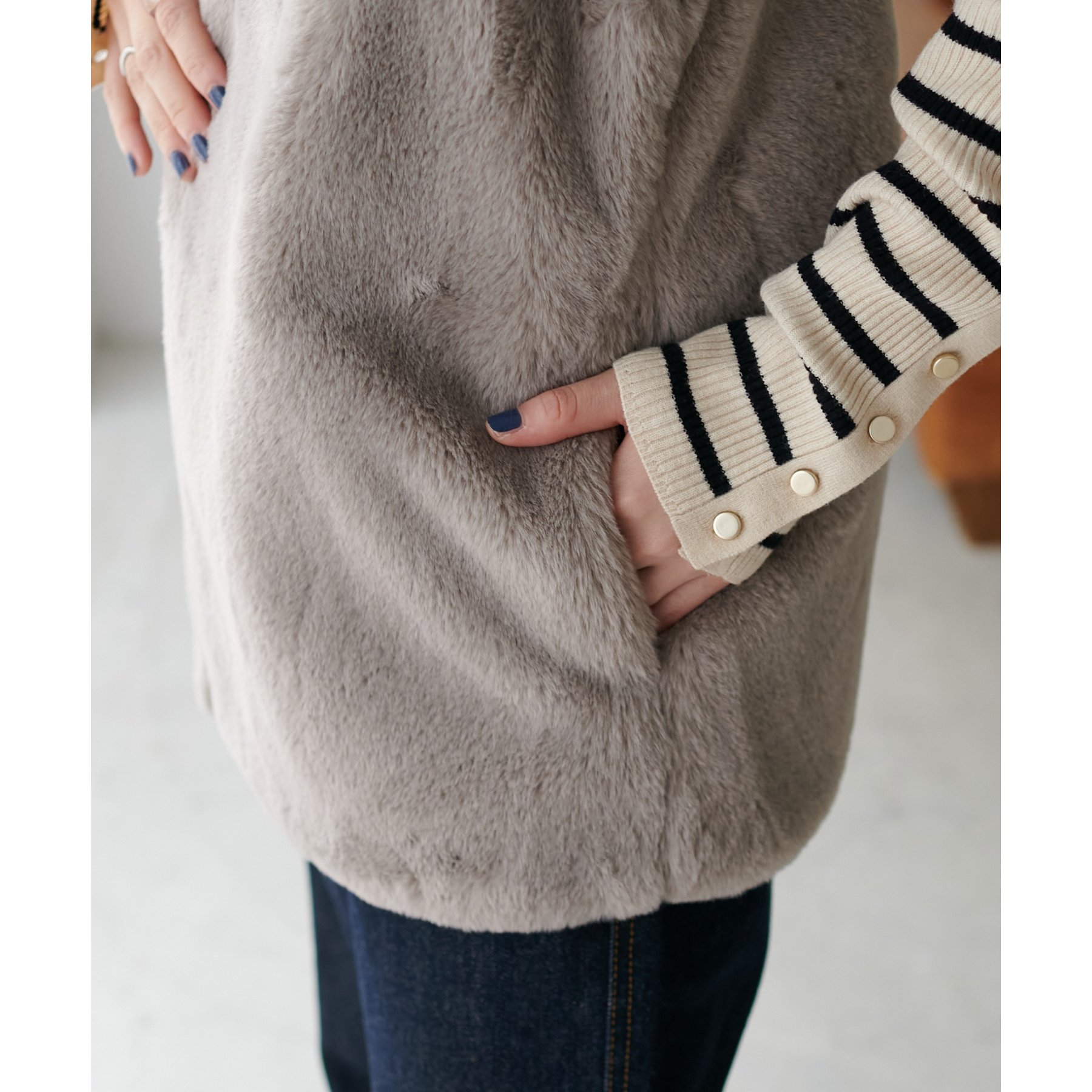トレンドのレイヤードスタイルが叶うフェイクファーベスト