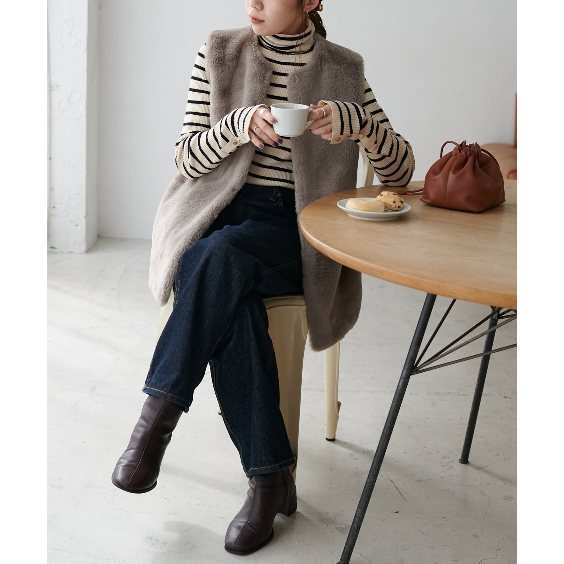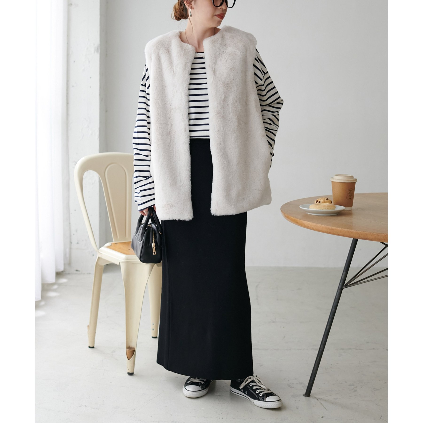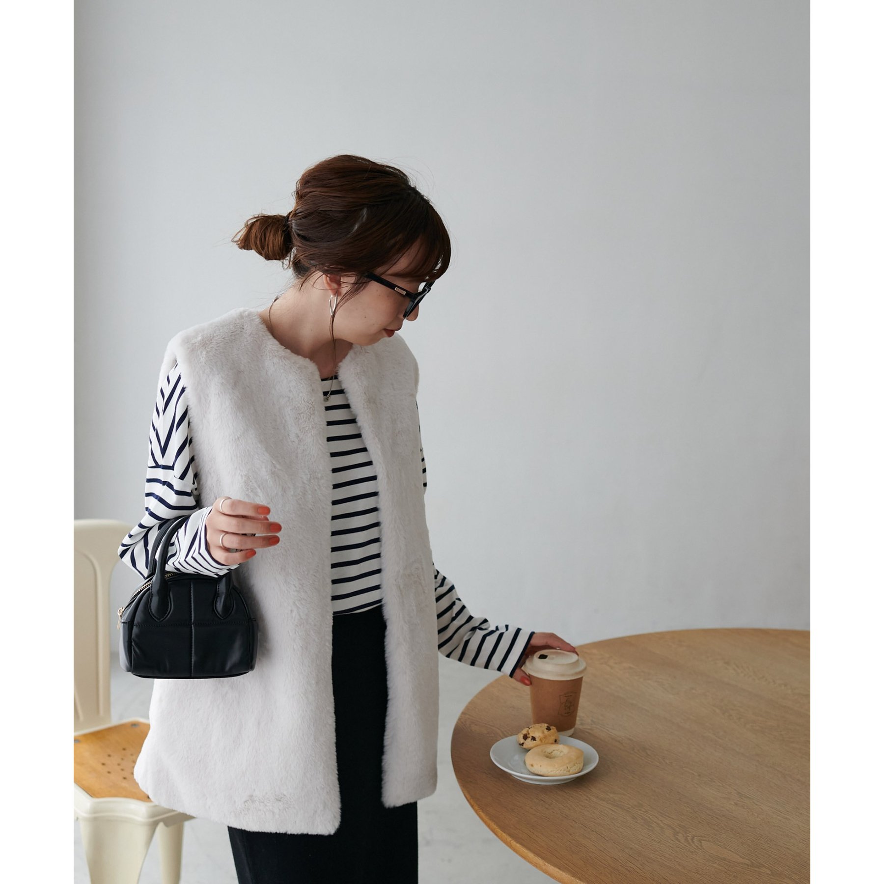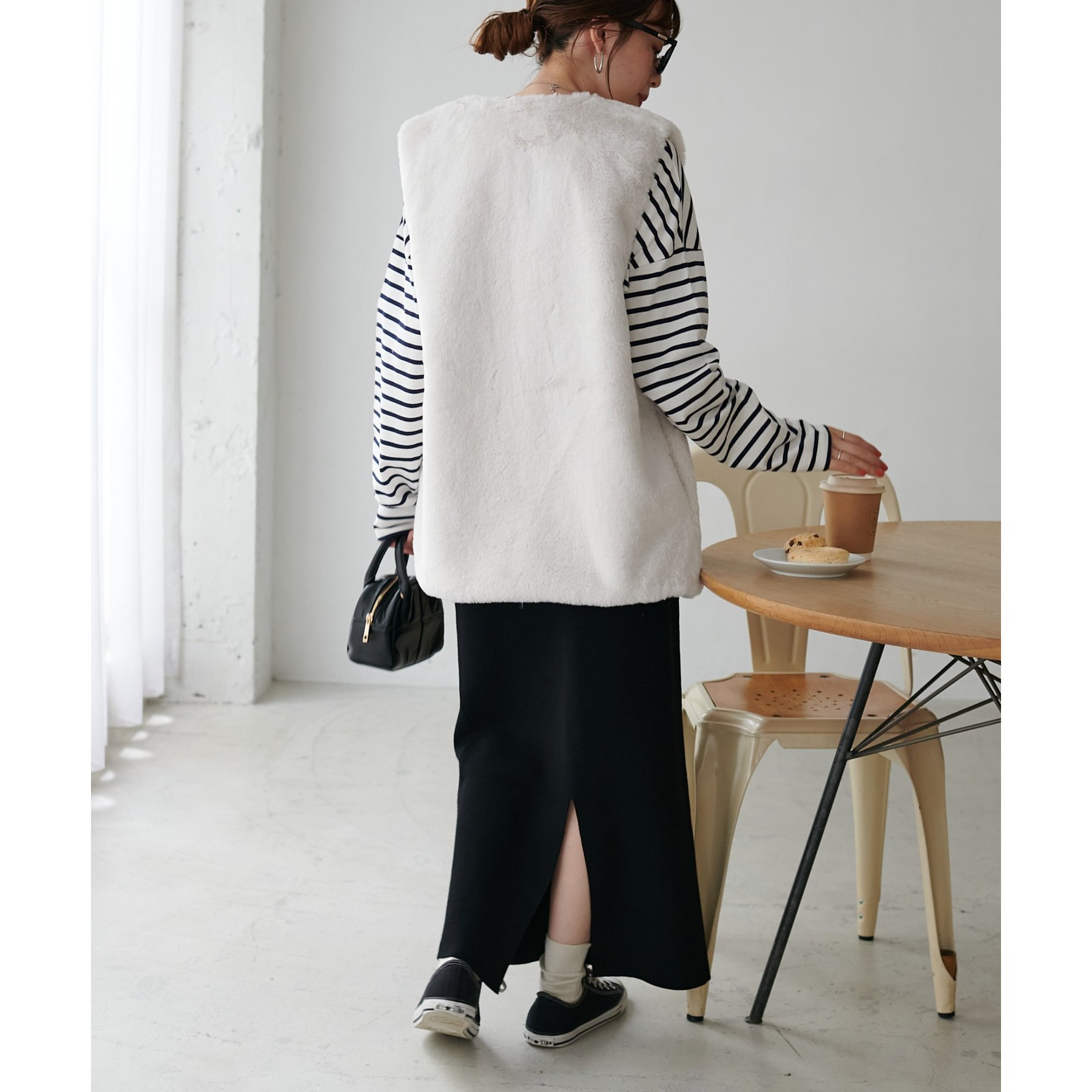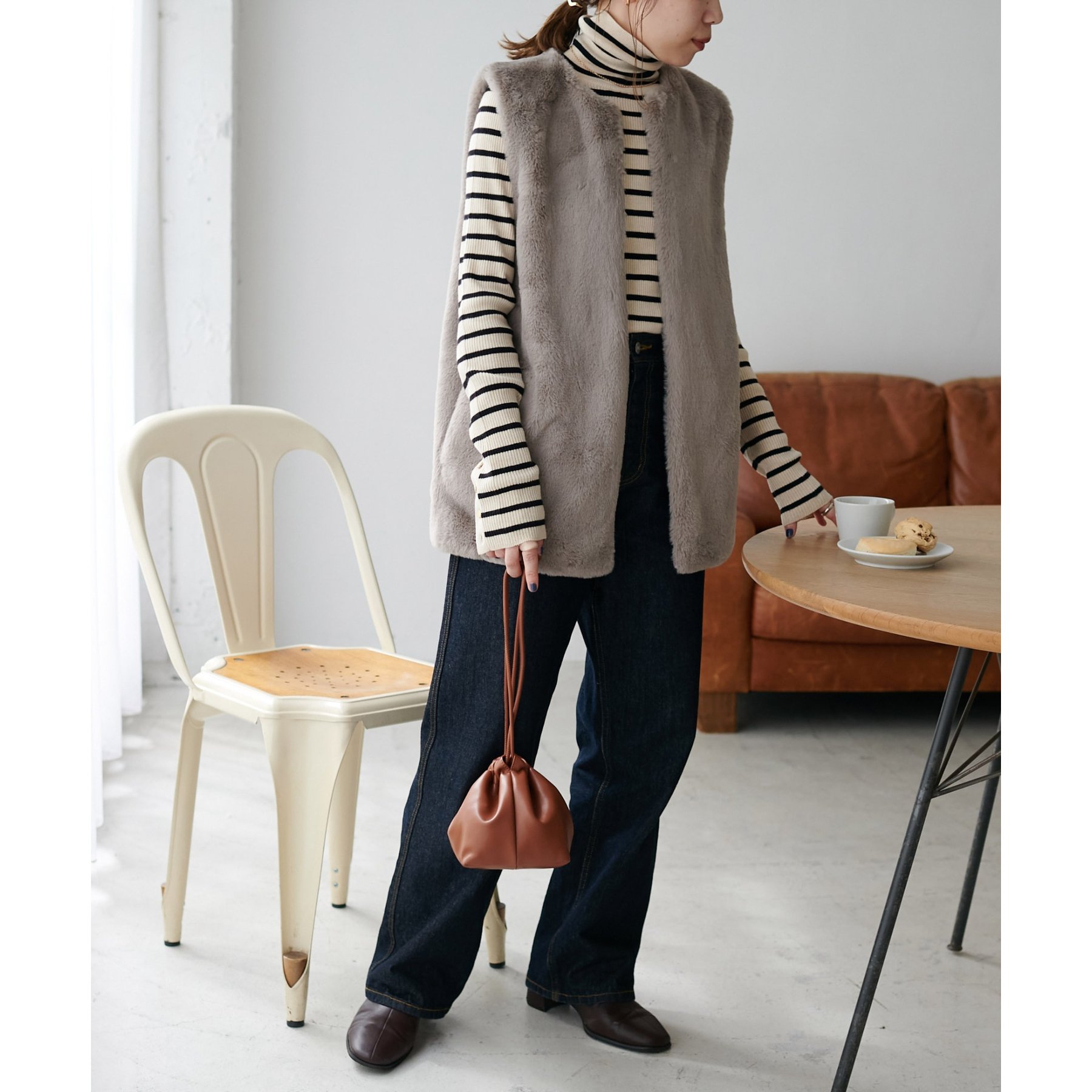 トレンドのレイヤードスタイルが叶うフェイクファーベスト