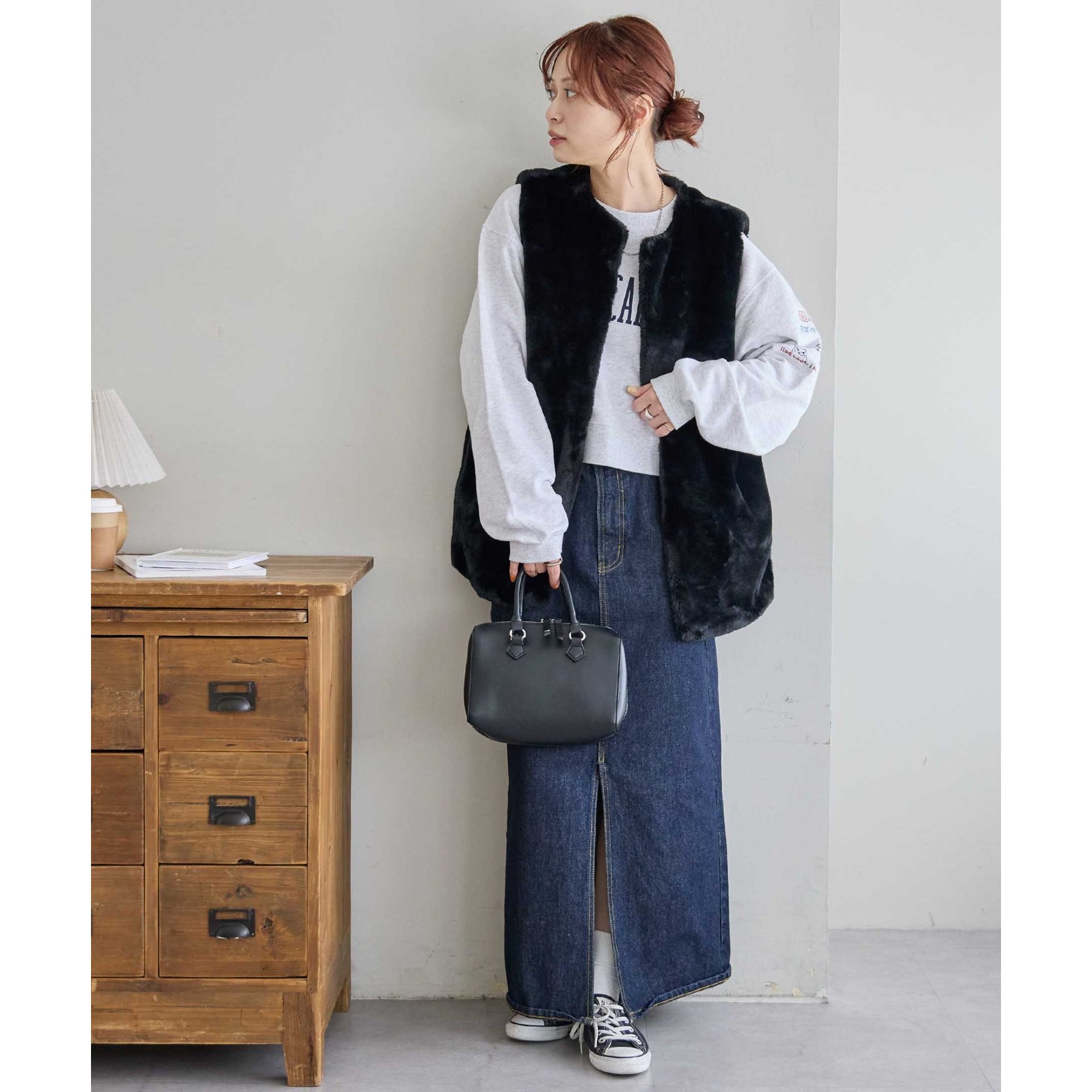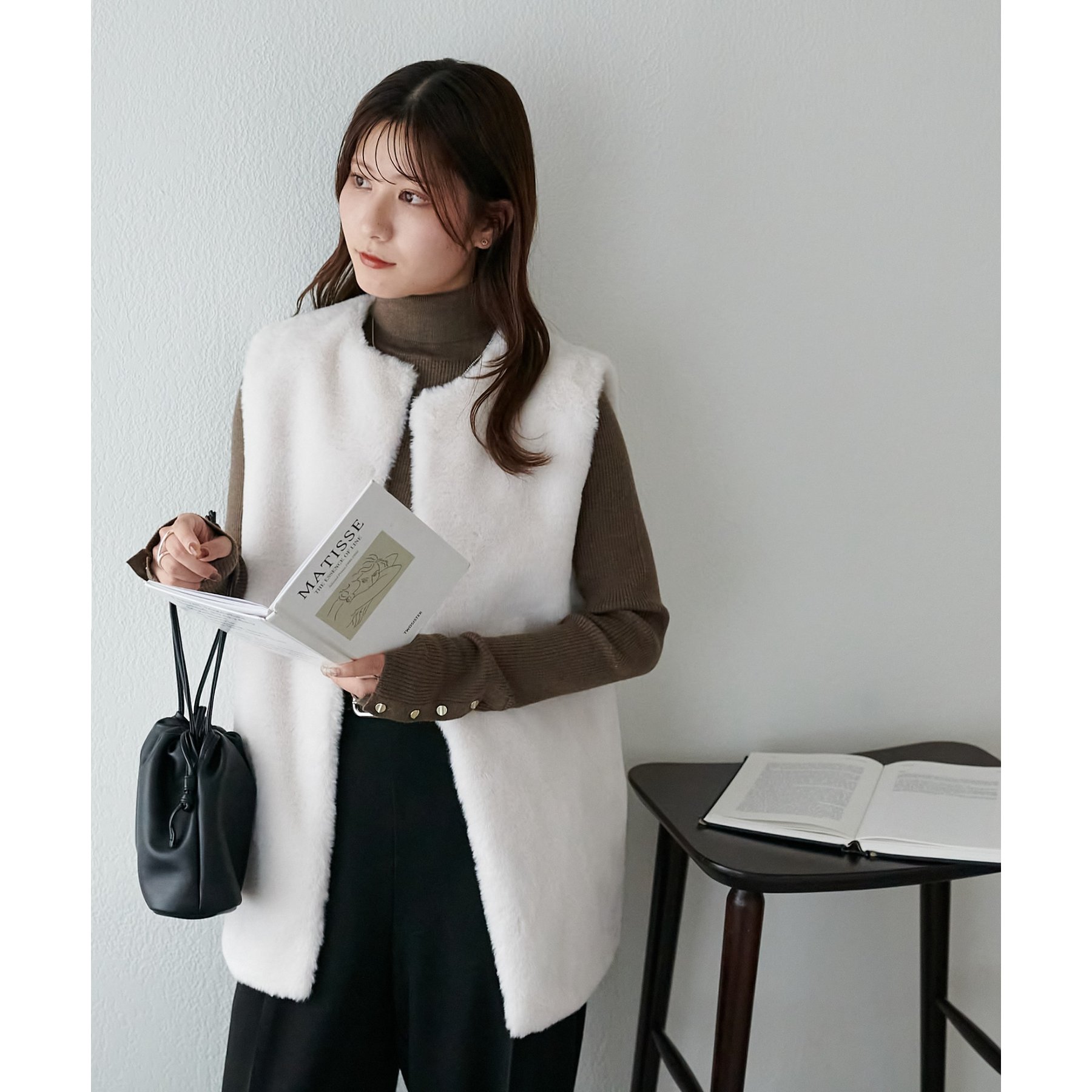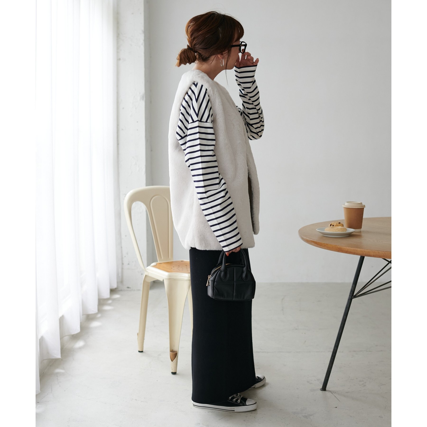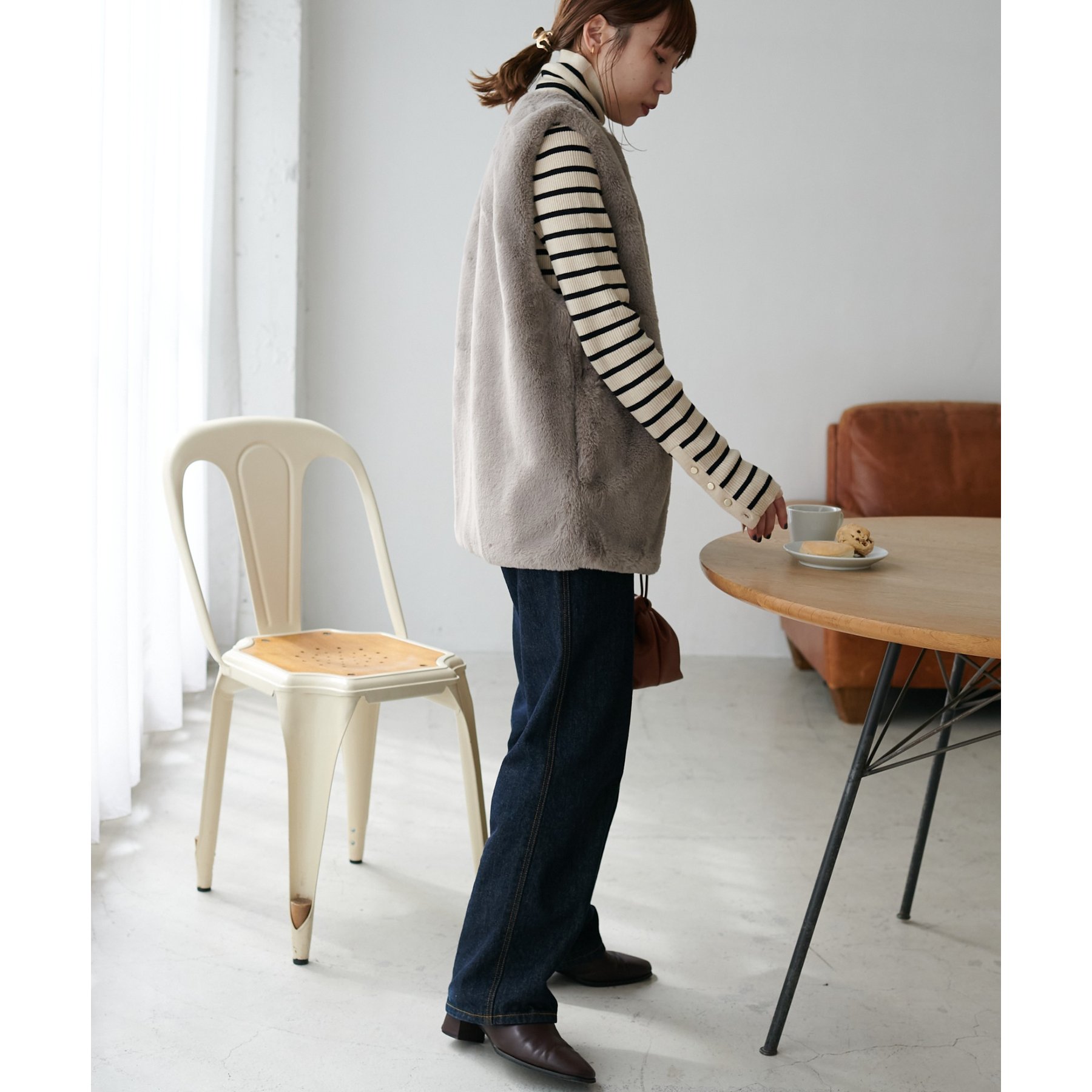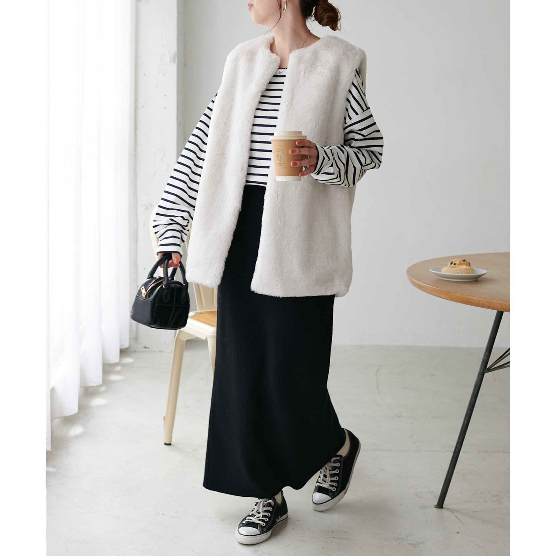 トレンドのレイヤードスタイルが叶うフェイクファーベスト