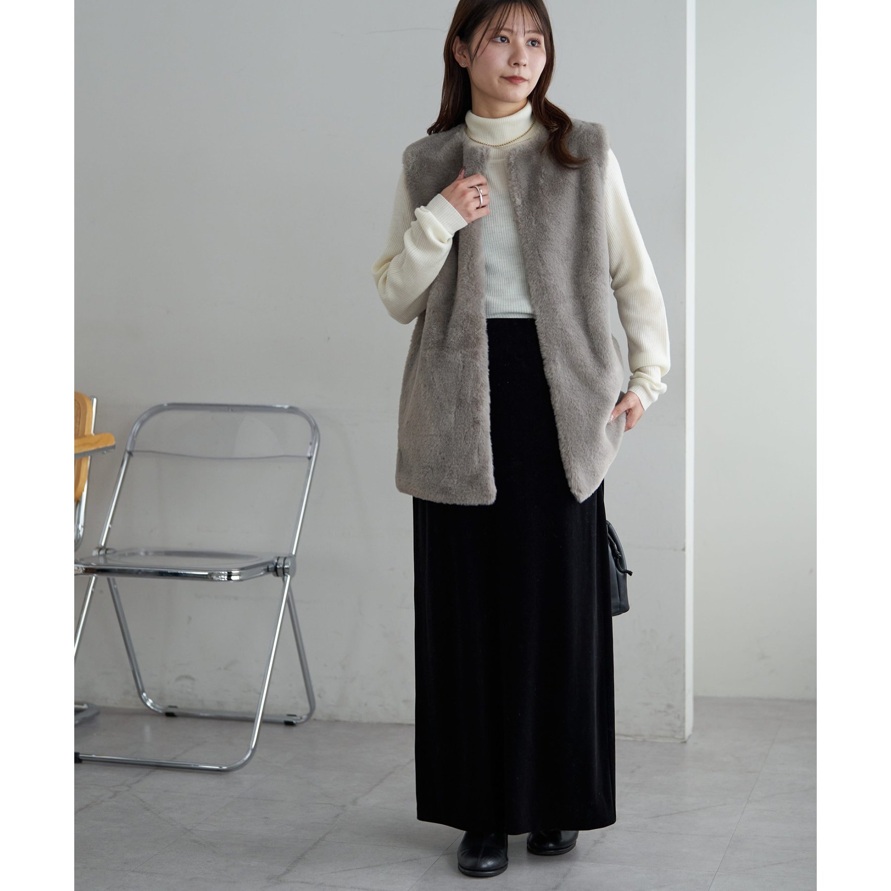 【WEB限定】フェイクファーロングベスト