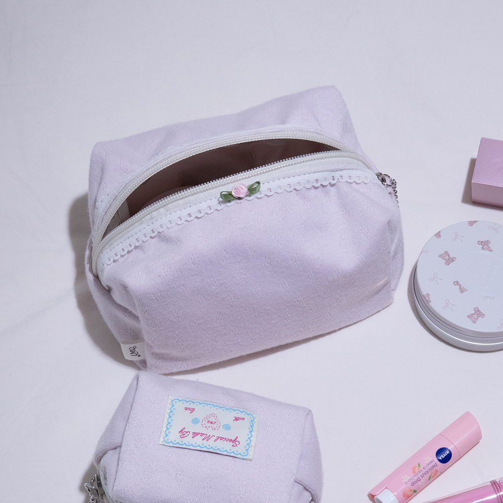 ファブリック スクエア ポーチ ハートパンチング ピンク L
