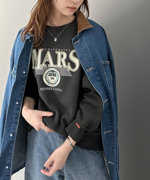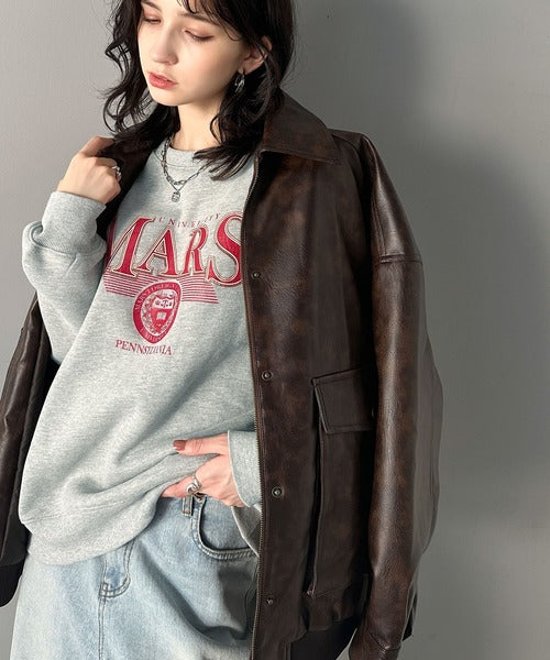 クラック加工でビンテージ感のあるカレッジライクプリントが目を引く