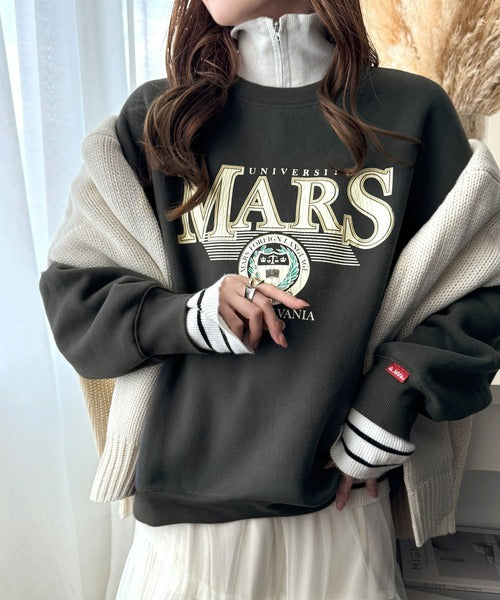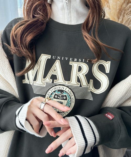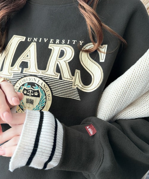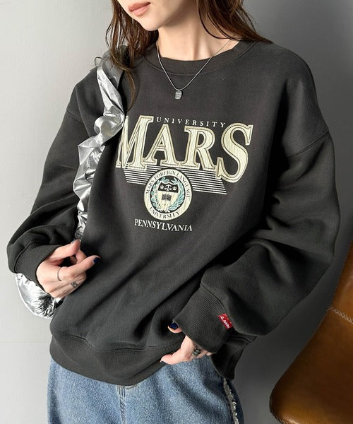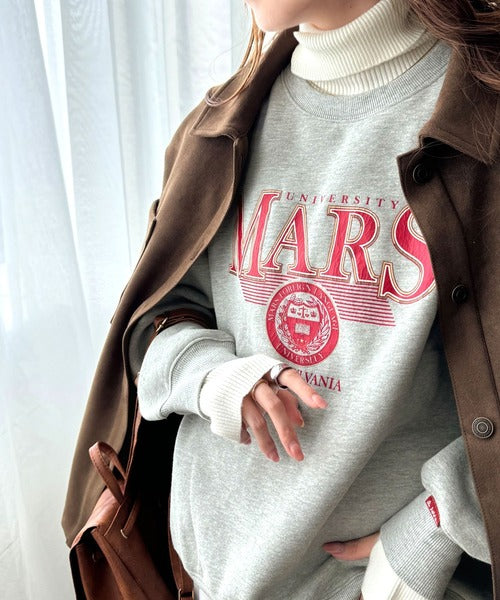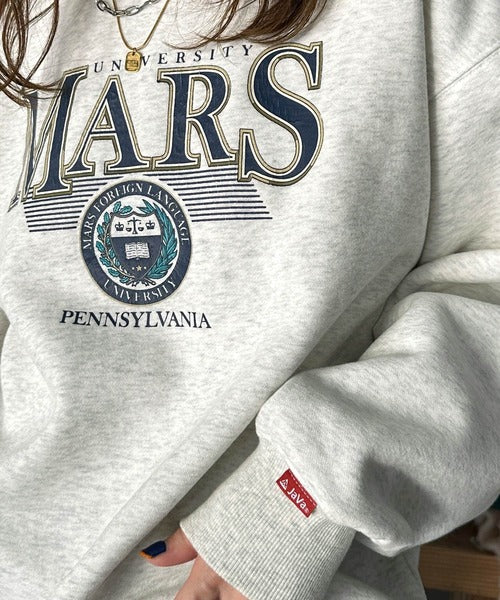 《Javaジャバコラボ》大人カジュアルスタイルに。カレッジロゴクラックプリント裏起毛スウェット jv1330003