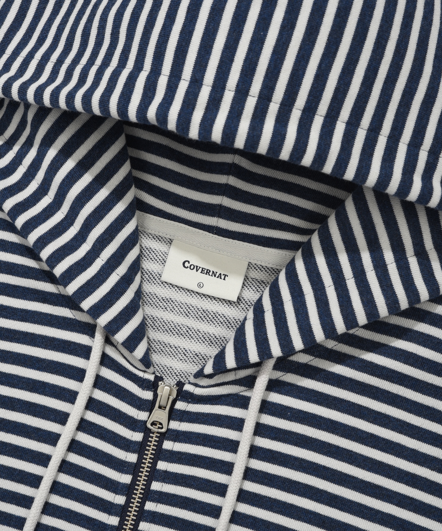 SMALL LOGO STRIPE ZIP-UP HOODIE - Dark Navy