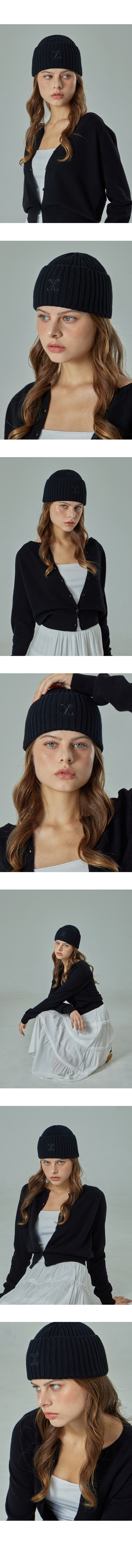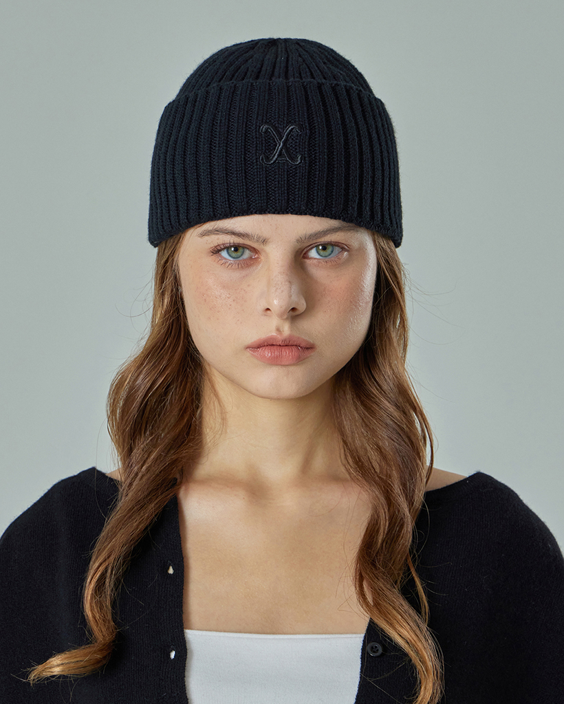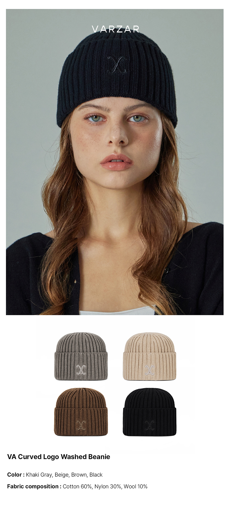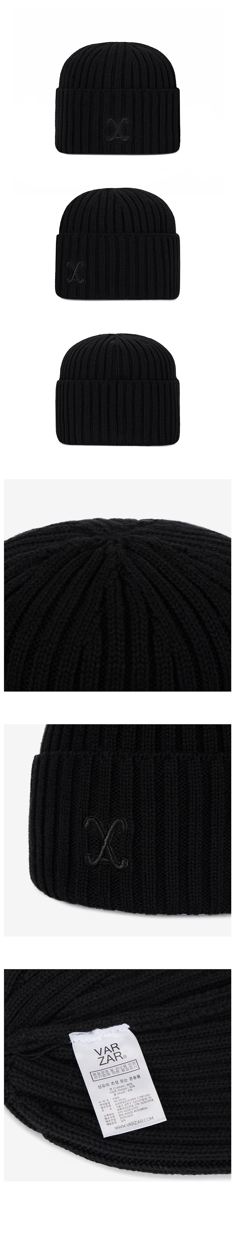 VA Curved Logo Washed Beanie Black