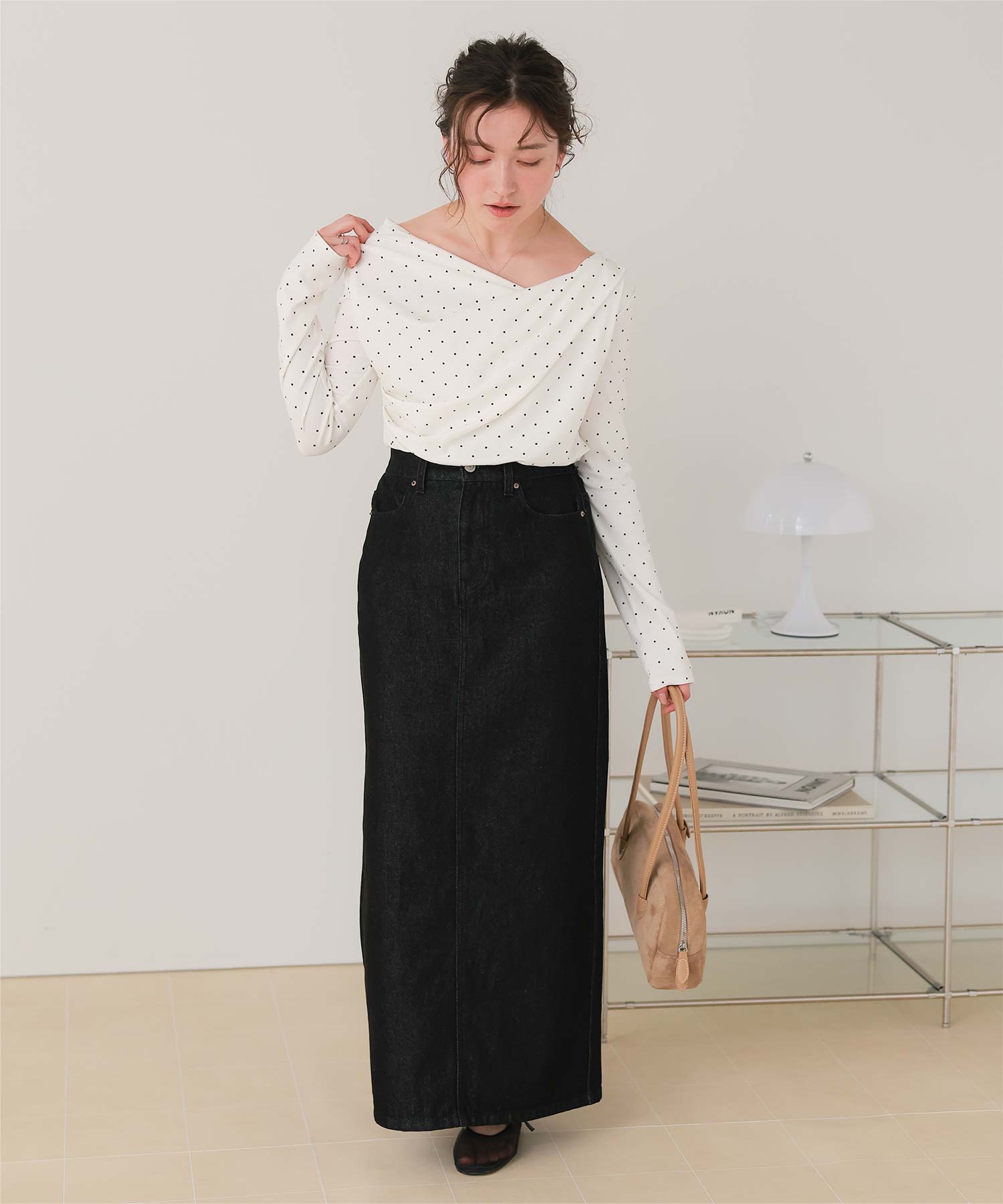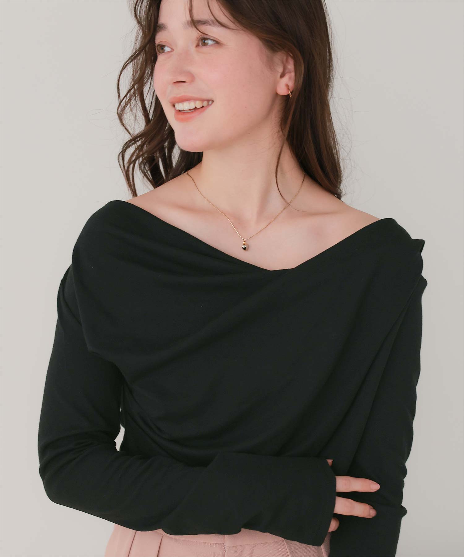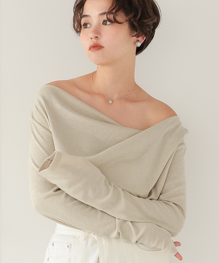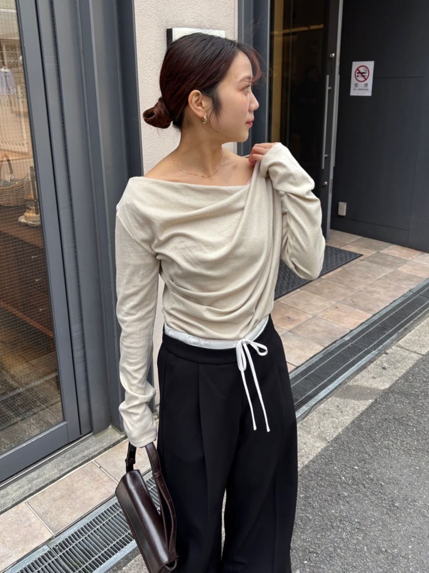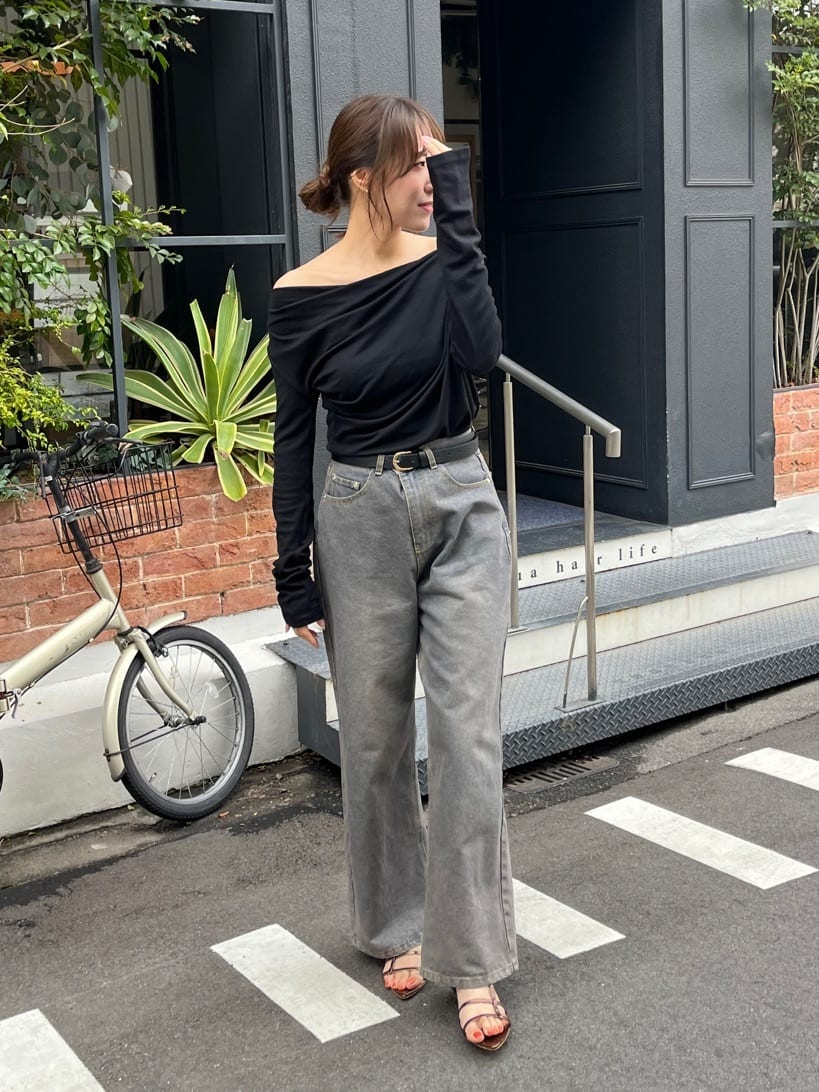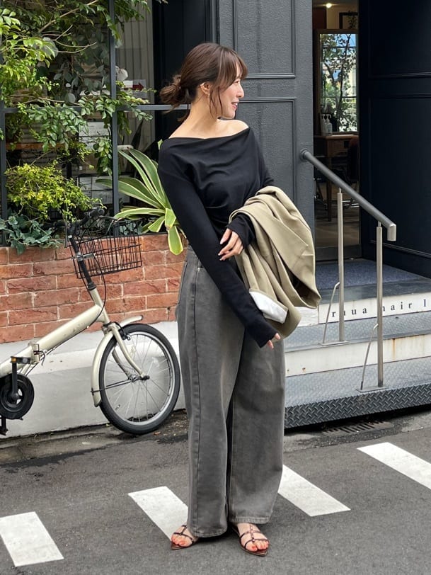 ・こなれ感のある肌見せを叶えてくれるオフショルダーロングTシャツ