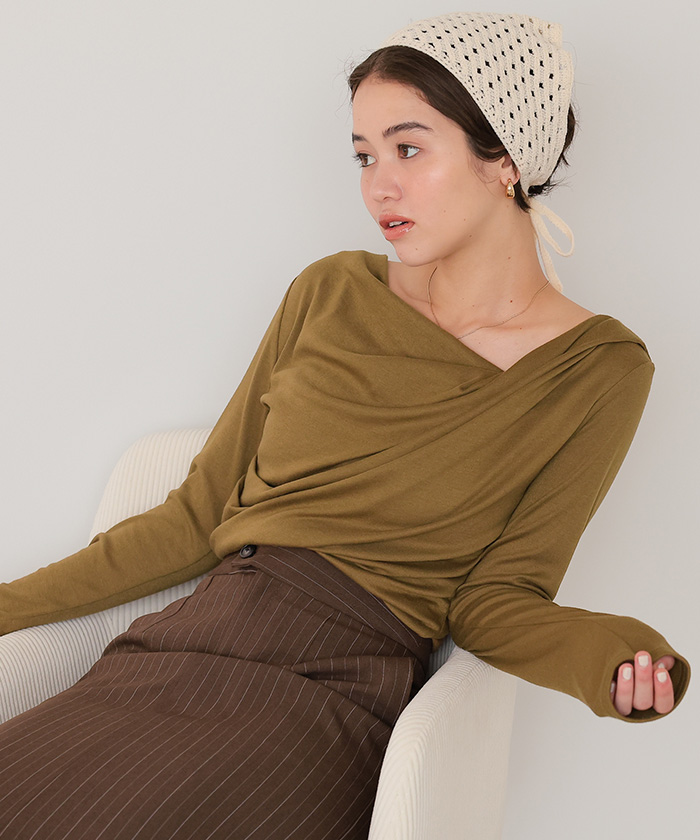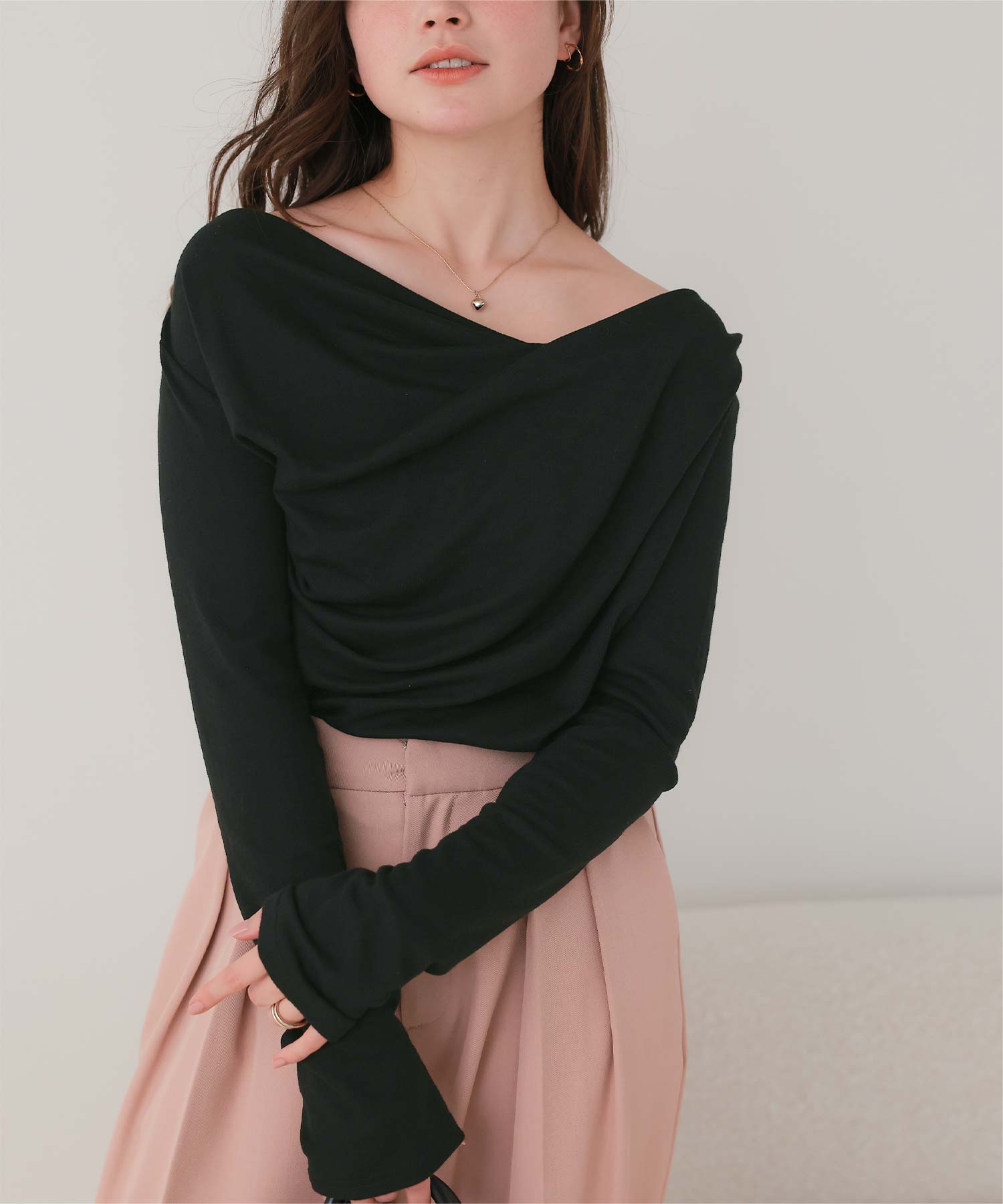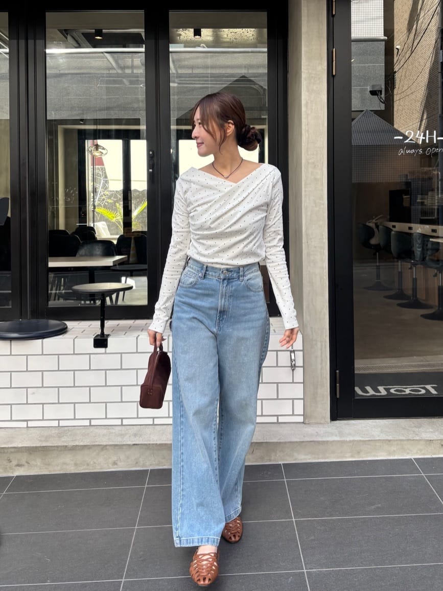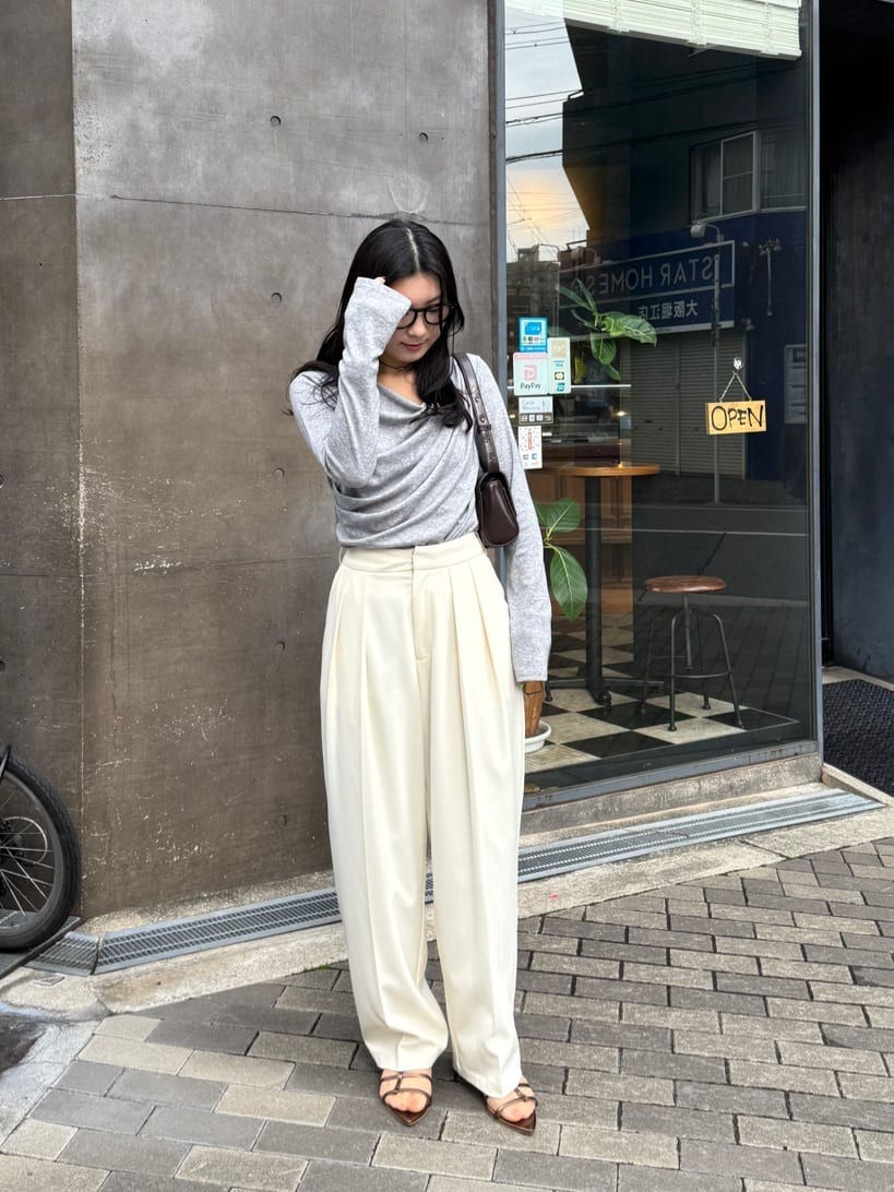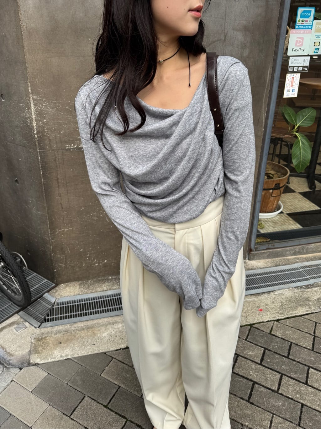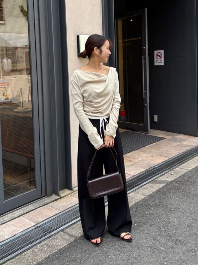 ・こなれ感のある肌見せを叶えてくれるオフショルダーロングTシャツ