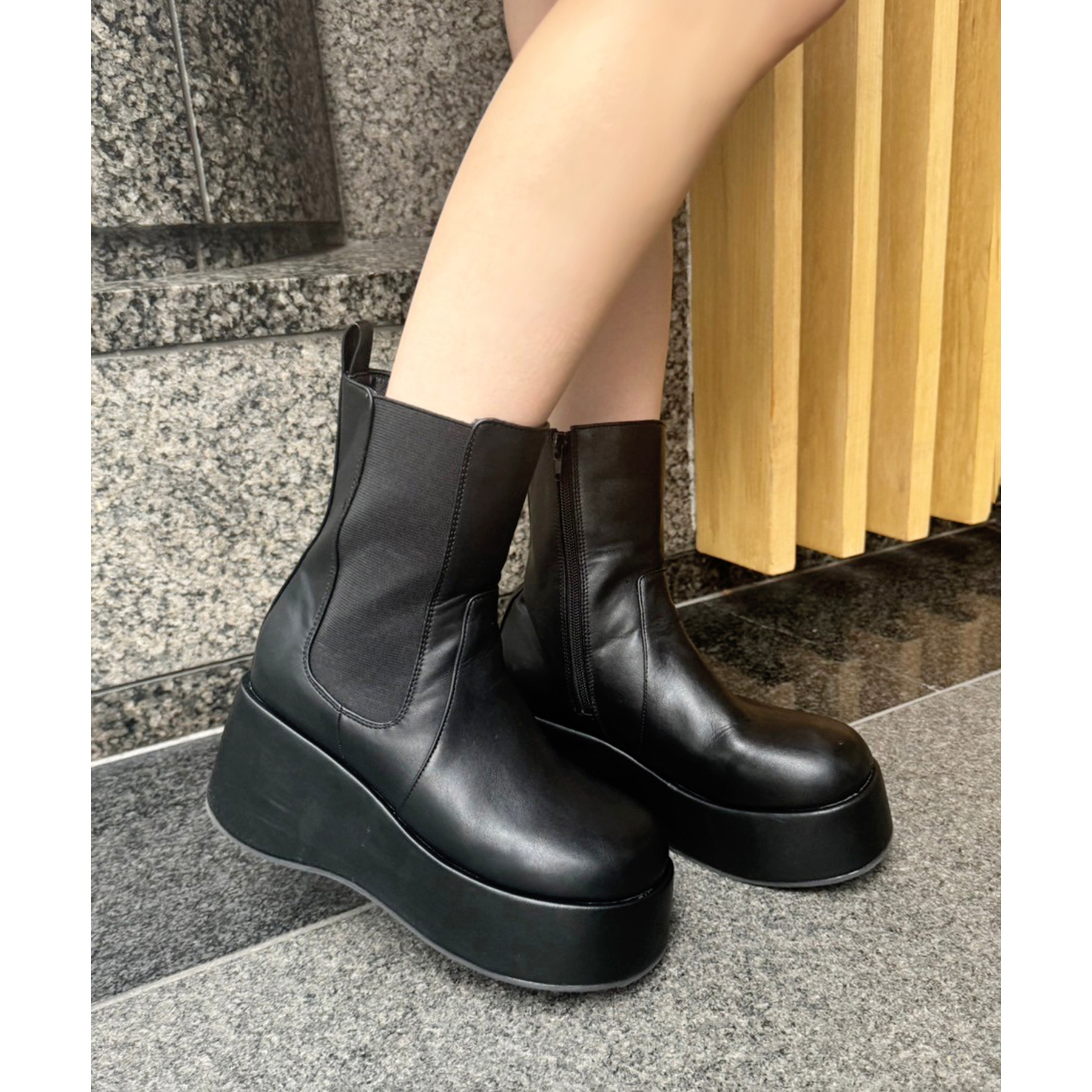 【マイナス3キロ見え/SNSで話題】サイドゴアボリュームソールショートブーツ