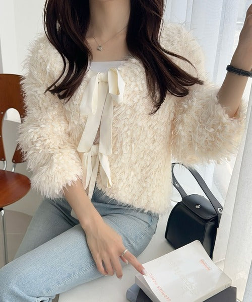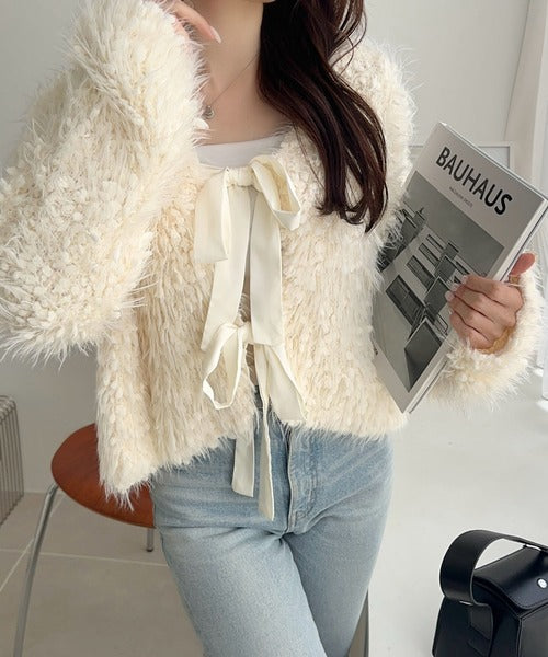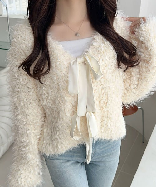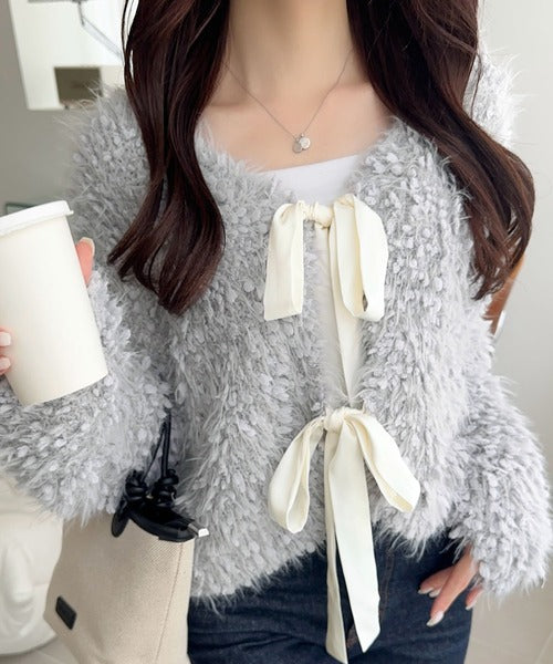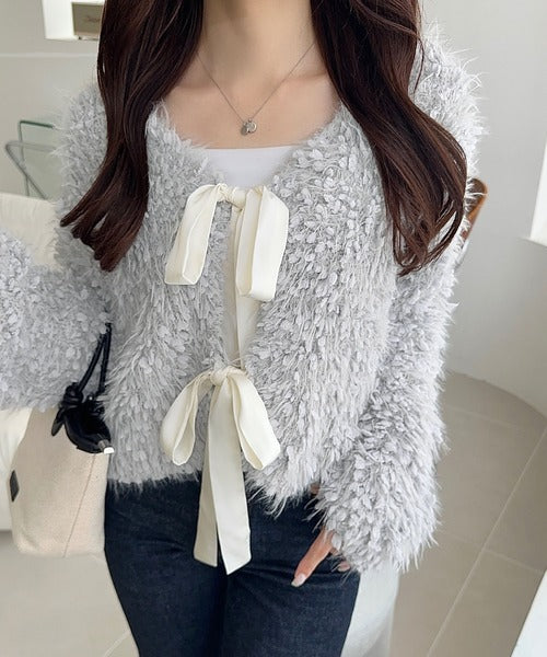 女性らしさを引き立てるリボン使いのカーディガンの登場!