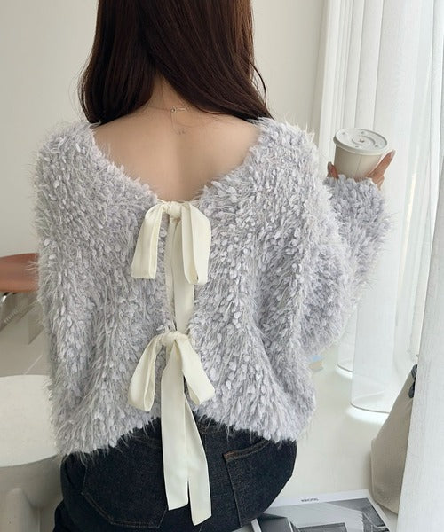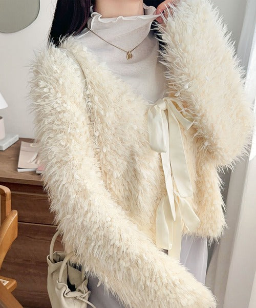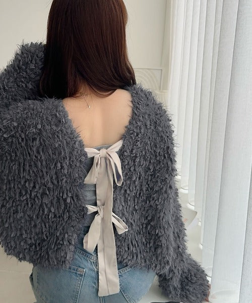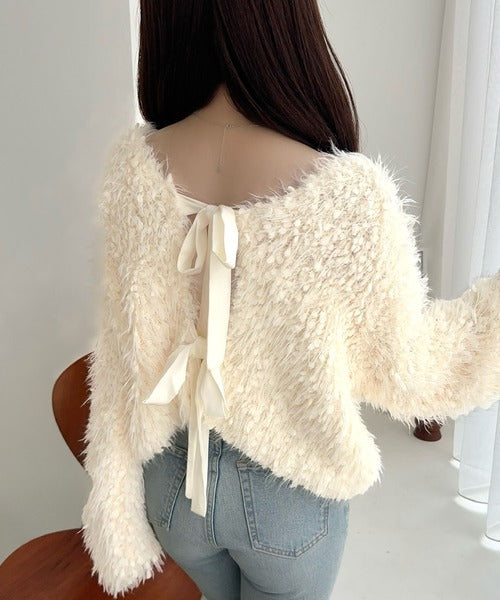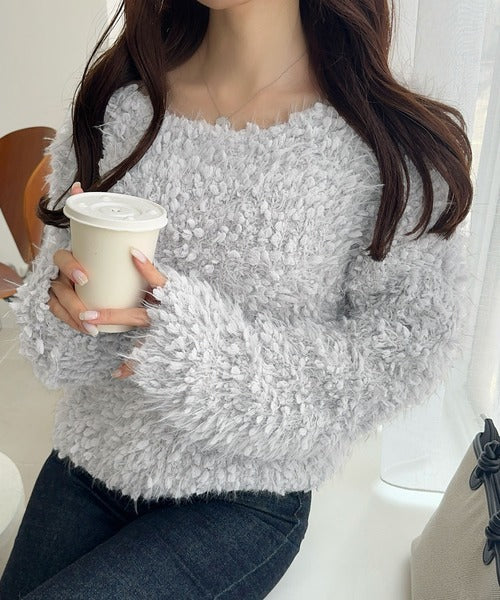 毛足の長い、ふんわりとしたニット素材。