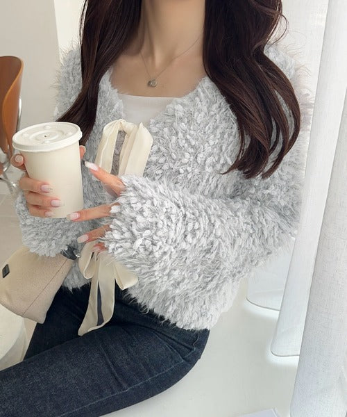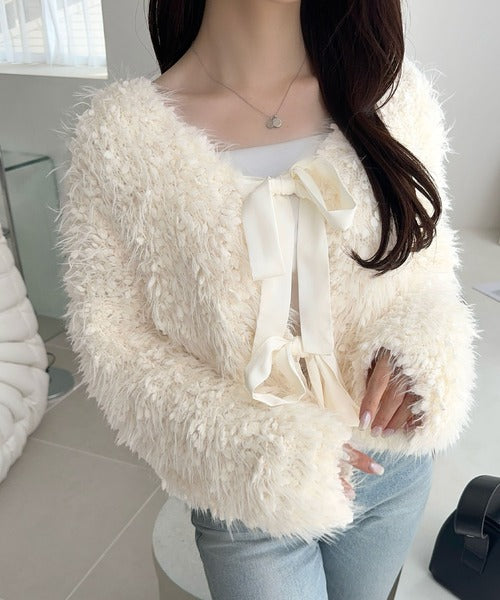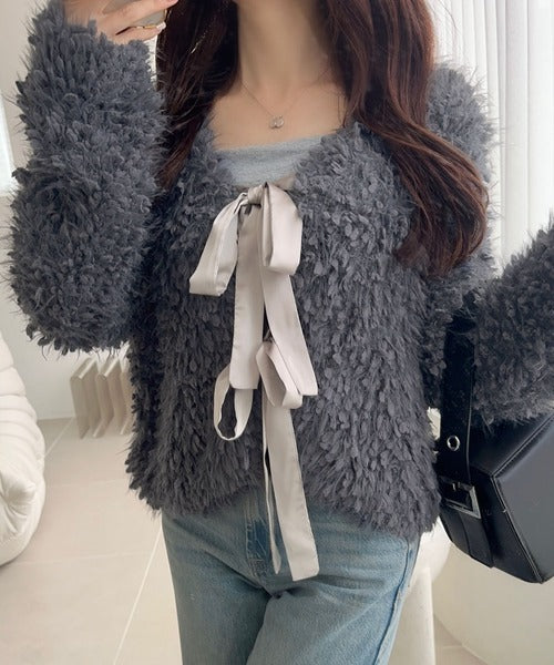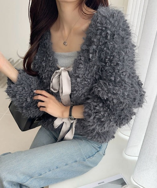 リボンが可愛らしく女性らしいデザインのふんわりカーディガン♪