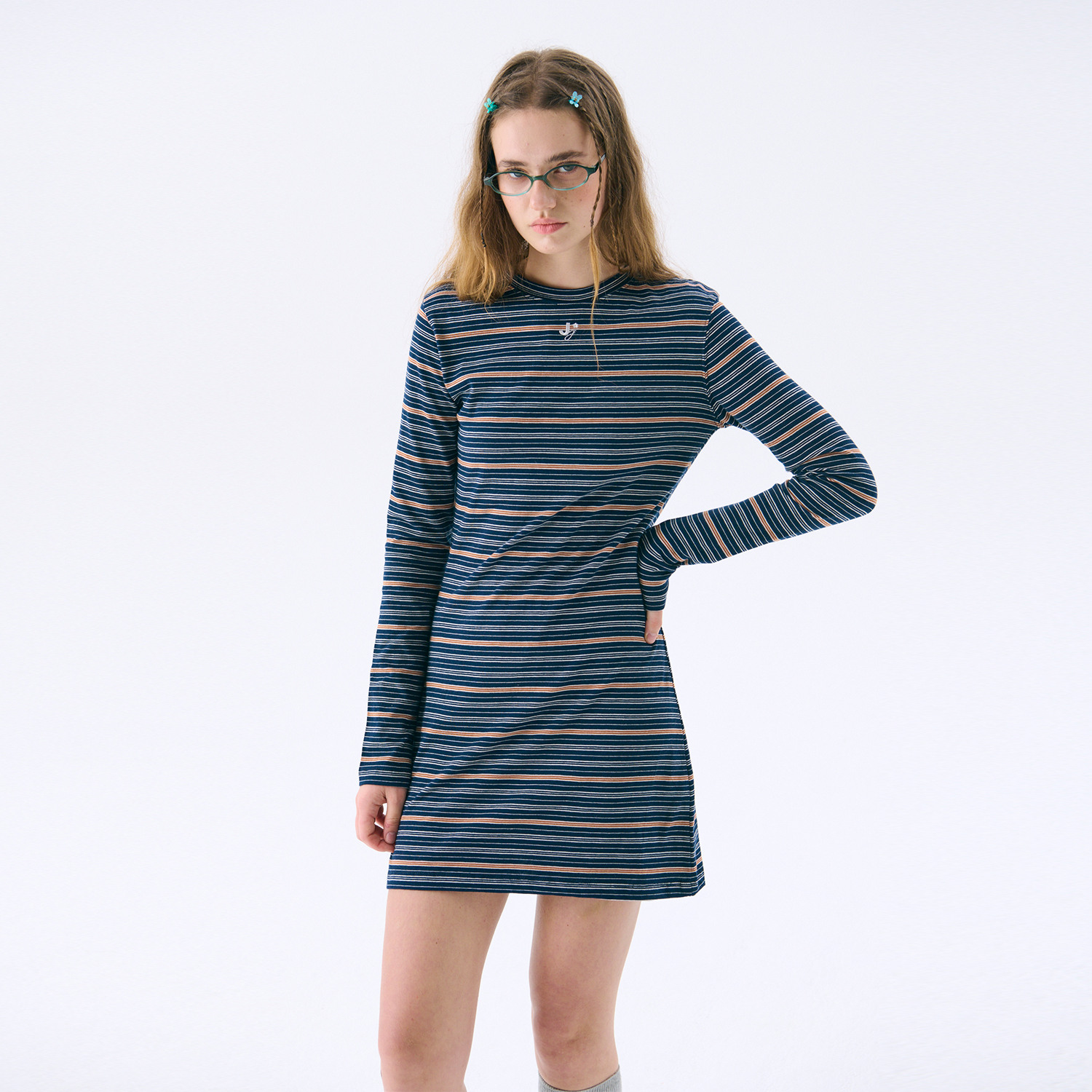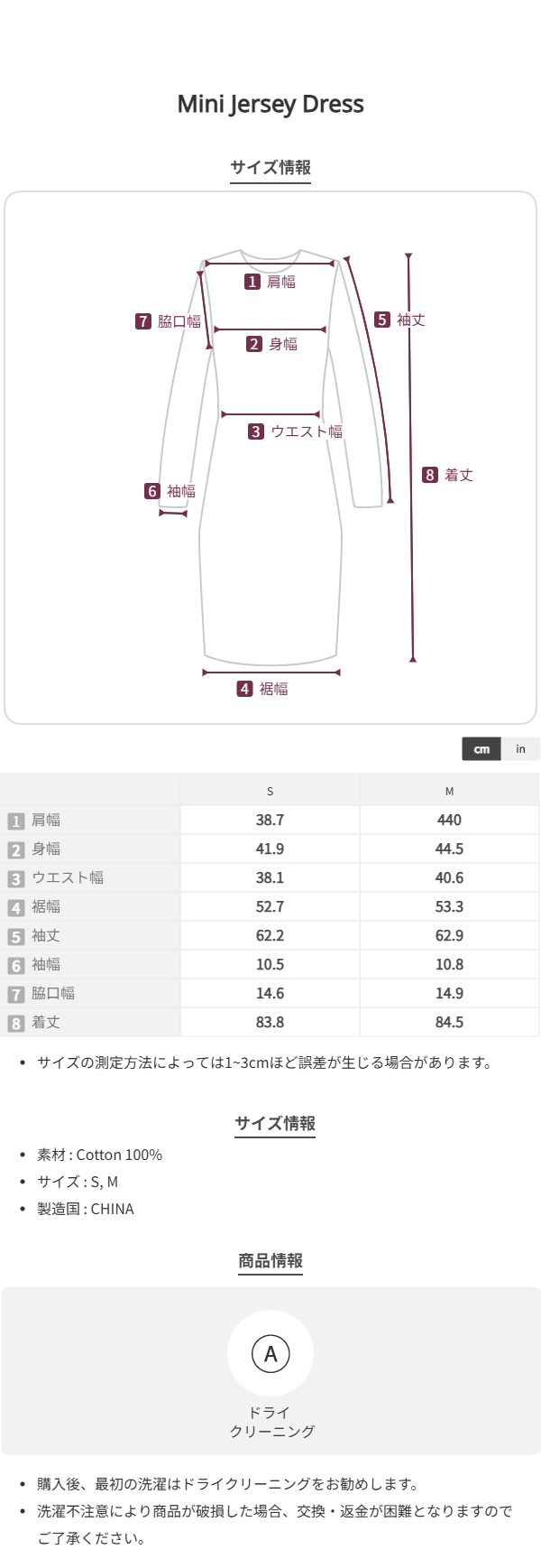 * 면 100% 소재로 핏티드 실루엣을 연출하는 미니 저지 드레스