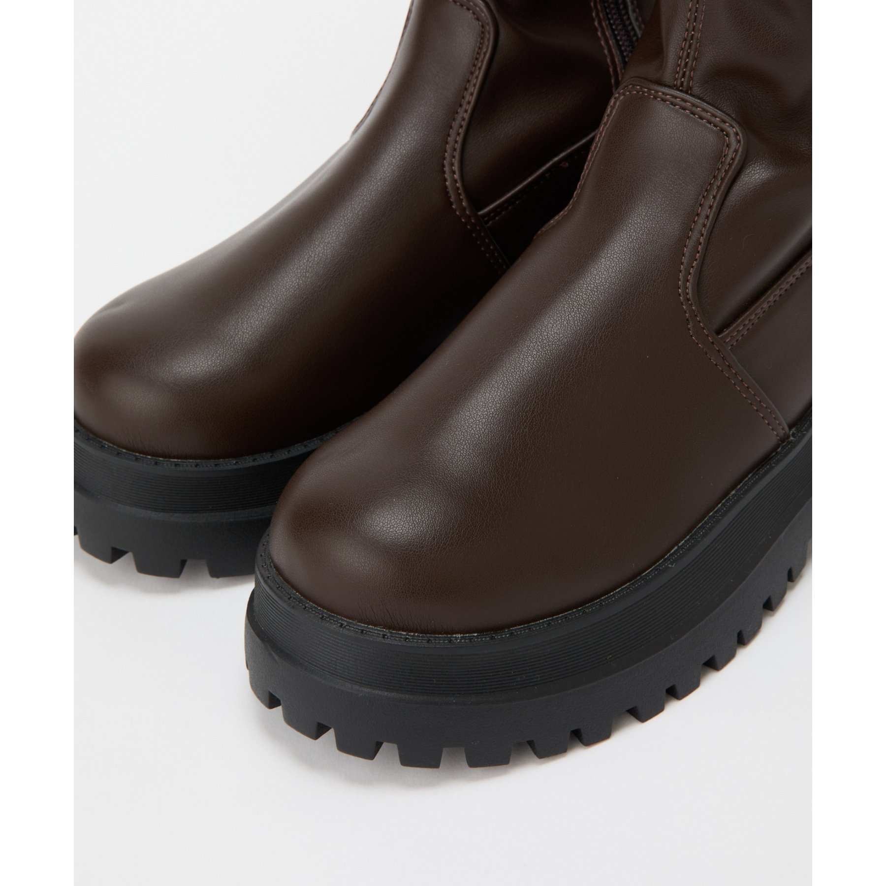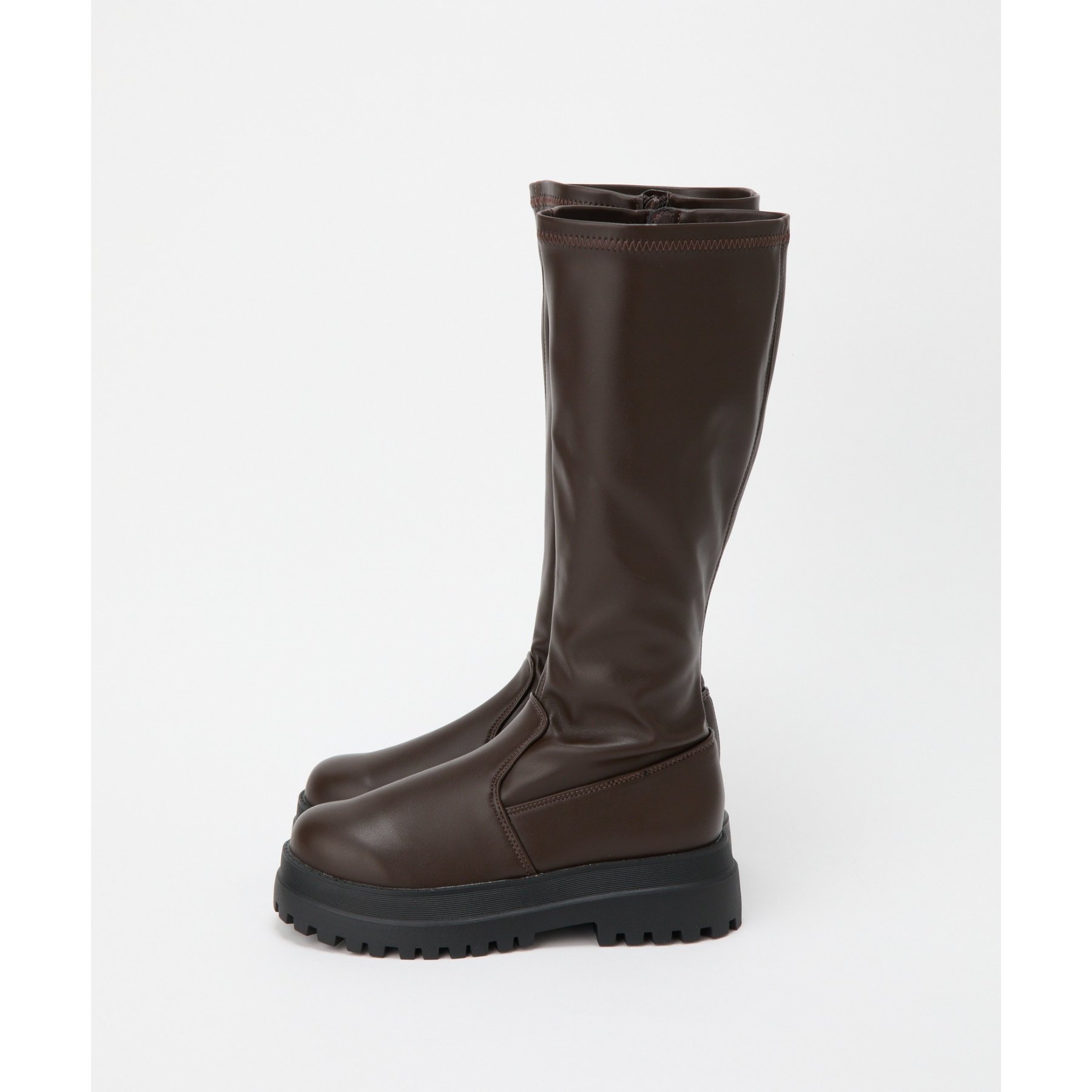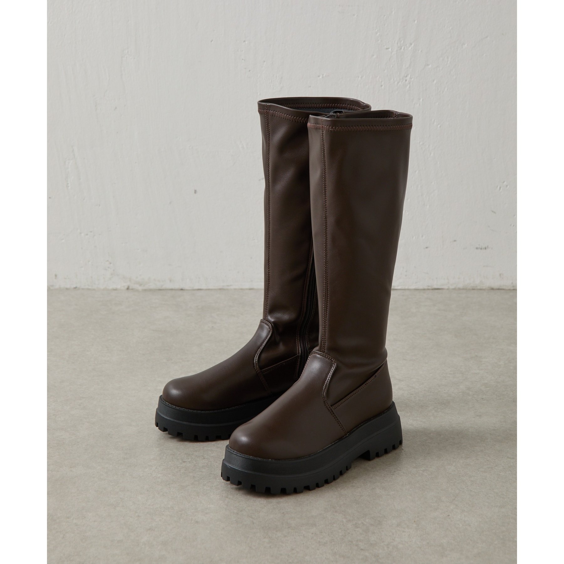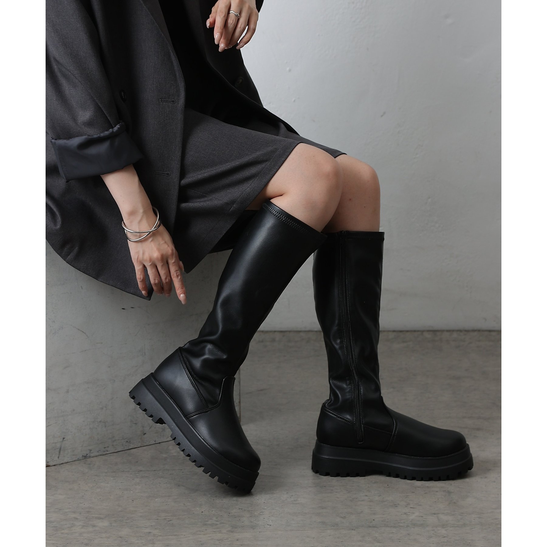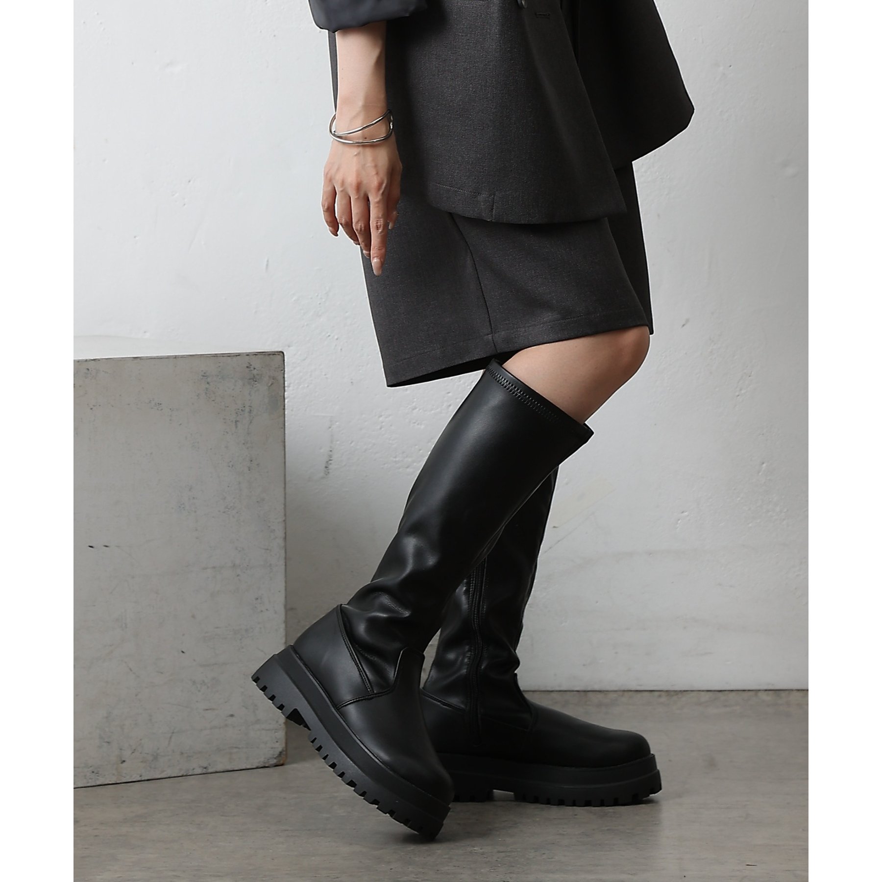 脚にぴったりフィットするストレッチ素材と、スタイルアップを叶える厚底ソールがポイントの厚底ストレッチブーツです。