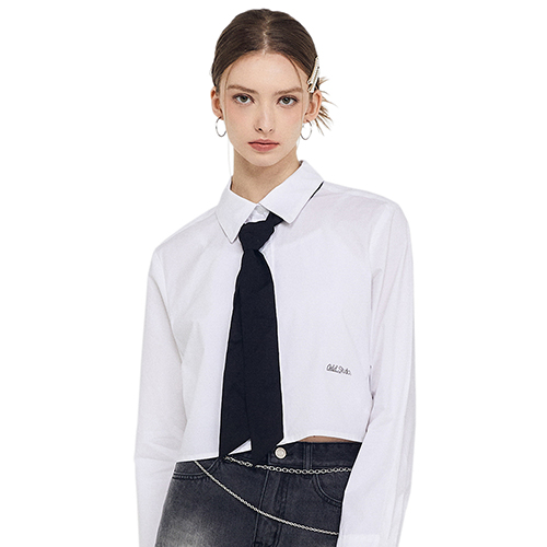 Odd Signature Logo crop shirt - white
