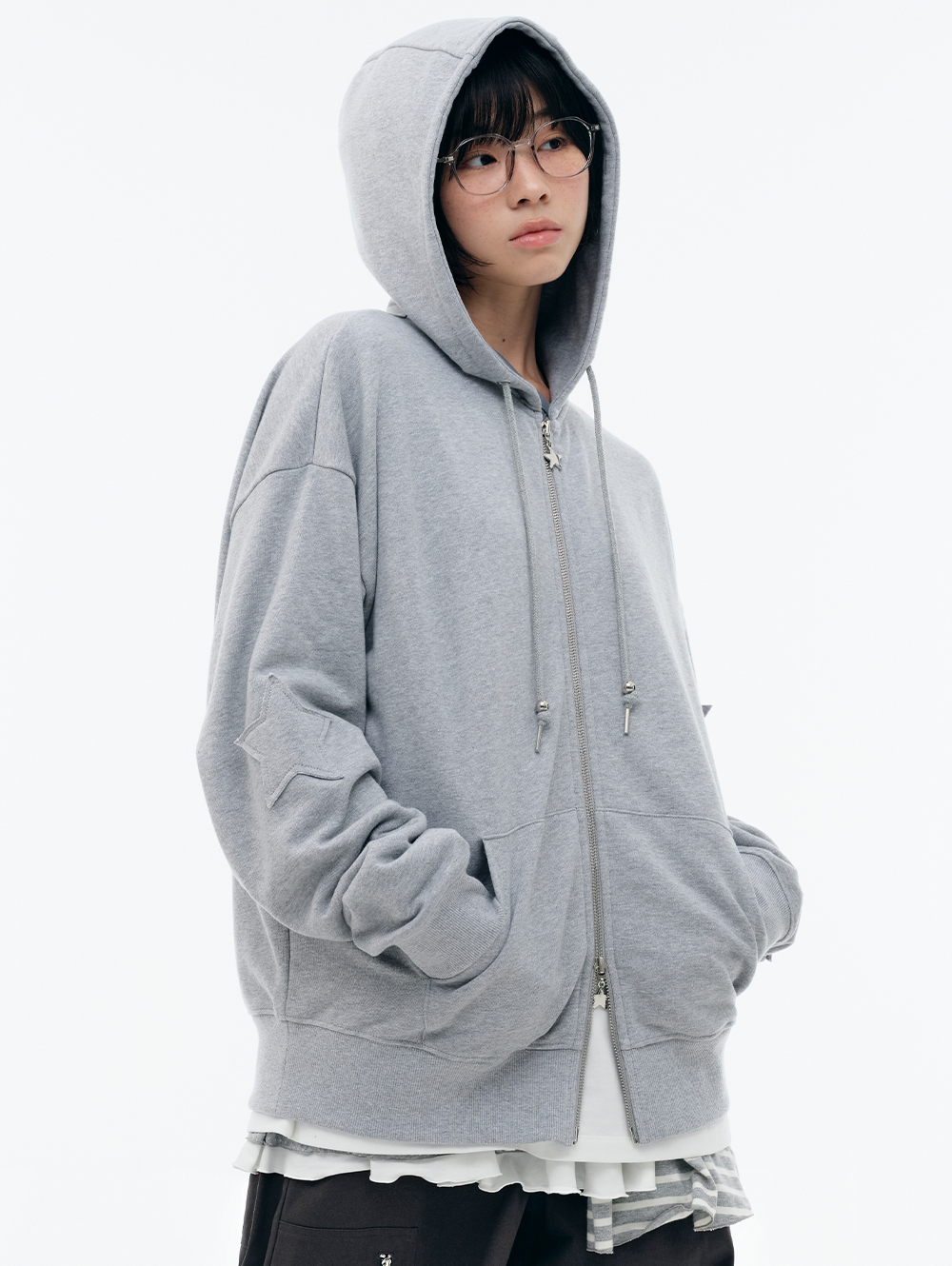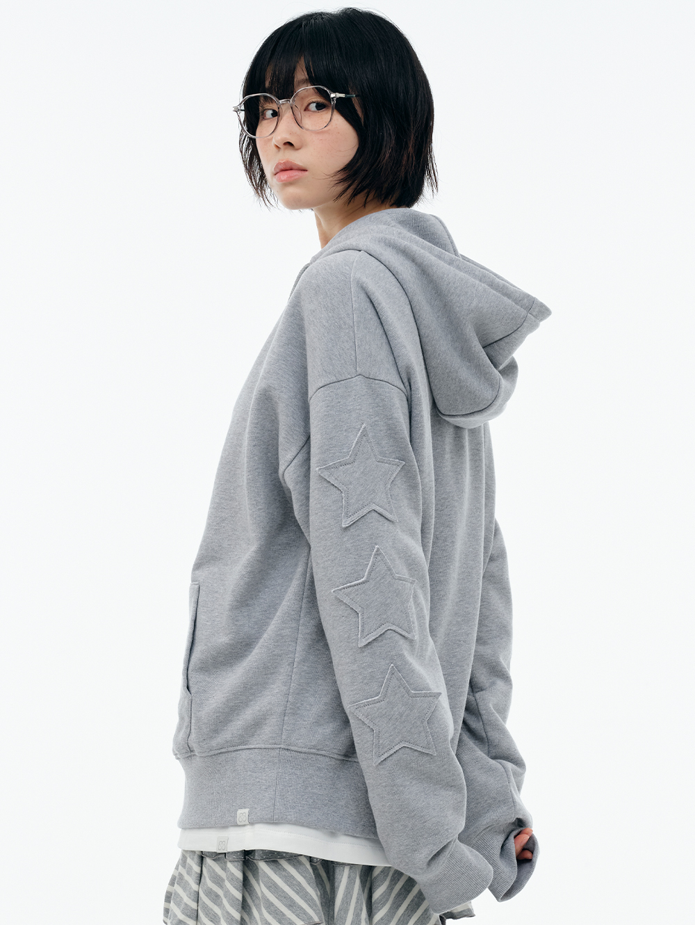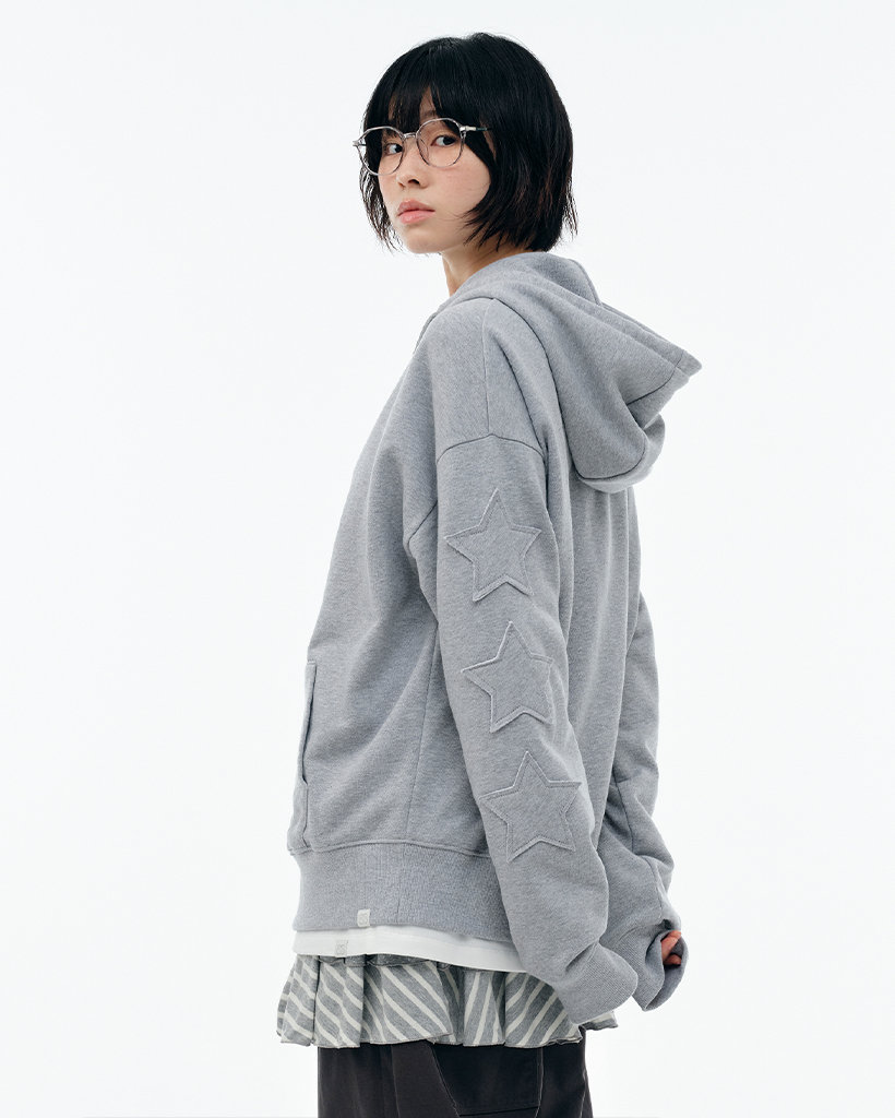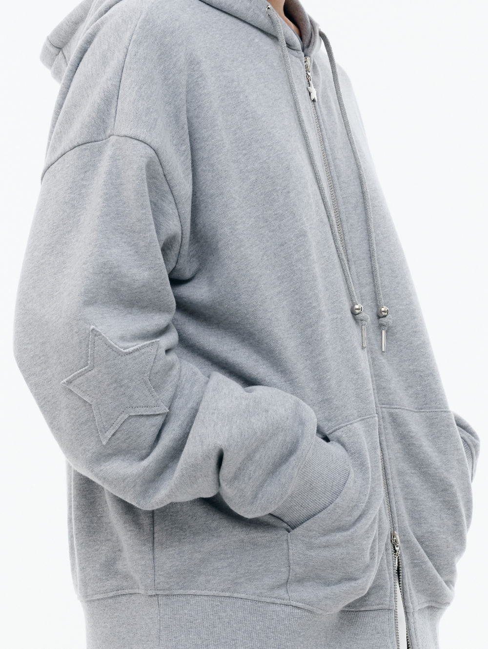 STAR PATCH HOOD ZIP-UP [HEATHER GREY]