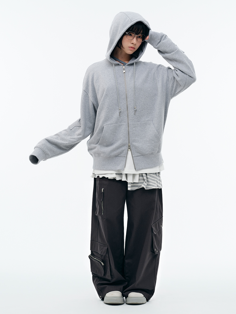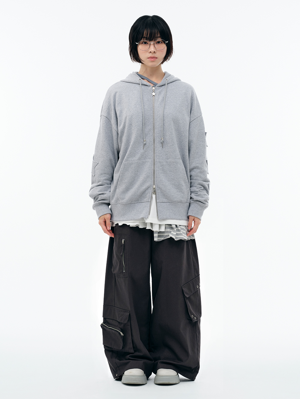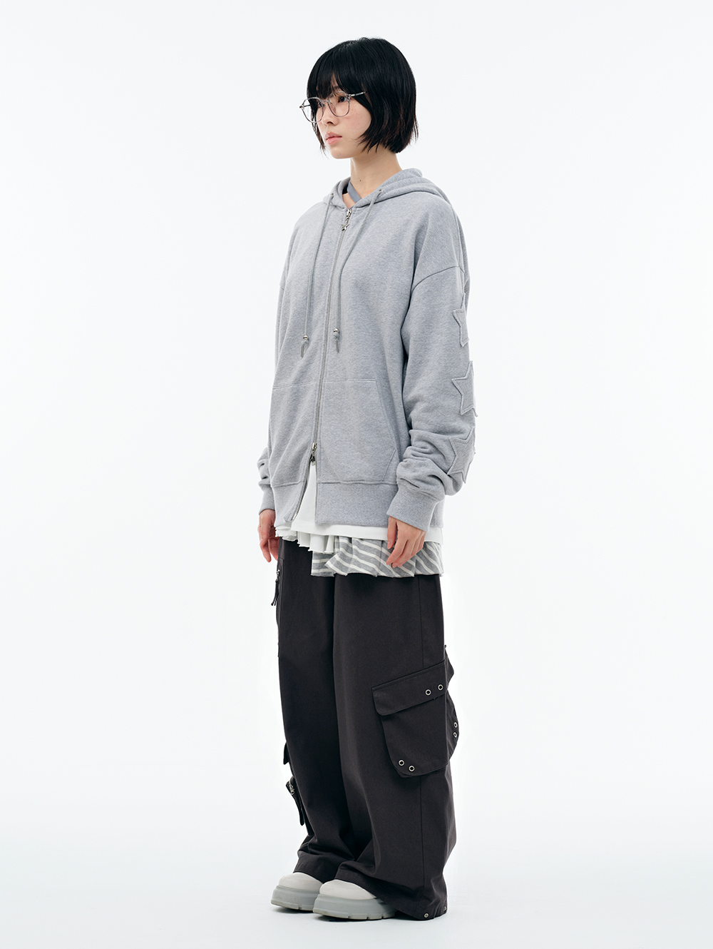 STAR PATCH HOOD ZIP-UP [HEATHER GREY]